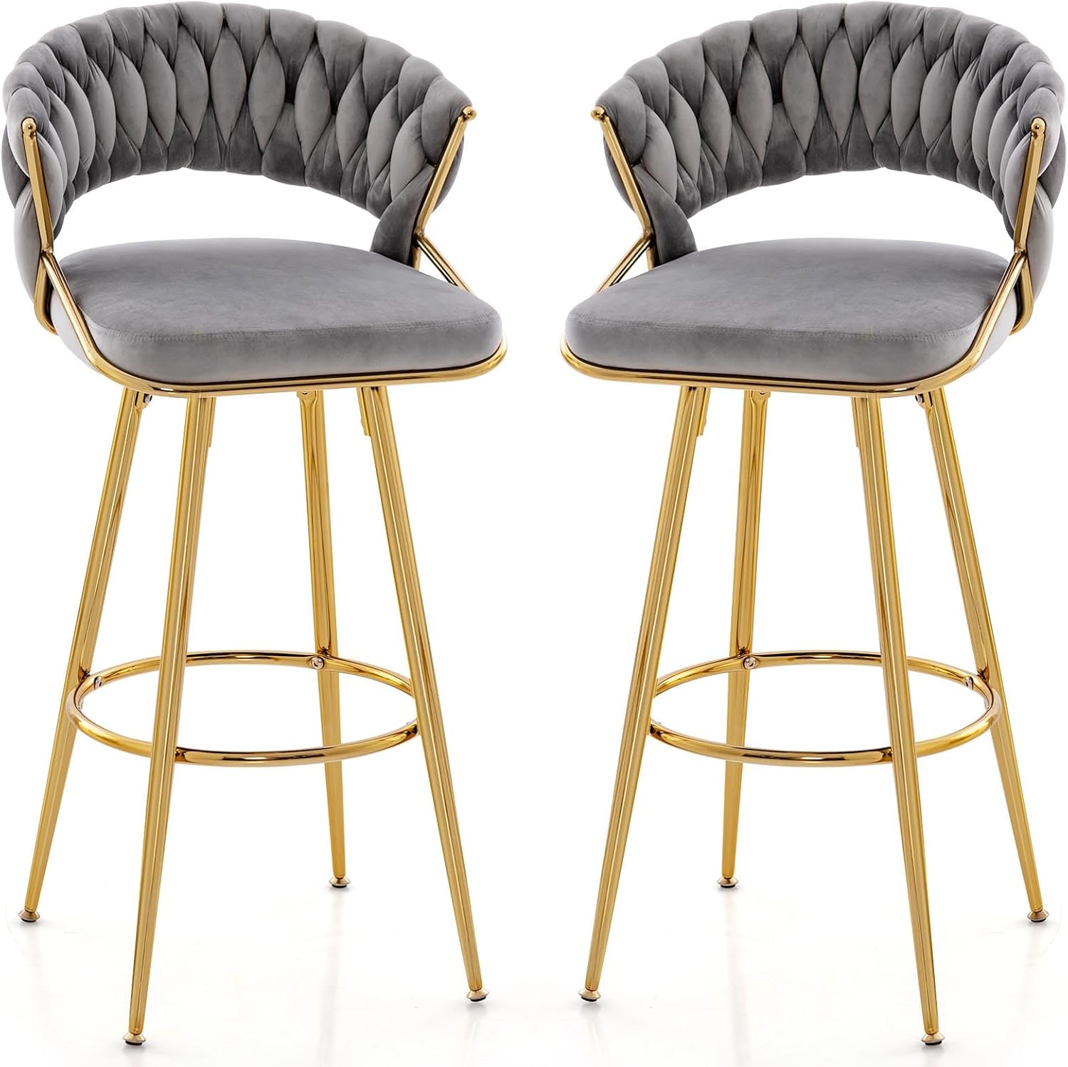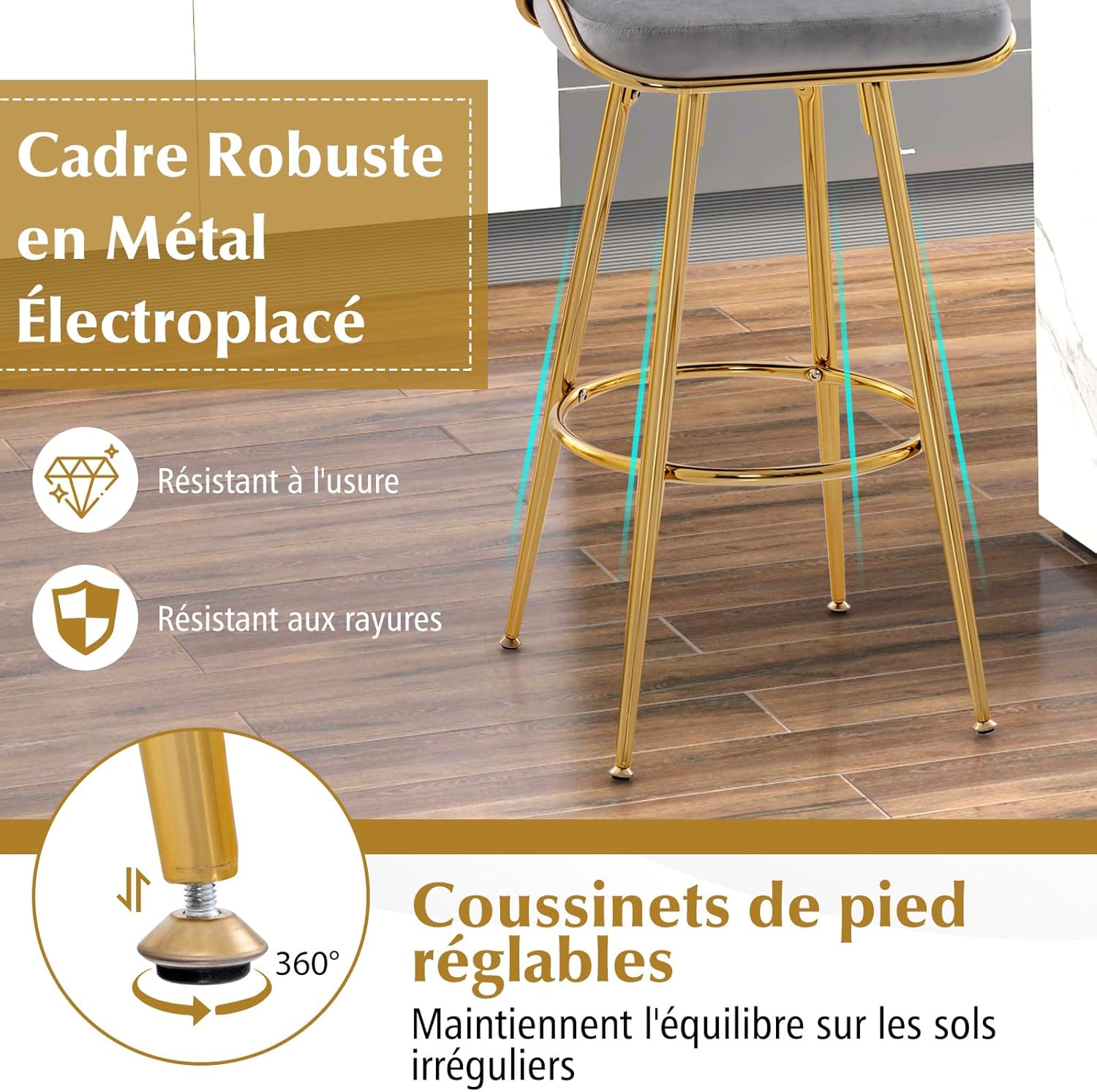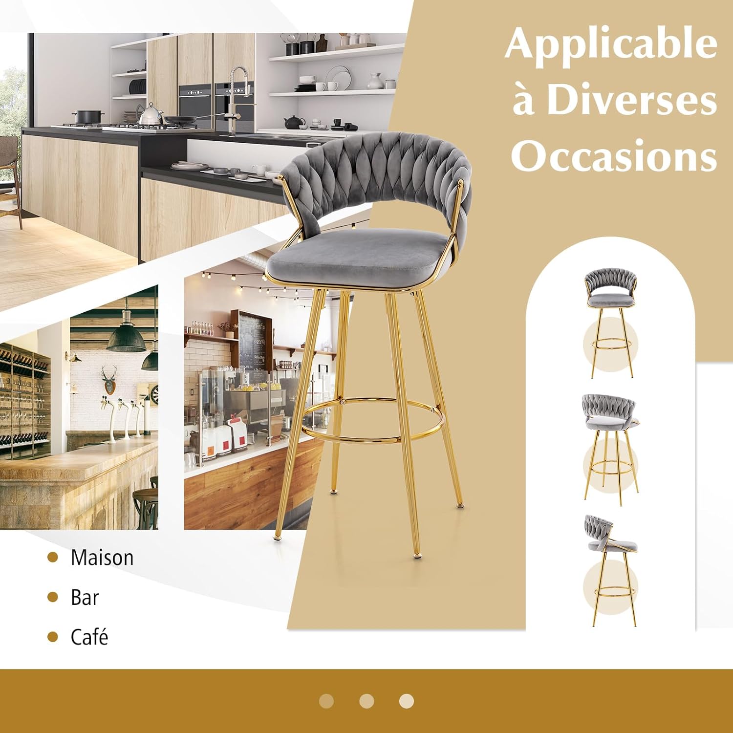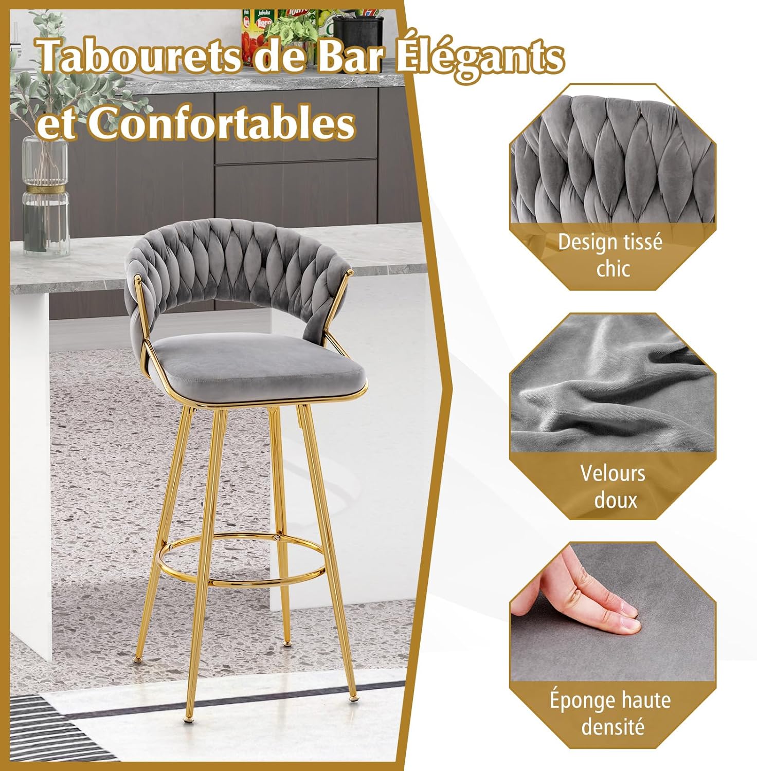 | Libellé | Lot de 2 chaises de bar en velours, tabouret haut bar avec siège rembourré, pieds en métal doré chaise haute pour ilot central, cuisine,charge 200 kg |