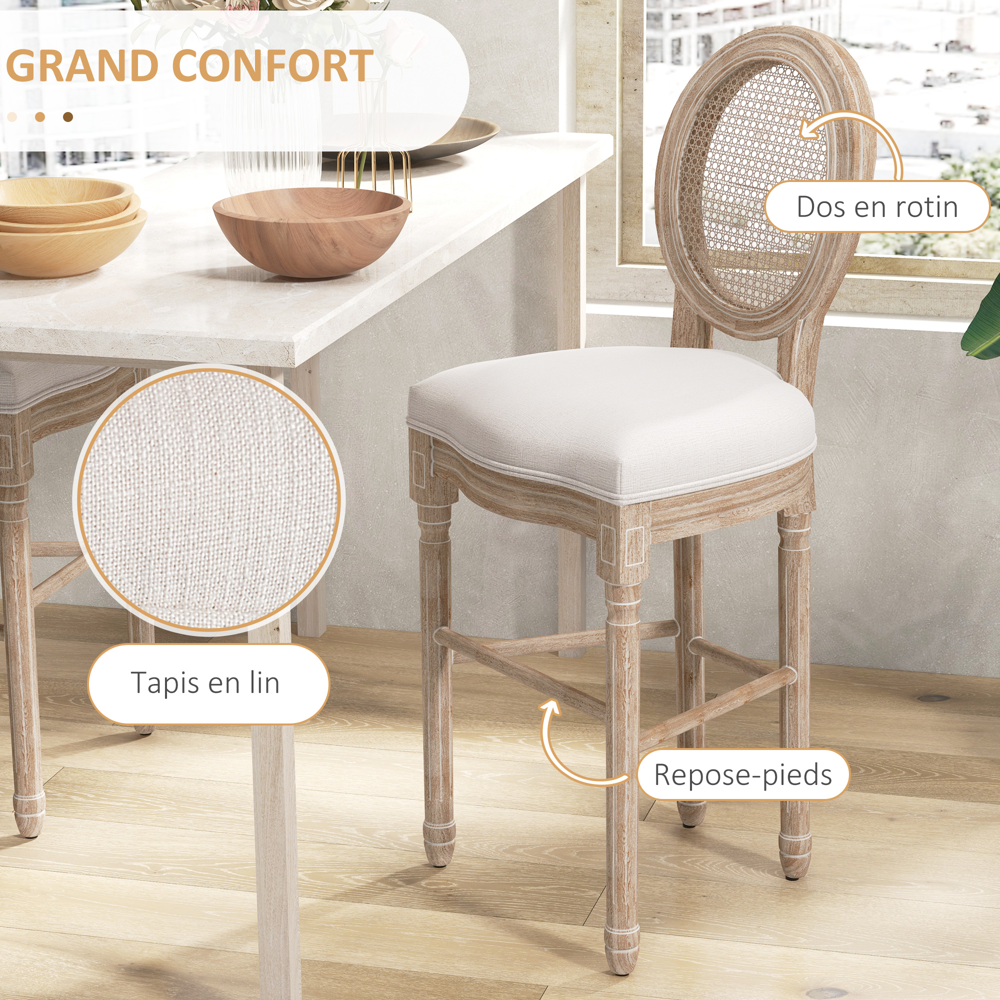 Ce sublime lot de 2 chaises hautes médaillon style Louis XVI ajoutera une touche d'élégance supplémentaire à votre intérieur. Avec son revêtement en tissu effet lin, son assise rembourré et dossier effet cannage, ce tabouret haut est agréable au toucher mais également très confortable. Notre ensemble de chaise de bar pourra prendra place devant votre îlot central ou votre bar.