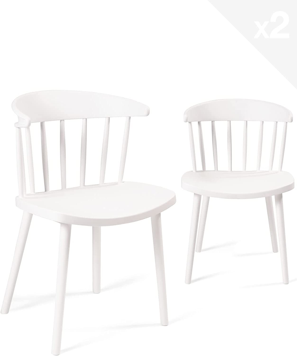 | Libellé | Lot de 2 chaises de cuisine à barreaux windsor western, plastique souple large assise DIA (Blanc) |