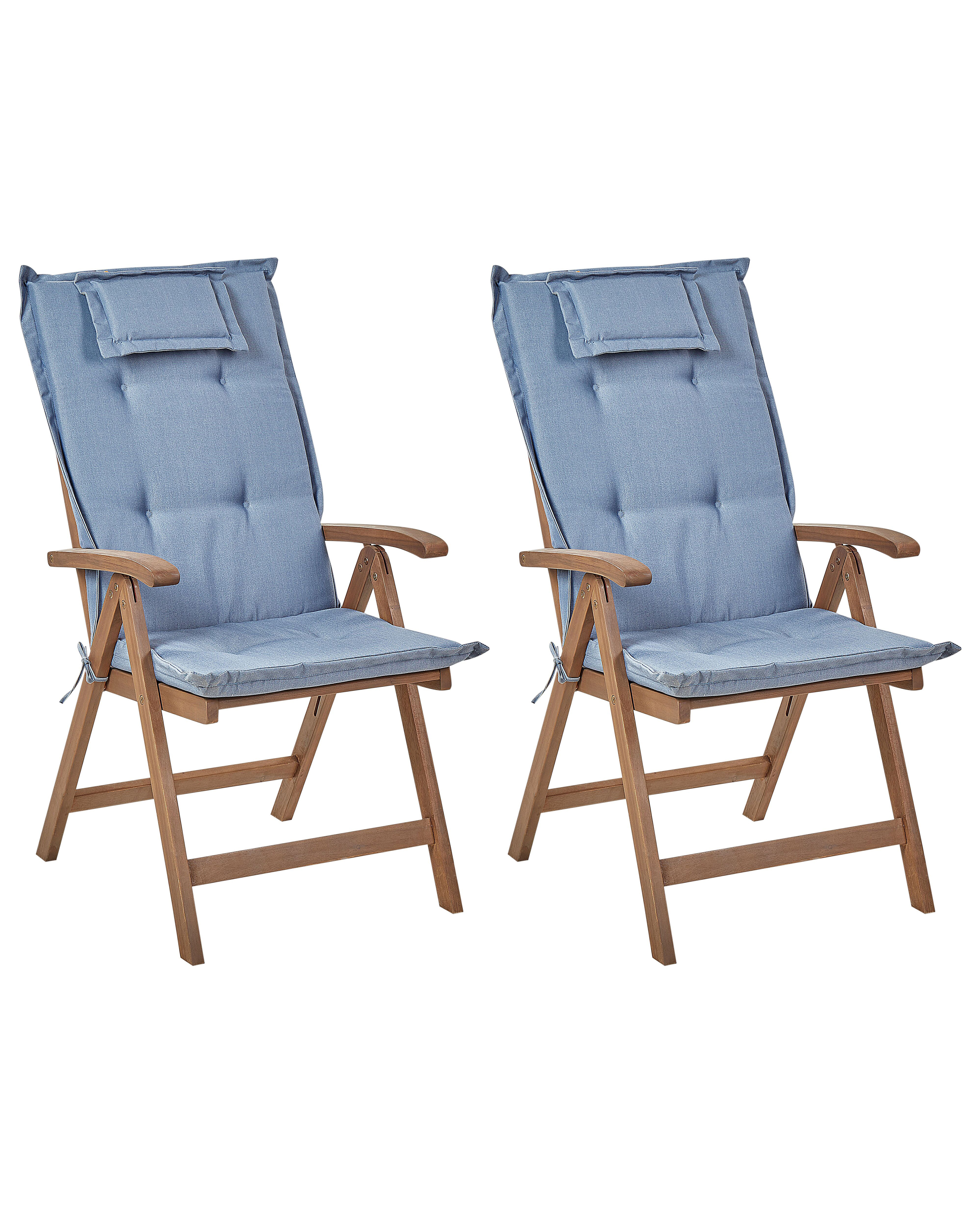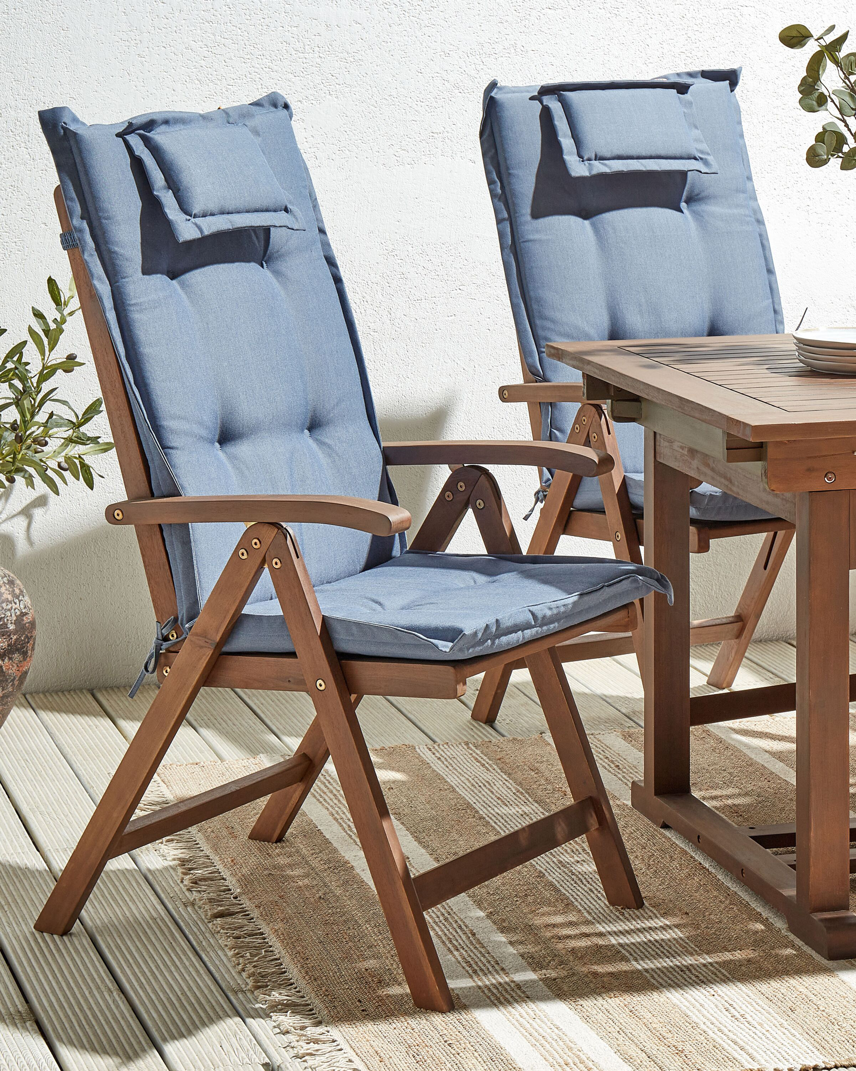 Lot de 2 chaises de jardin avec coussins AMANTEA Acacia Bleu