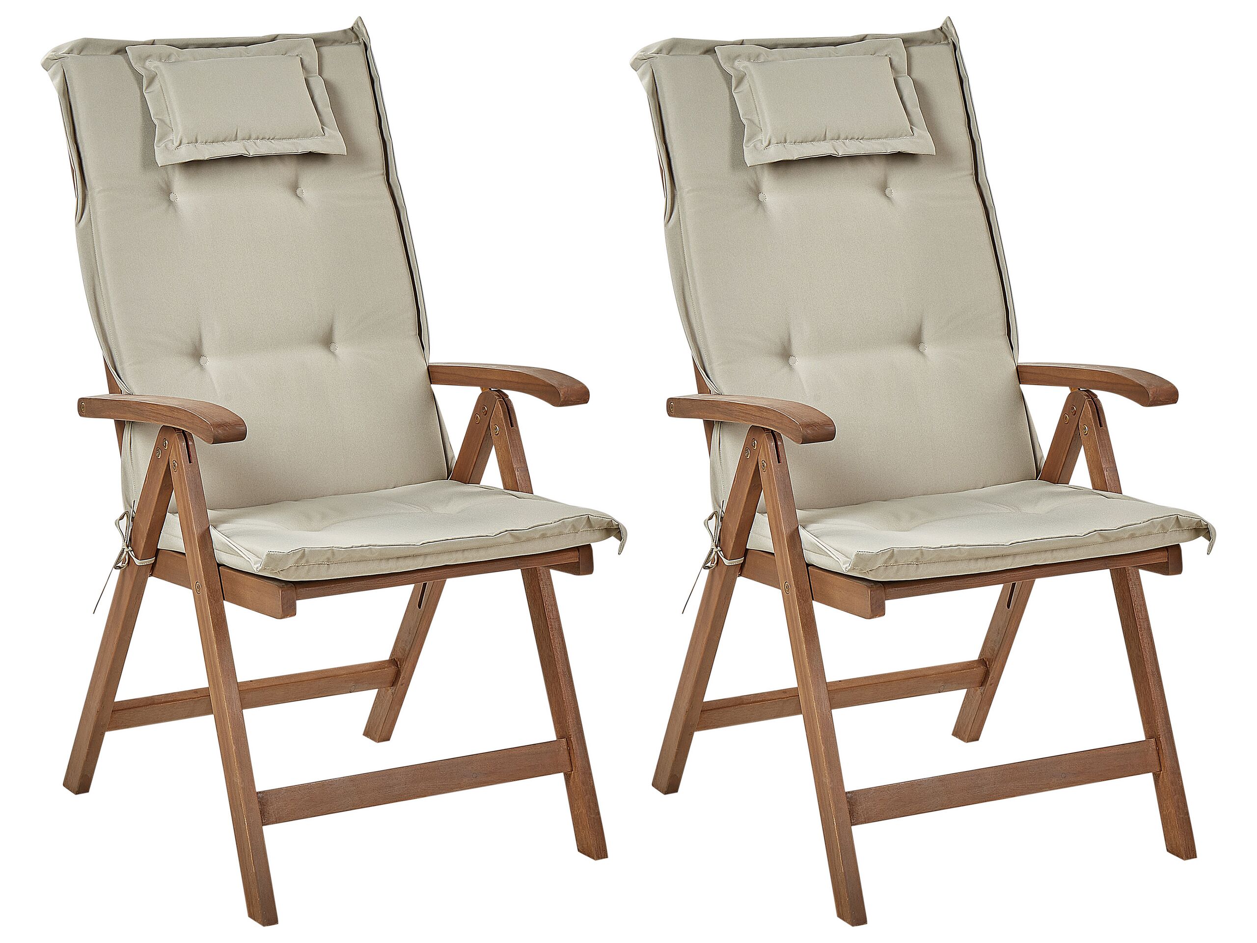 Lot de 2 chaises de jardin avec coussins AMANTEA Acacia Taupe