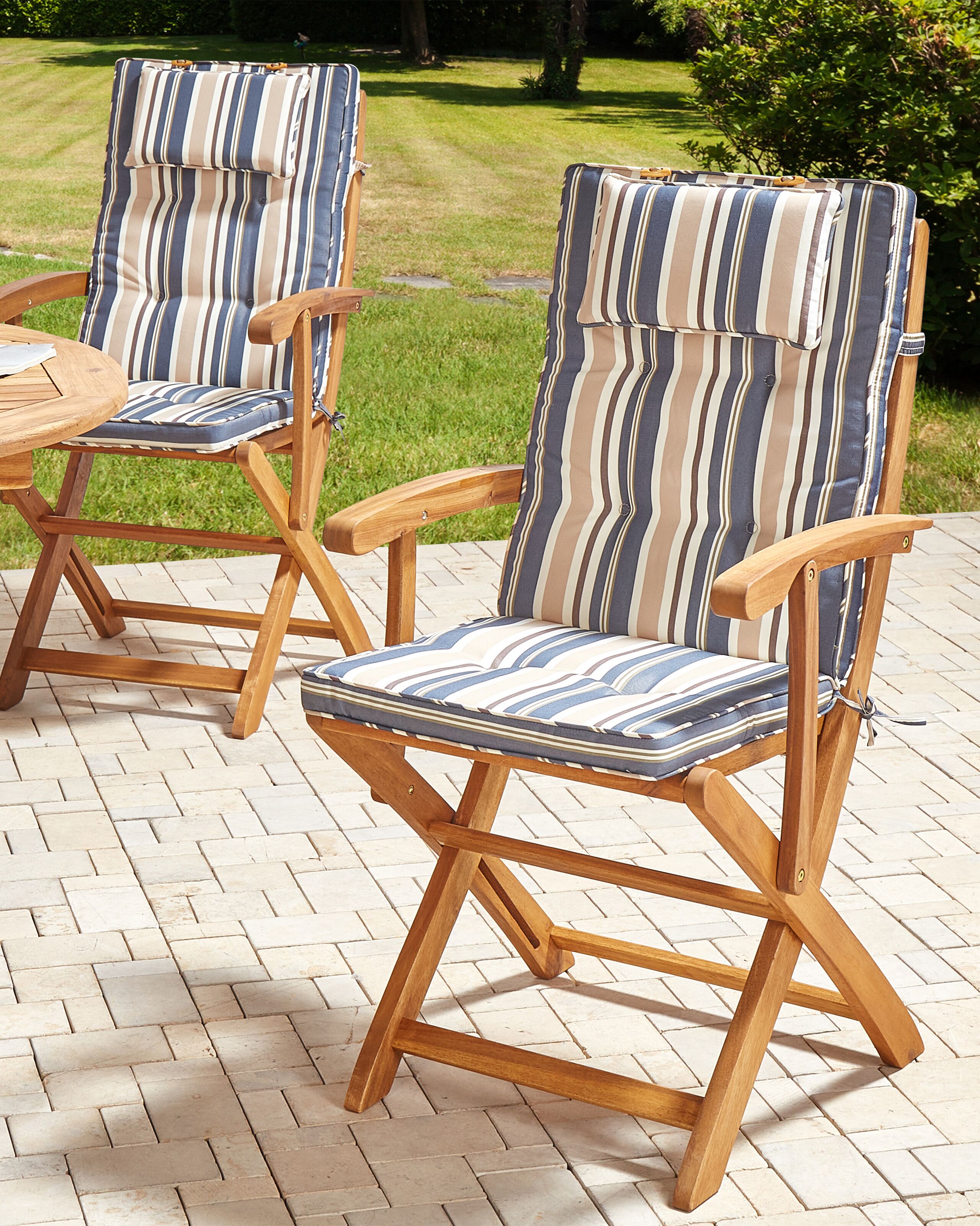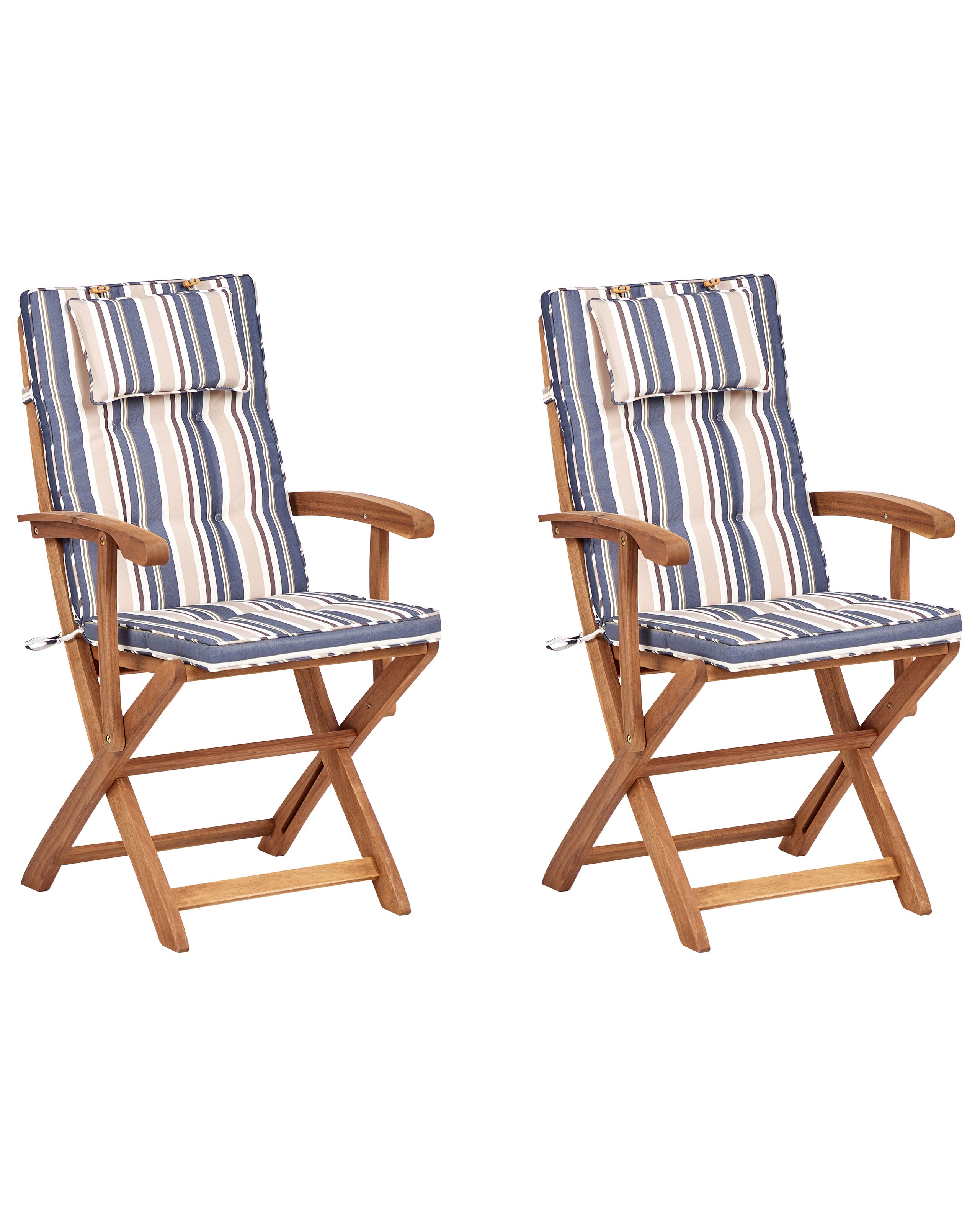 Lot de 2 chaises de jardin avec coussins MAUI II Acacia Multicolore