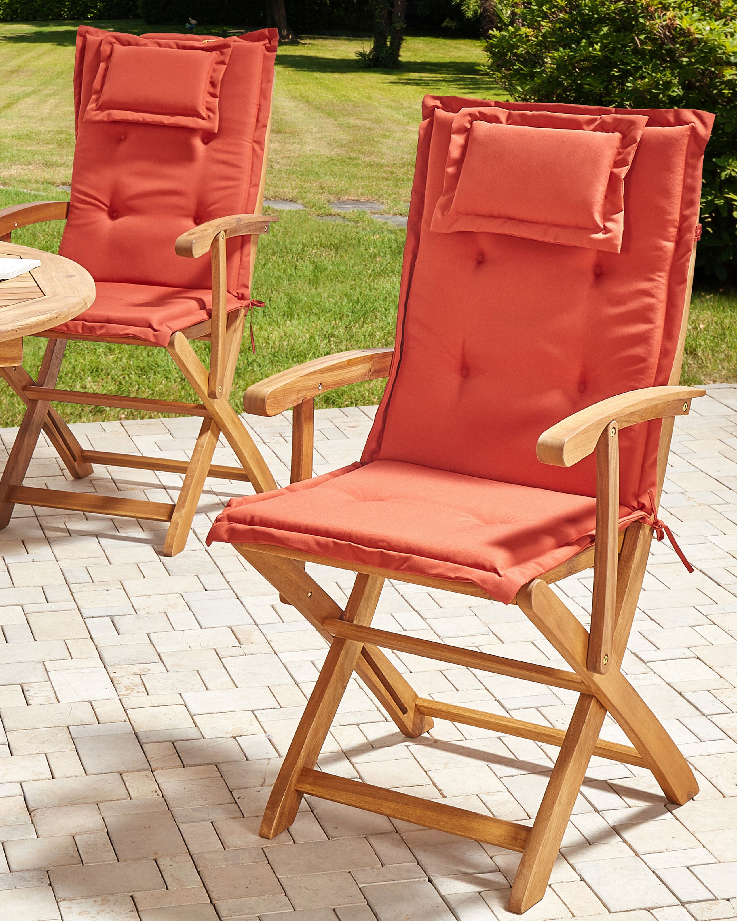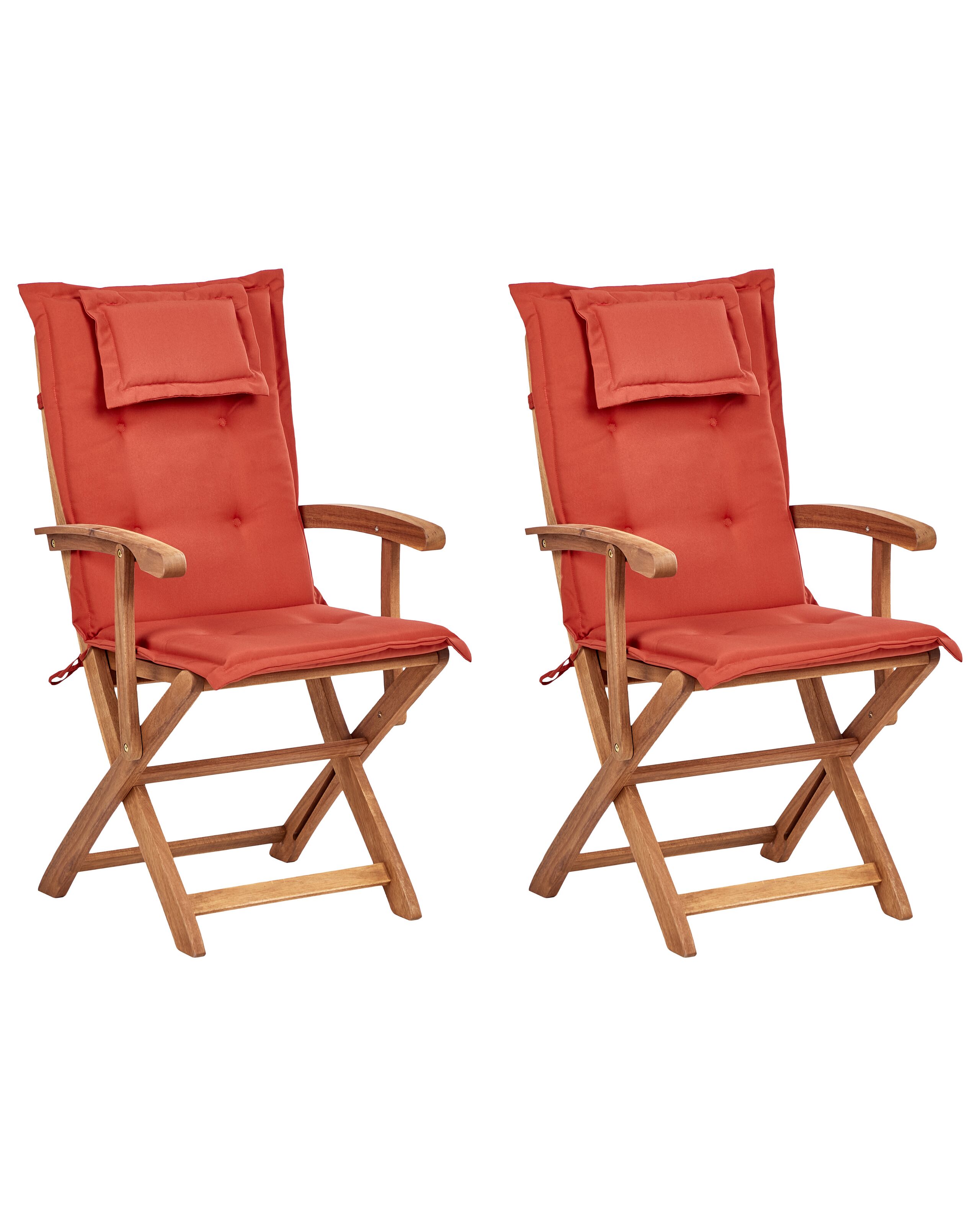 Lot de 2 chaises de jardin avec coussins MAUI II Acacia Rouge foncé