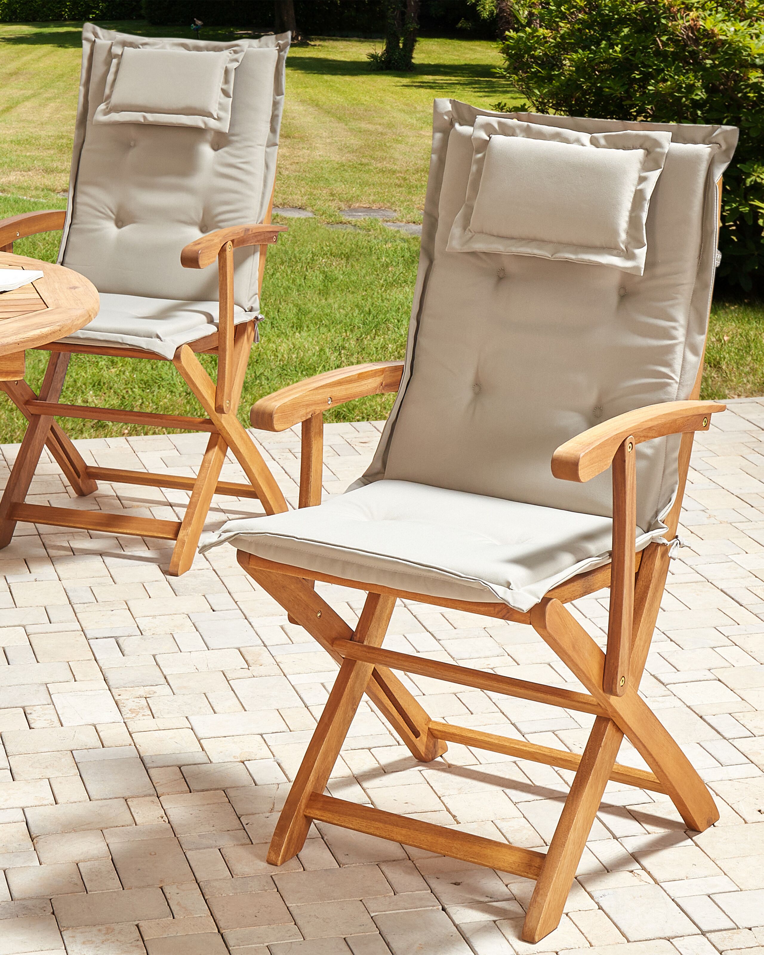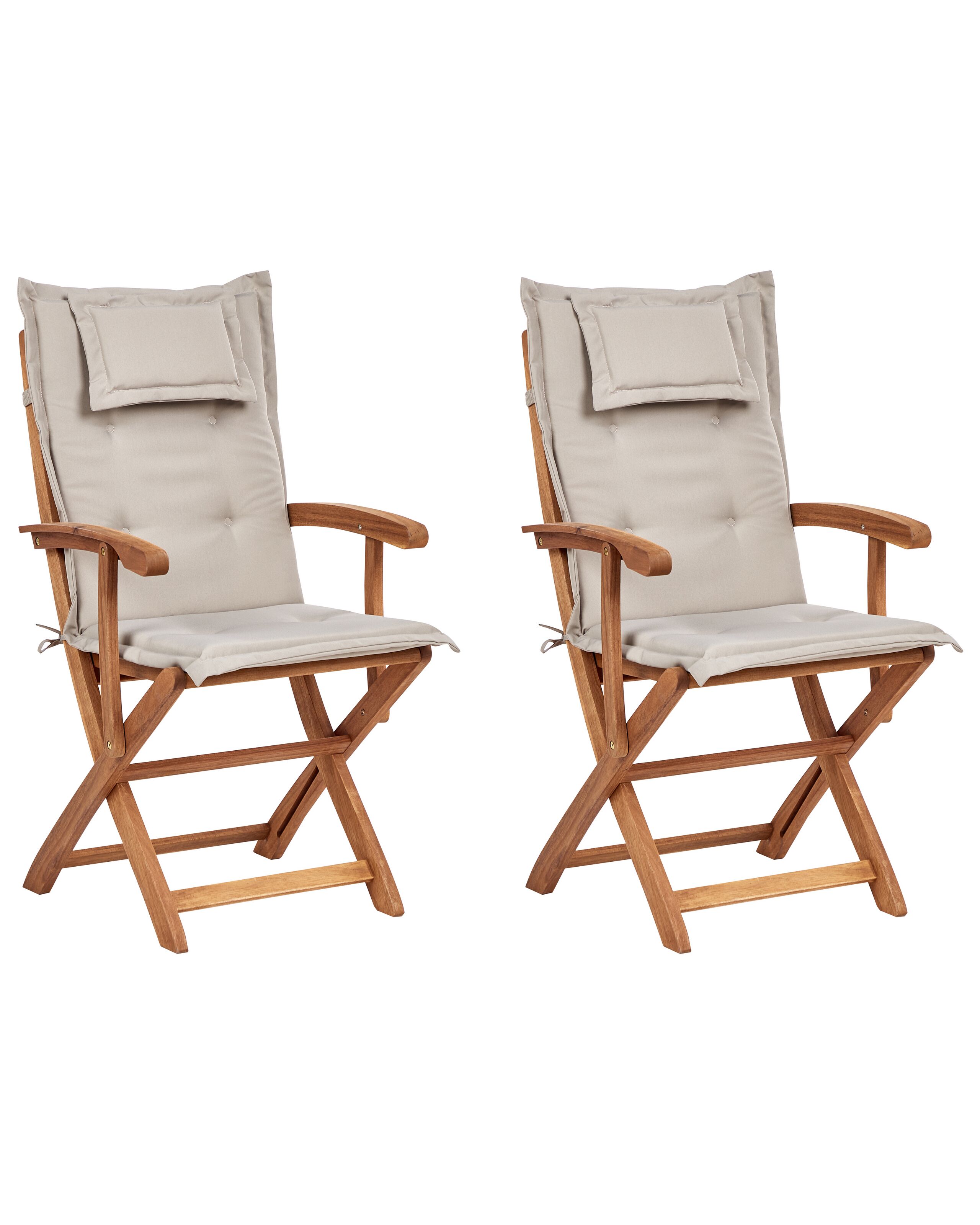 Lot de 2 chaises de jardin avec coussins MAUI II Acacia Taupe