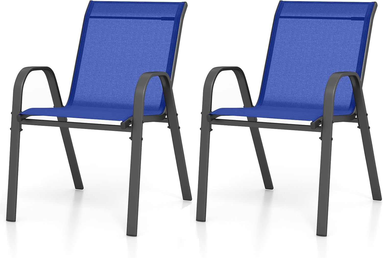 Lot de 2 chaises de jardin empilables, fauteuil de terrasse confortable avec accoudoirs dossier (bleu,2)