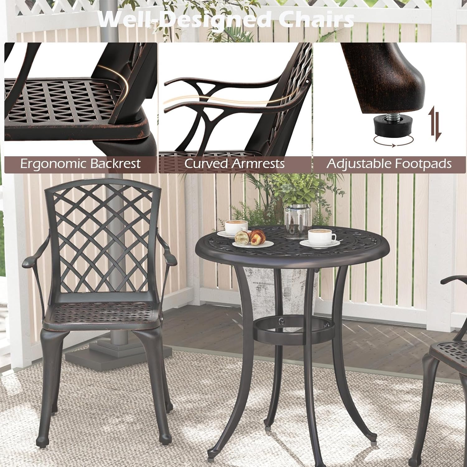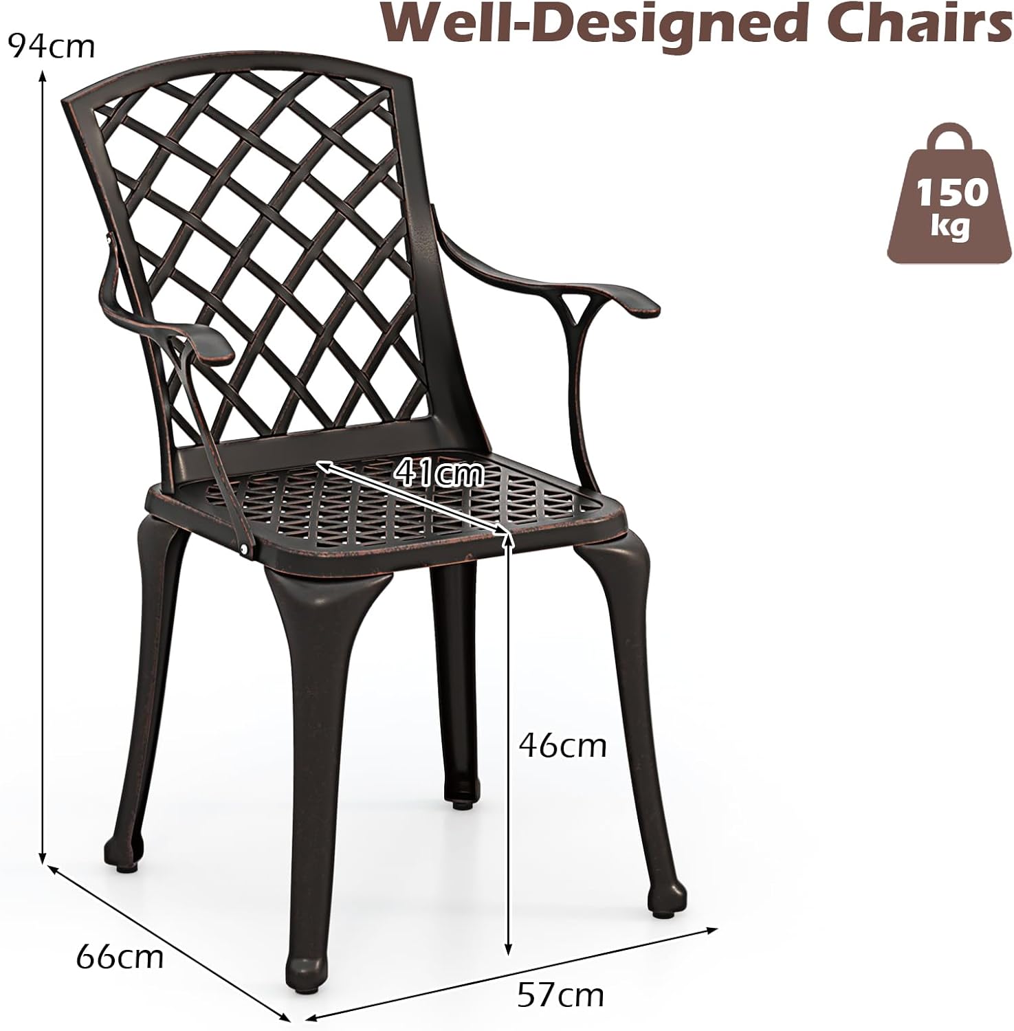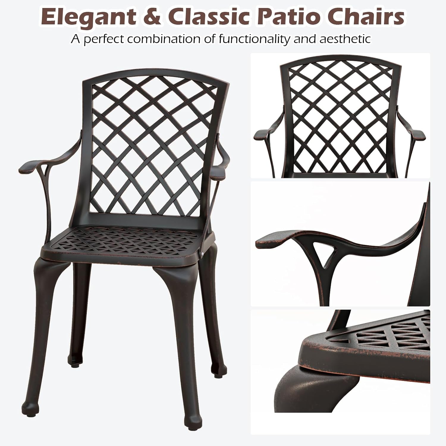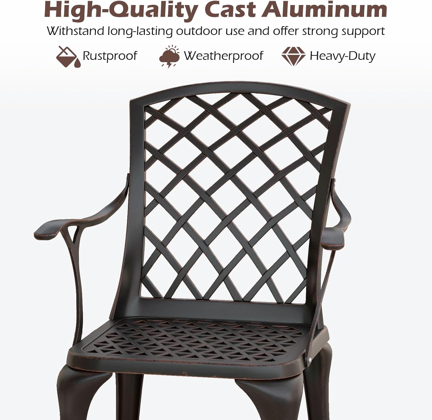 - Métal de qualité supérieure : La chaise de jardin en fonte d'aluminium résistante aux intempéries est robuste et inoxydable et peut également être utilisée en extérieur en toute confiance.