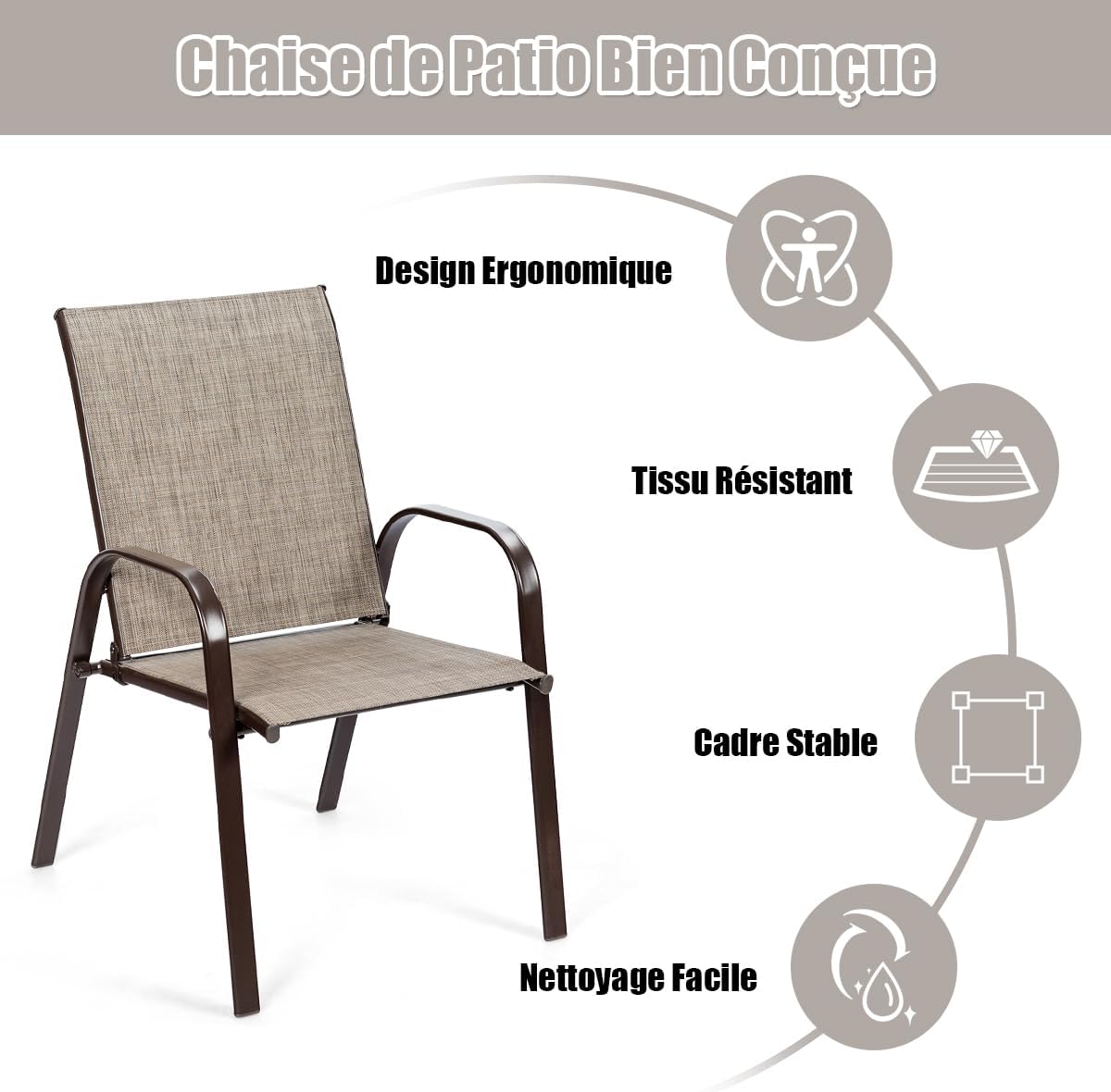 - Assemblage et Nettoyage Faciles : Dotées de tous les accessoires et d'instructions détaillées, nos chaises de terrasse sont rapides et faciles à installer, ce qui vous fait gagner beaucoup de temps et d'efforts. Grâce au tissu résistant aux intempéries et au cadre antirouille, notre chaise d'extérieur est simple à nettoyer et entretenir.