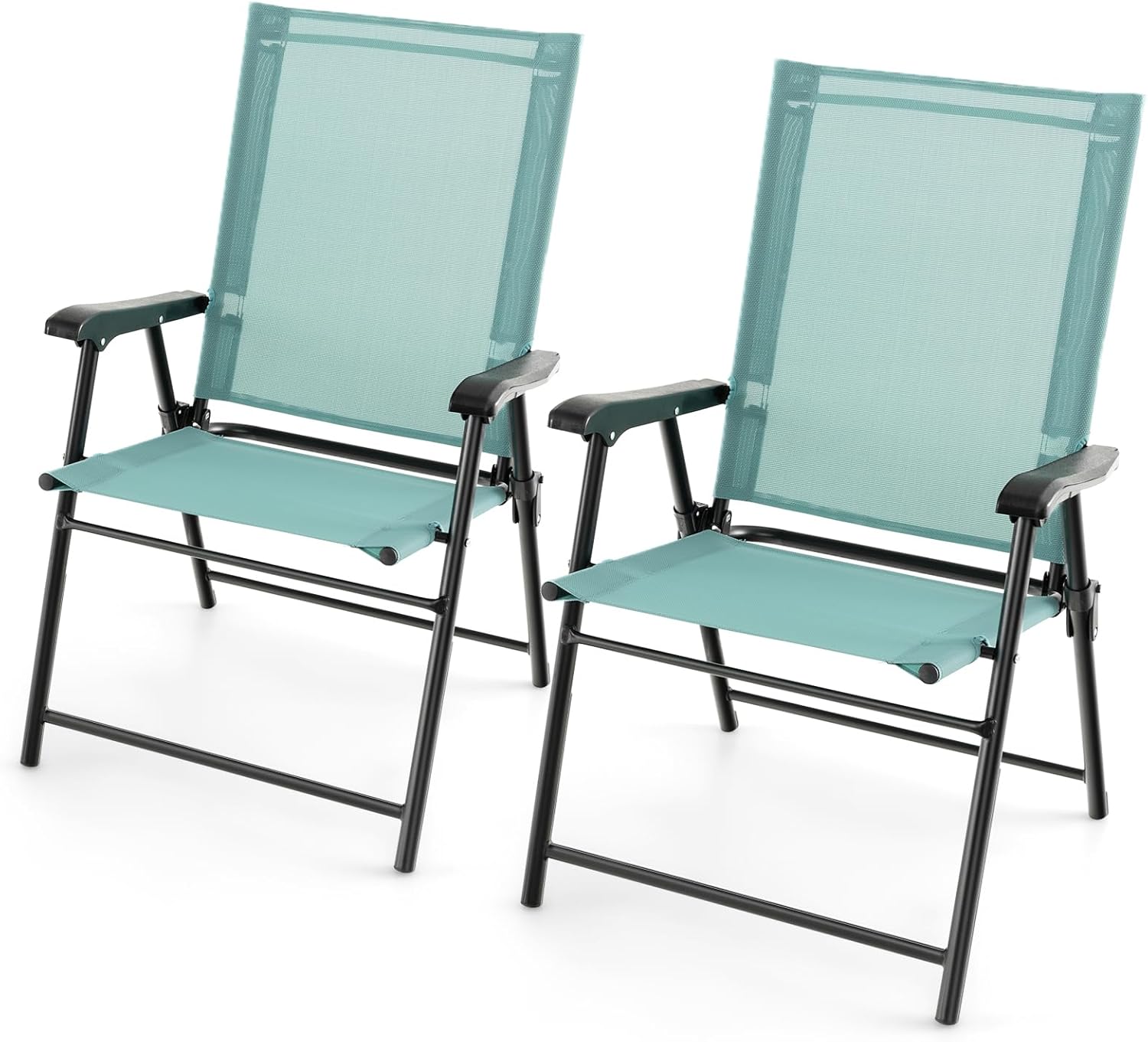 Lot de 2 chaises de jardin pliantes, avec accoudoirs, tissu respirant, chaises portatives (vert)