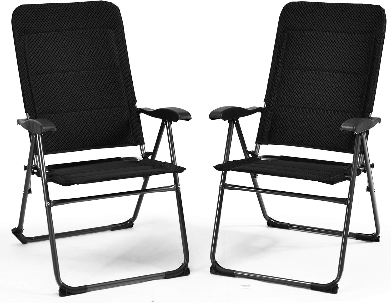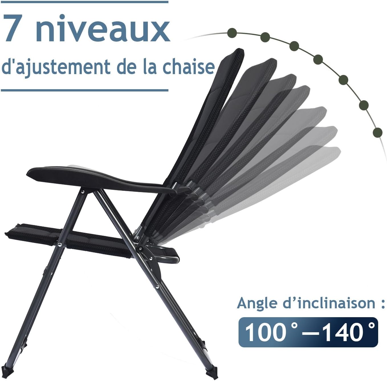 Lot de 2 chaises de jardin pliantes, chaises pliantes avec 7 positions de dossier réglables, accoudoir