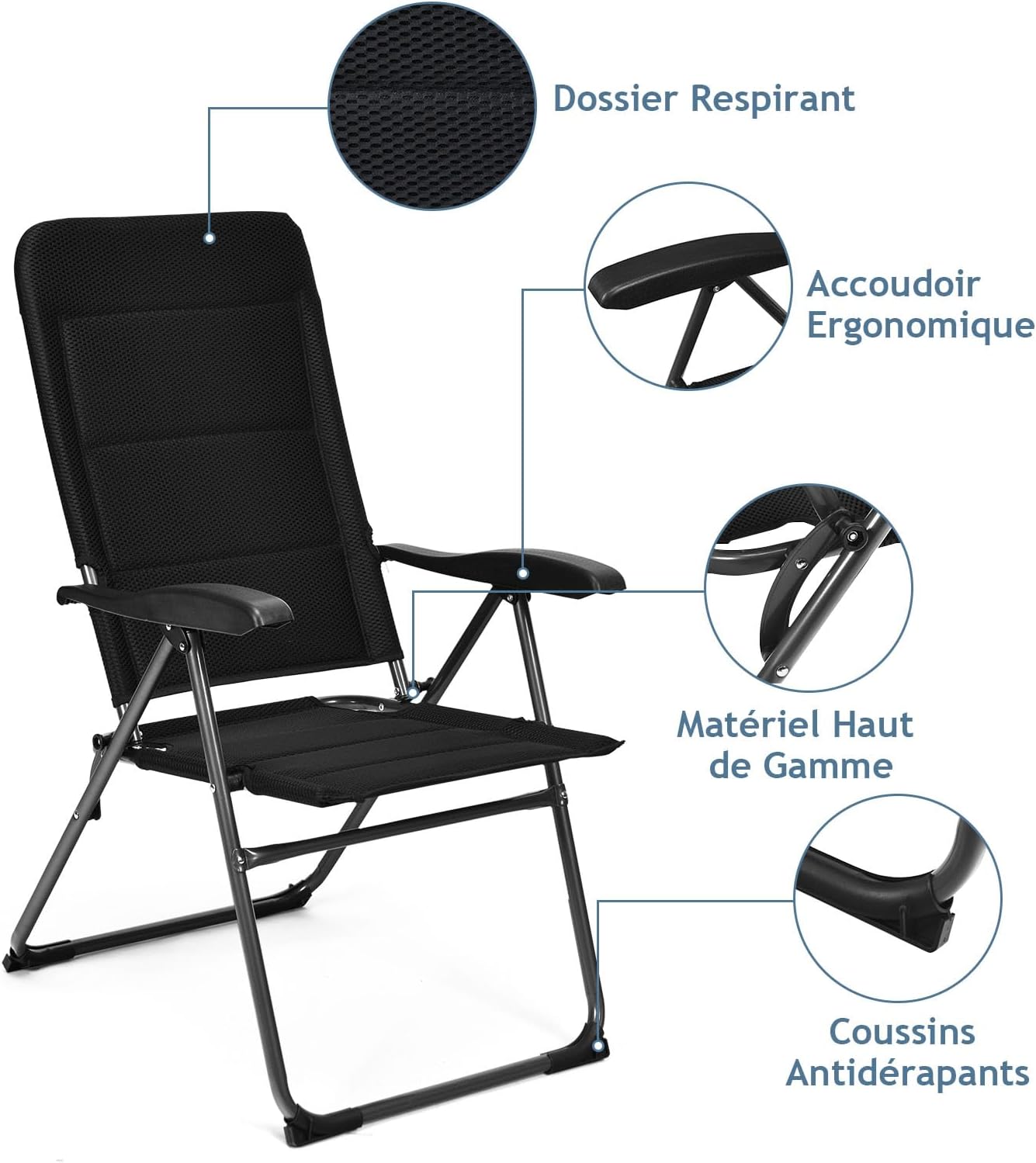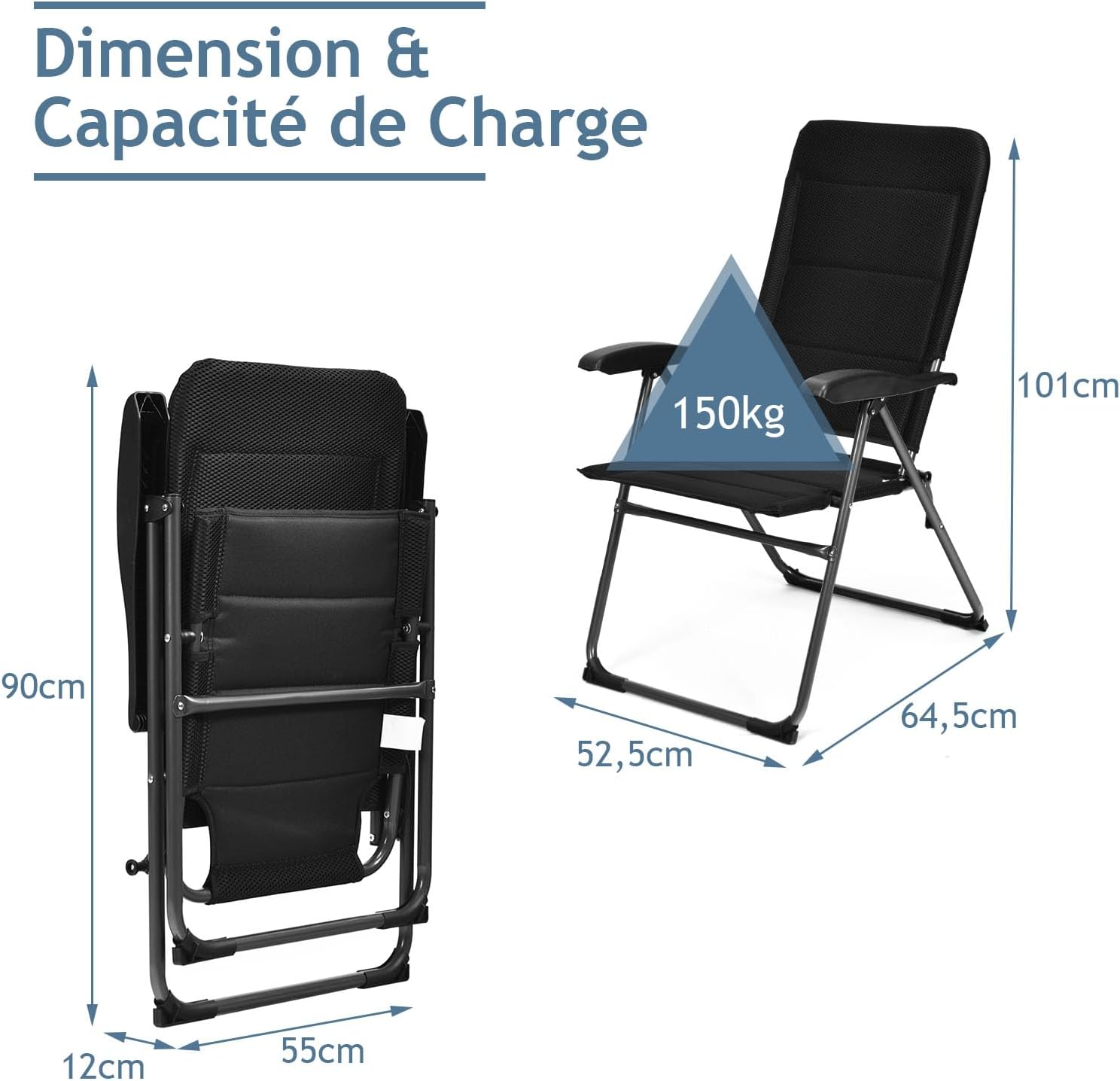 | Libellé | Lot de 2 chaises de jardin pliantes, chaises pliantes avec 7 positions de dossier réglables, accoudoir |