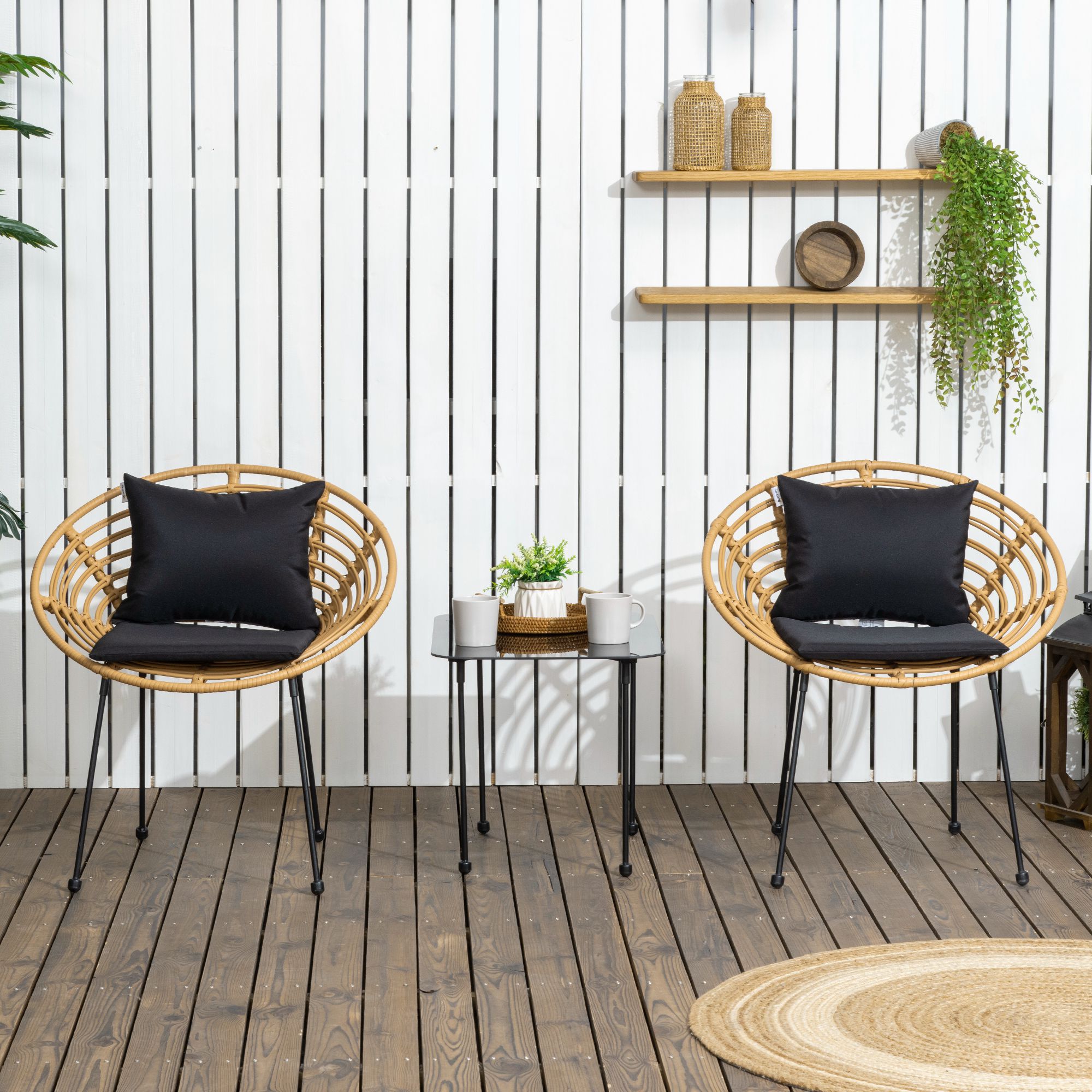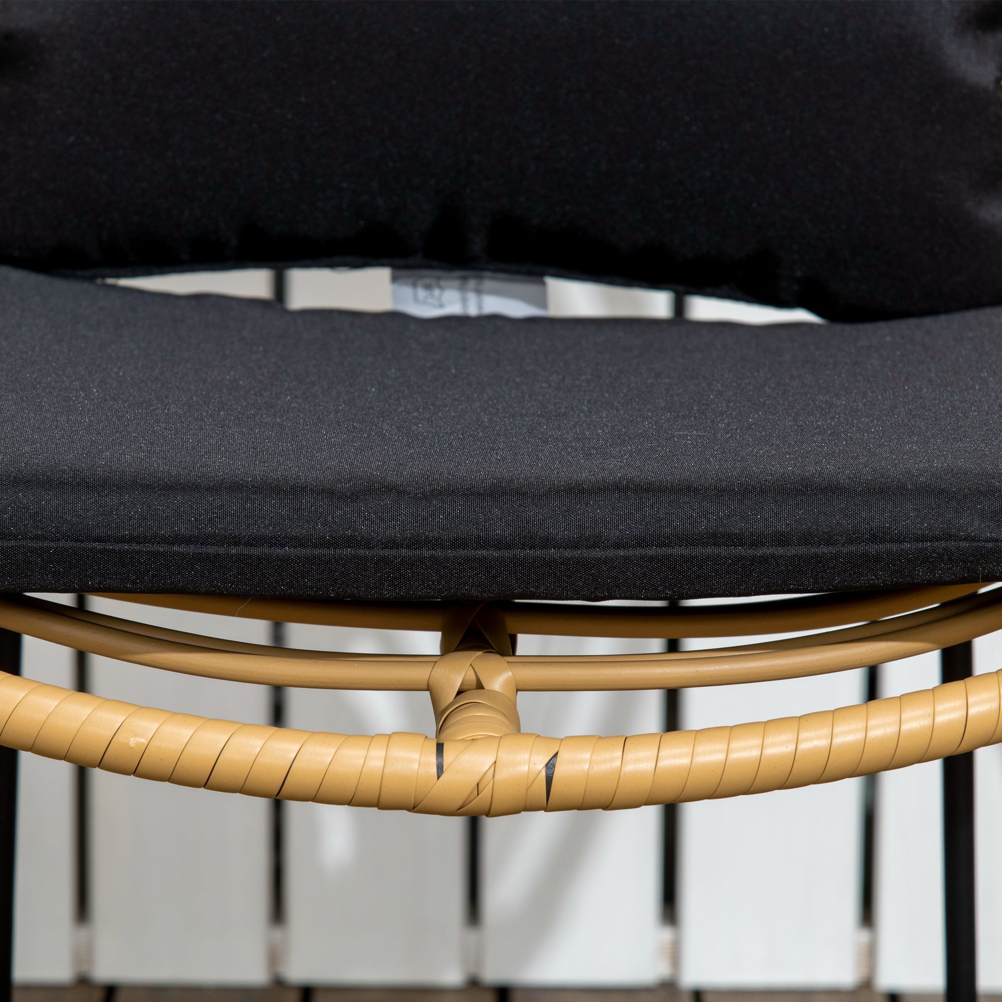 - Matériaux principaux : acier, résine tressée PE aspect rotin, mousse de rembourrage et tissu de polyester