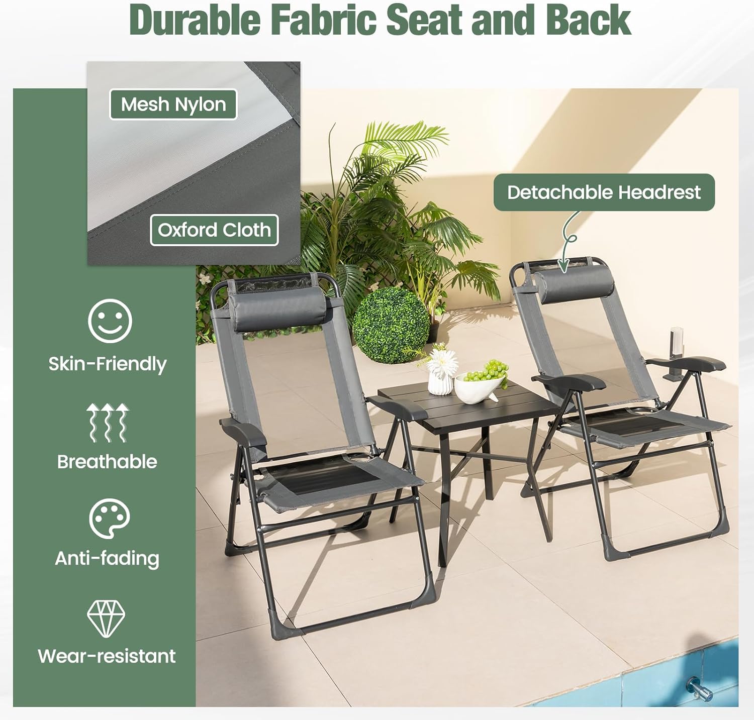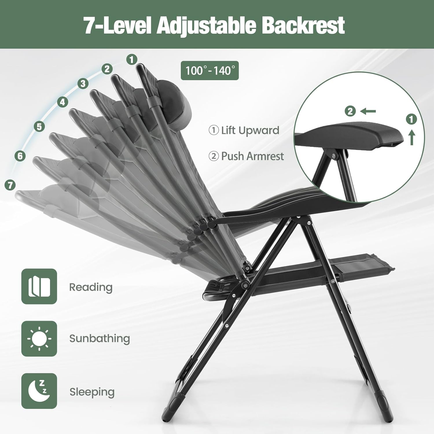 Lot de 2 chaises de patio, chaise de jardin pliable et portable avec siège respirant, cadre métallique