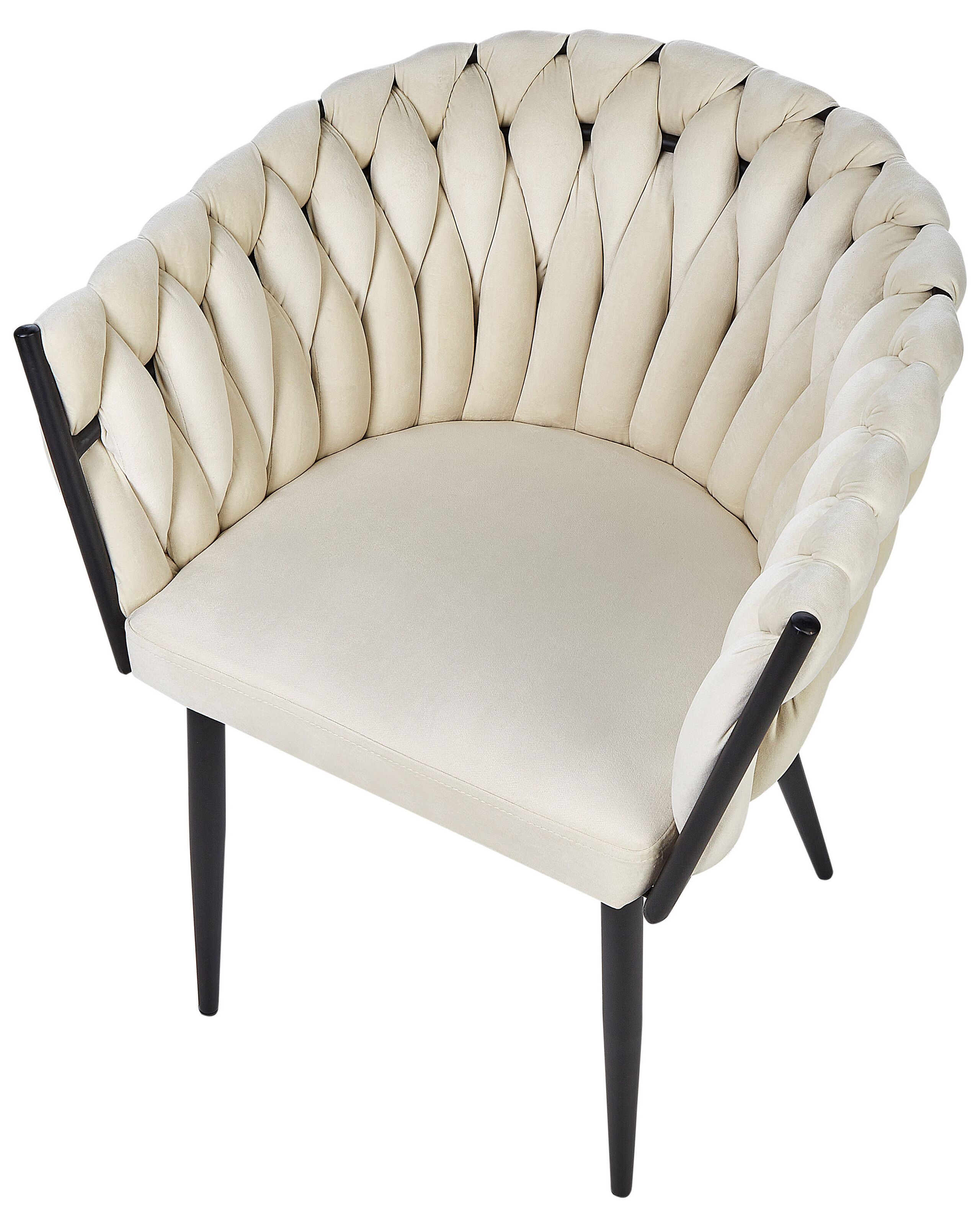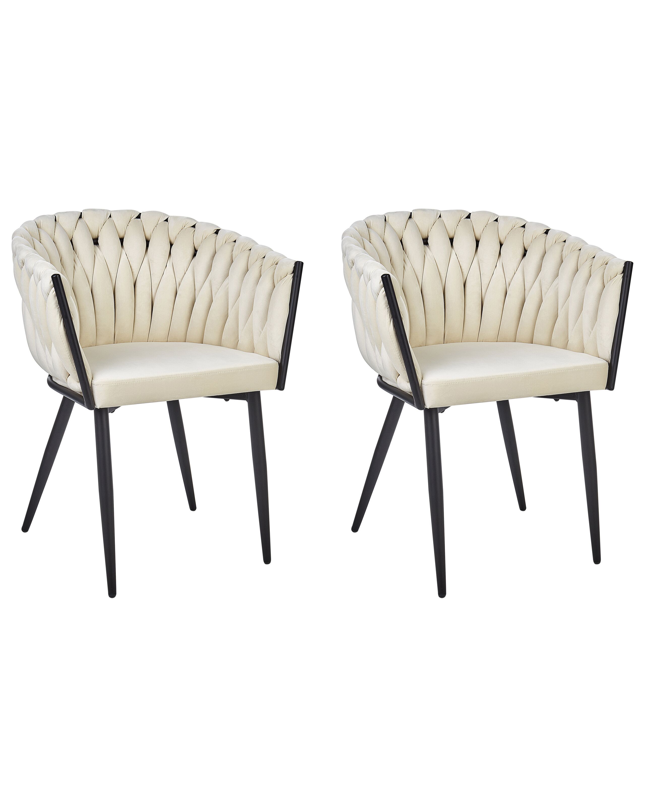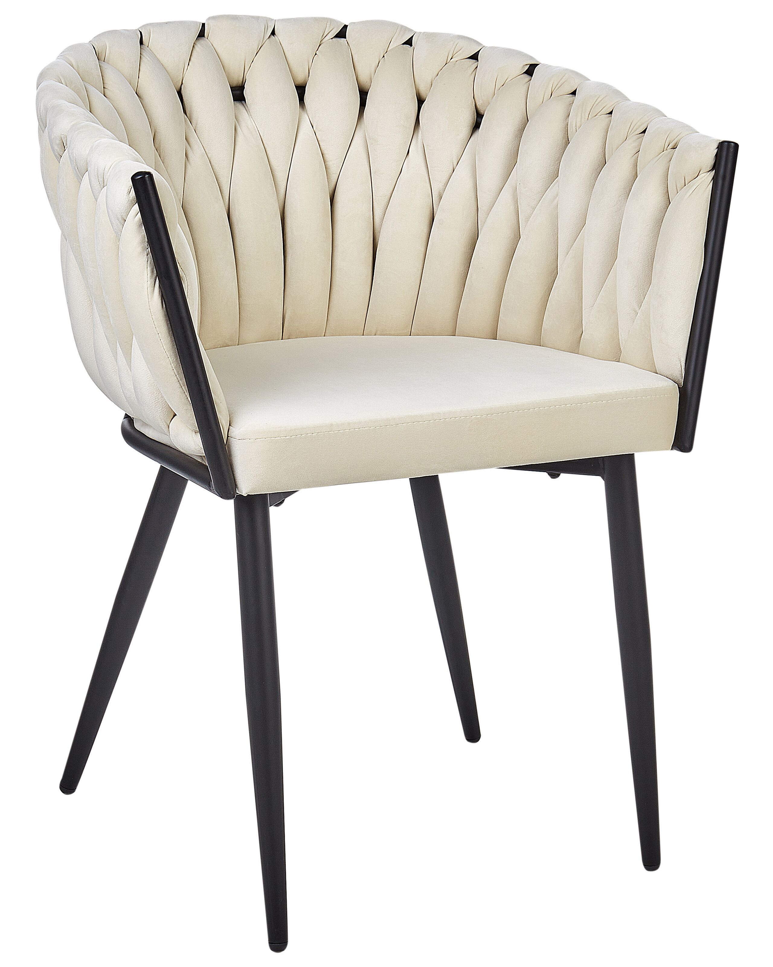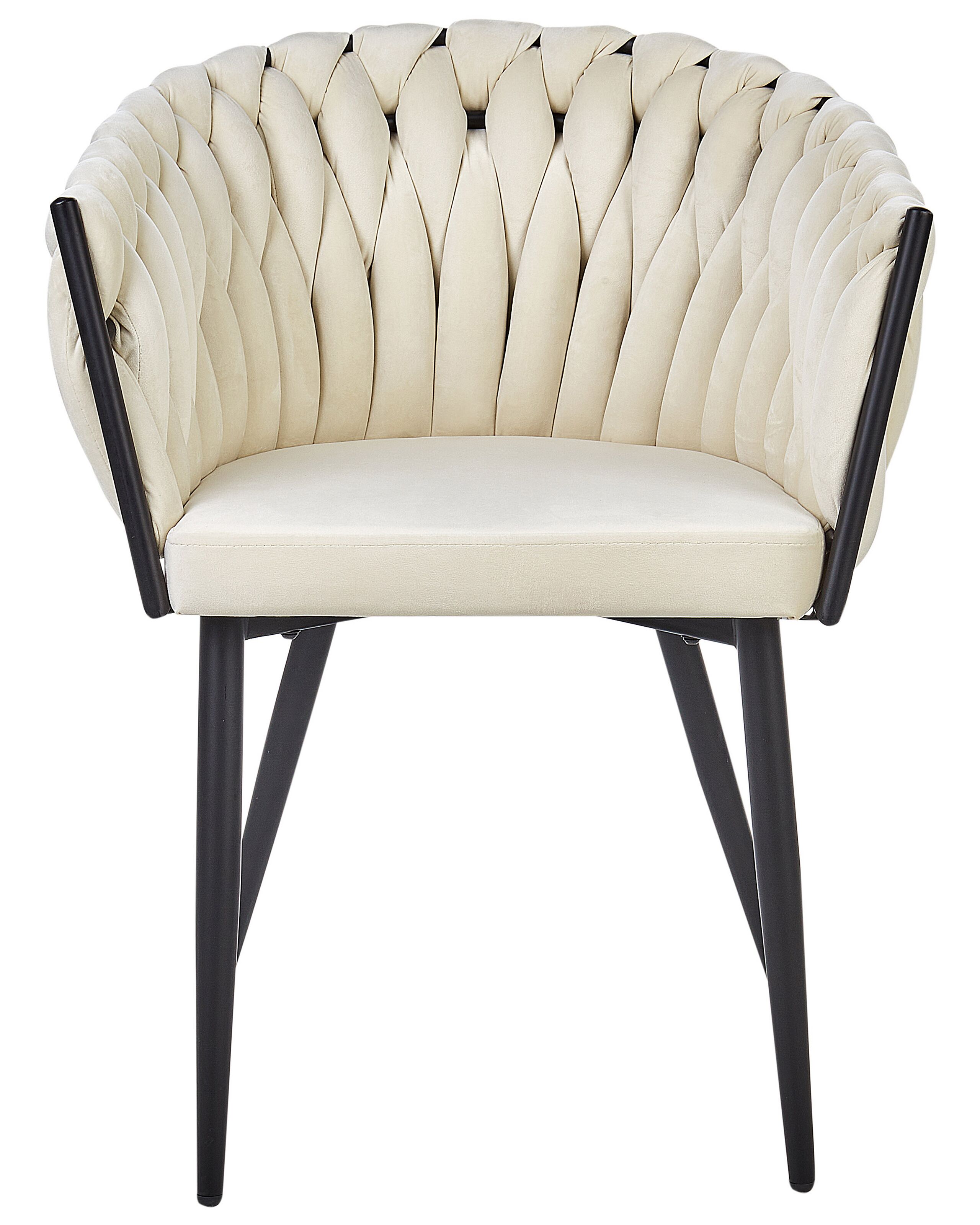 Chaises de repas avec structure en métal. Cet ensemble luxueux de chaises de repas rembourrées embellira votre salle à manger. Fabriquées en velours de haute qualité, dans une couleur beige clair intemporelle, elles sont faciles à entretenir et agréables au toucher. Leur look unique ajoutera certainement une touche d'élégance à n'importe quel décor intérieur, tout en vous apportant beaucoup de confort lors de vos repas. Montées sur un support en métal noir, les chaises sont également très stables.