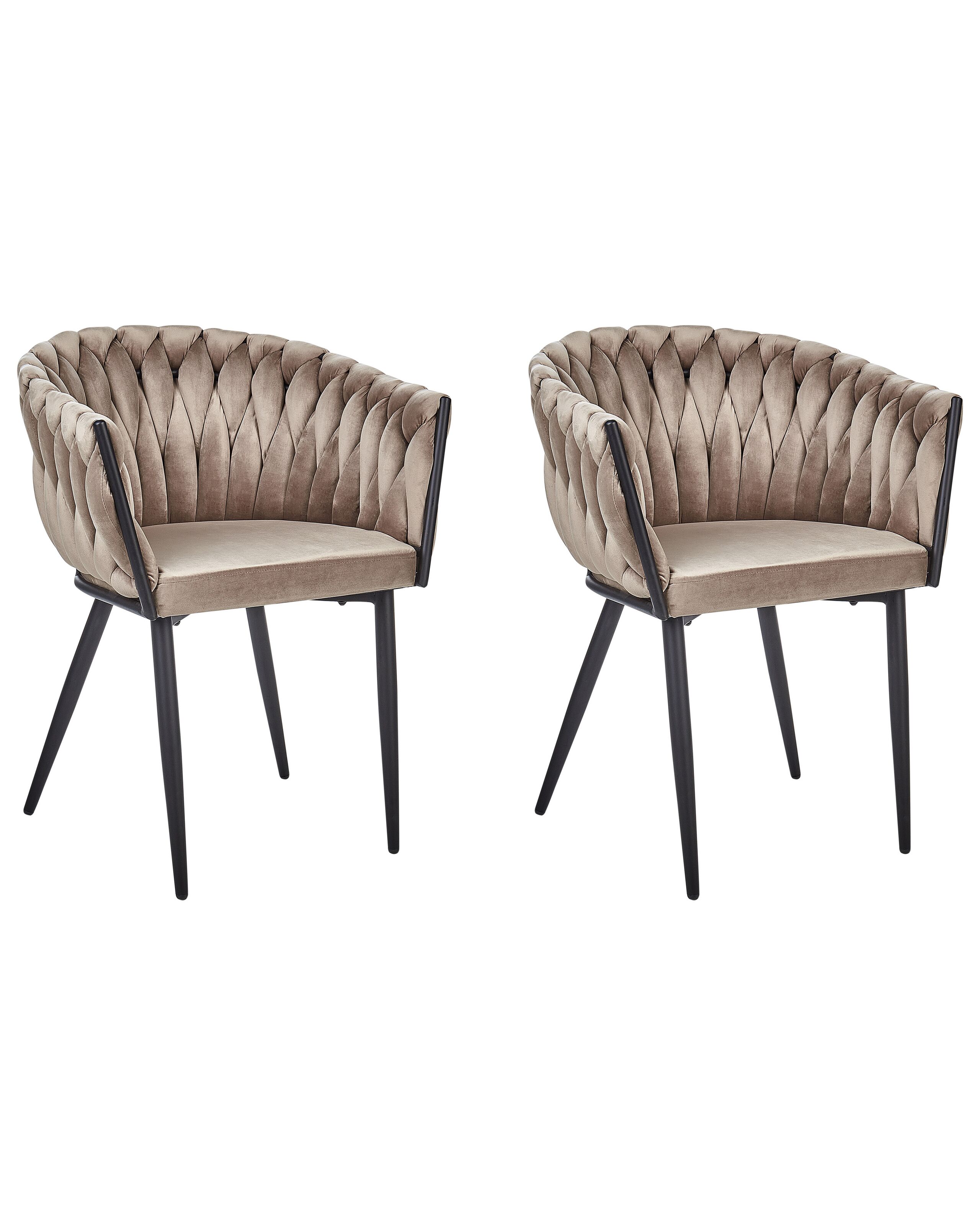 Lot de 2 chaises de salle à manger en velours taupe MILAN