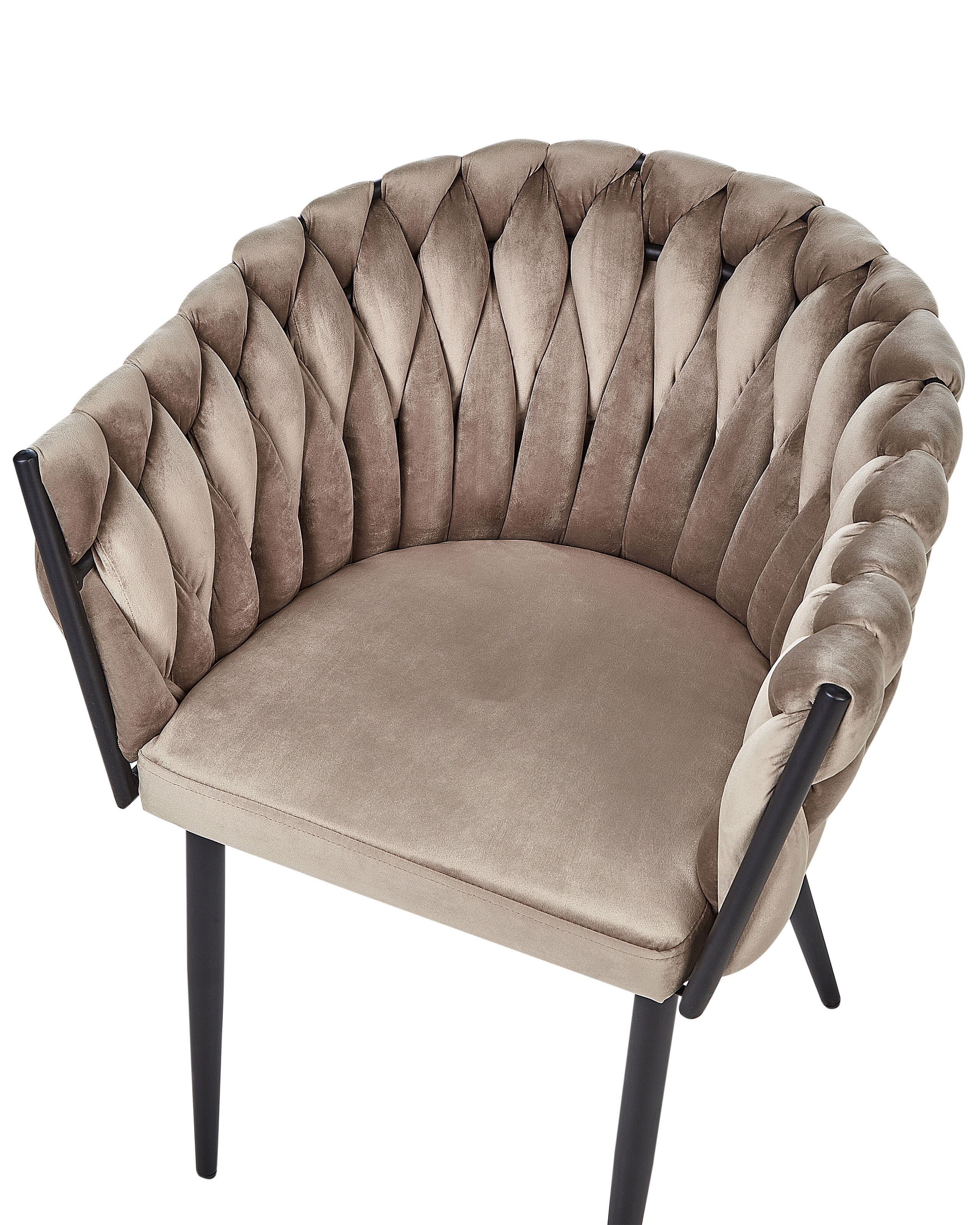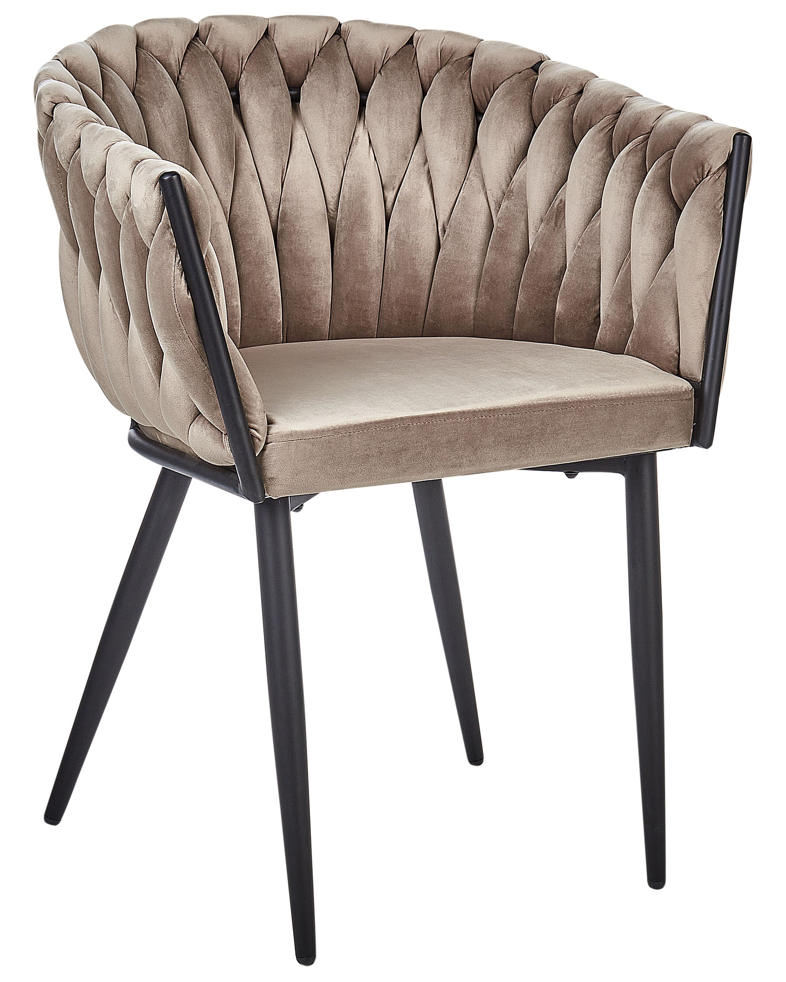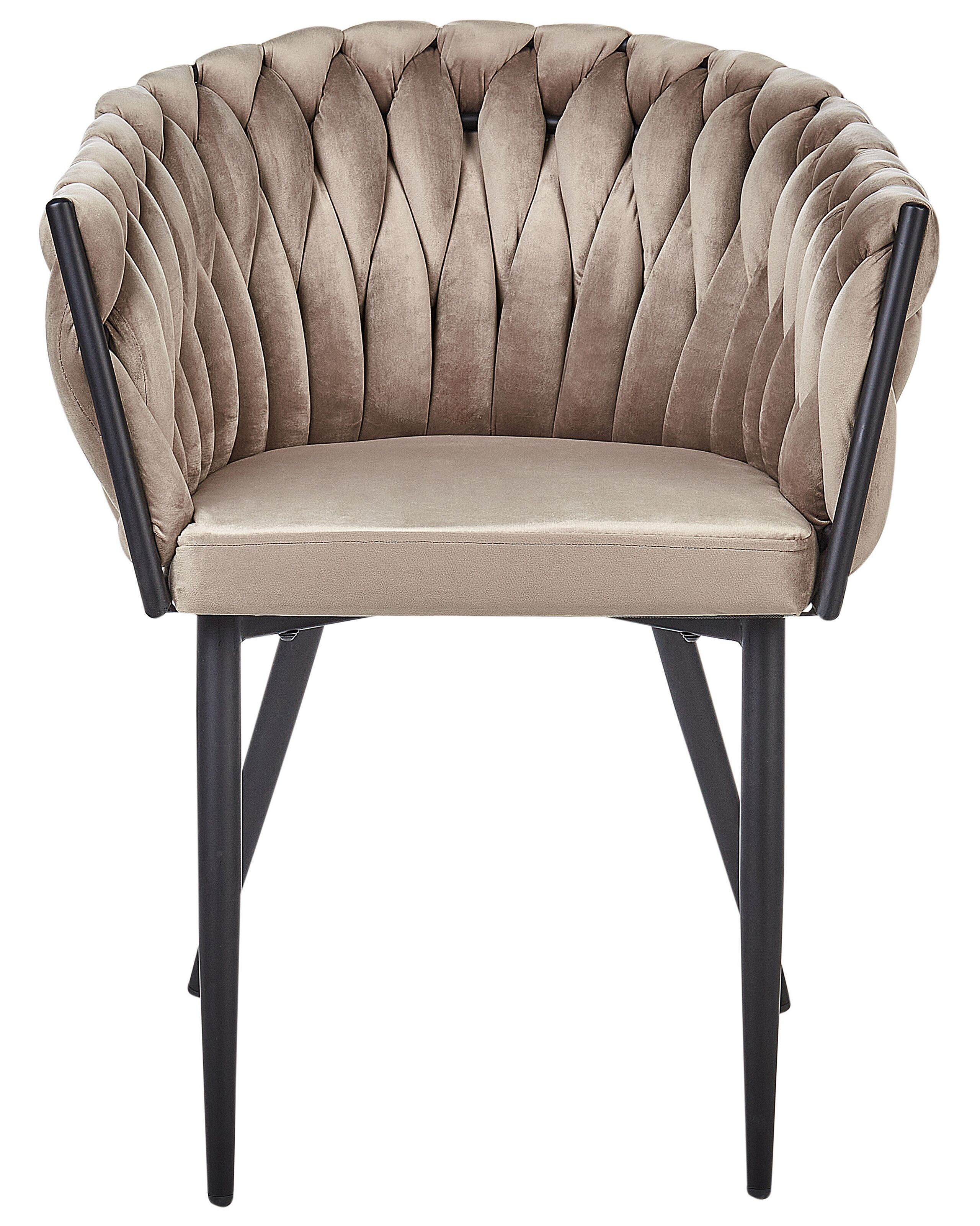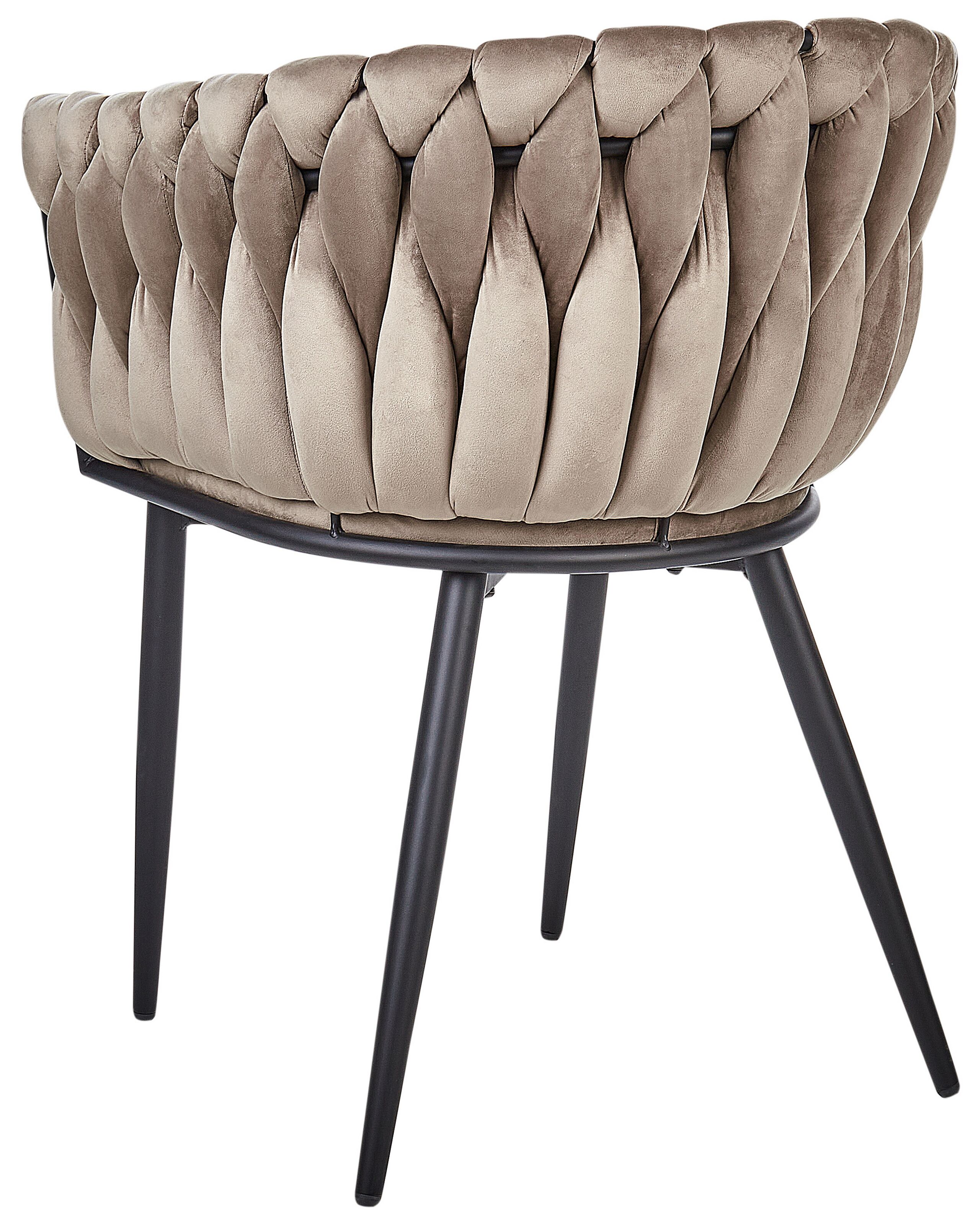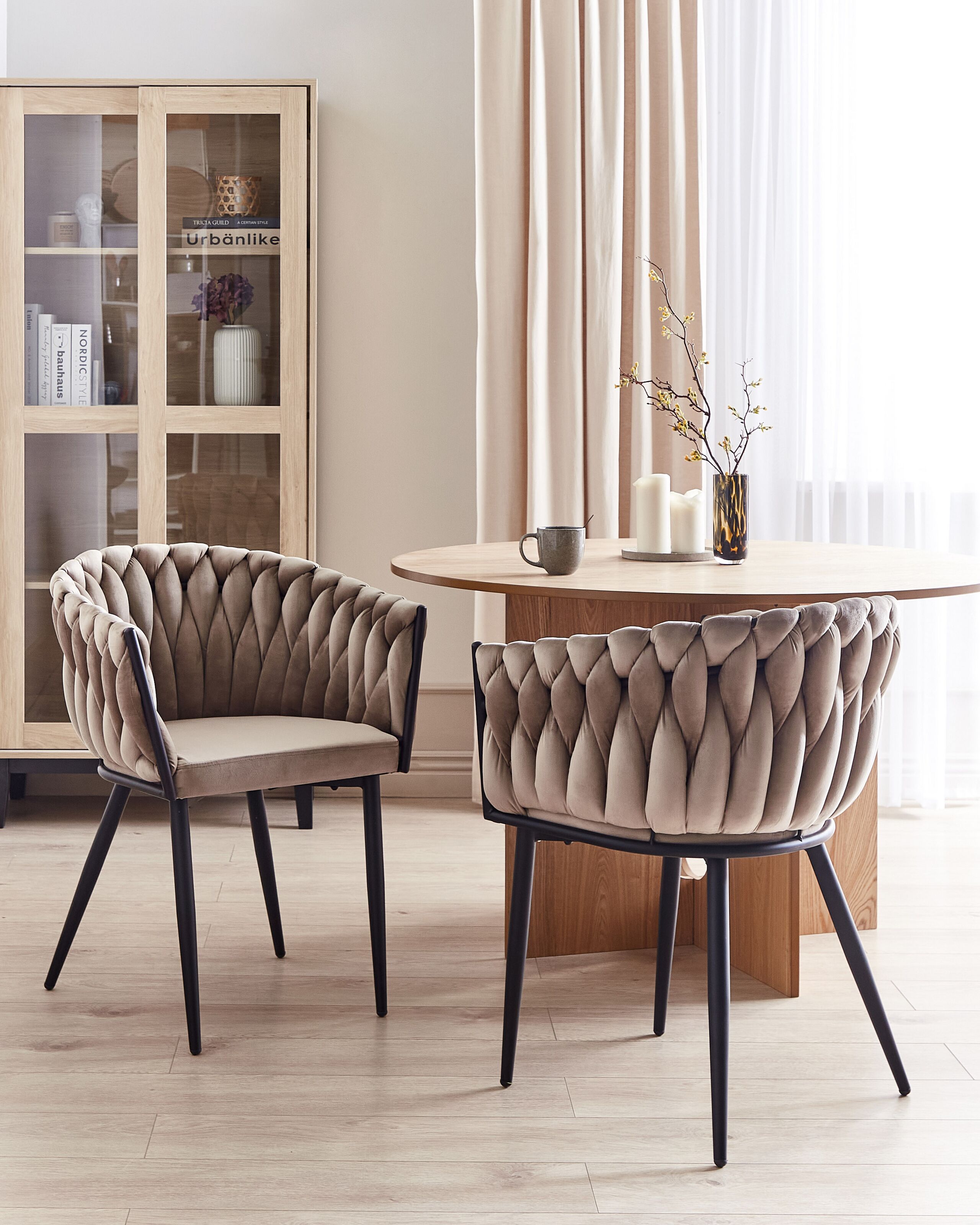 Chaises de repas avec structure en métal. Cet ensemble luxueux de chaises de repas rembourrées embellira votre salle à manger. Fabriquées en velours de haute qualité, dans une couleur taupe intemporelle, elles sont faciles à entretenir et agréables au toucher. Leur look unique ajoutera certainement une touche d'élégance à n'importe quel décor intérieur, tout en vous apportant beaucoup de confort lors de vos repas. Montées sur un support en métal noir, les chaises sont également très stables.