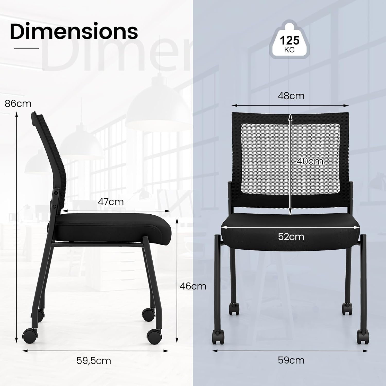 Libellé Lot de 2 chaises de salles de réunion empilables, chaises de bureau en maille avec roulettes noir