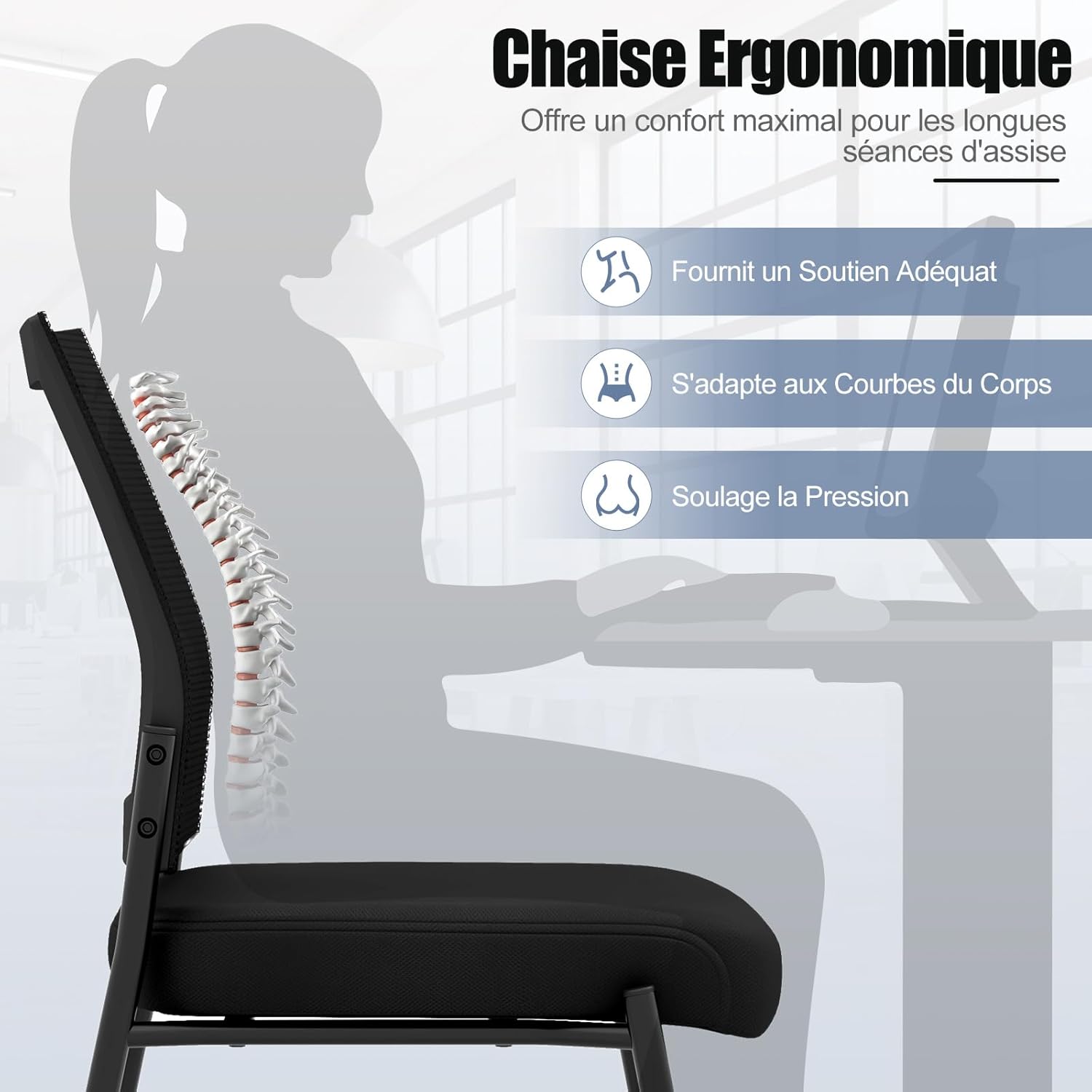 • 【Support Ergonomique en Maille】Ces chaises de salle d'attente sans accoudoirs sont conçues avec un dossier en maille ergonomique et respirant qui s'adapte à la courbe naturelle de votre corps. Idéal pour de longues périodes d'assise, cette fonction assure une circulation d'air et un soutien optimaux.