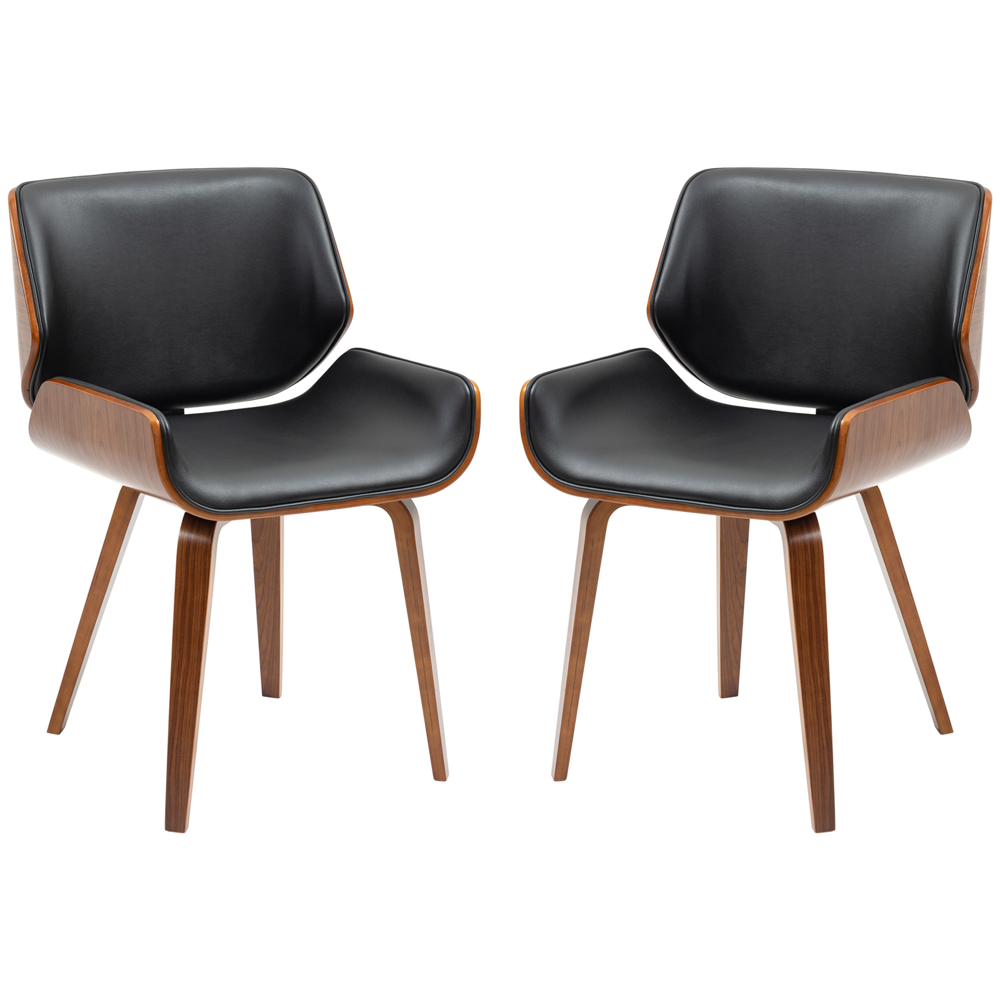 Lot de 2 chaises design vintage piètement châssis bois peuplier aspect noyer revêtement mixte synthétique