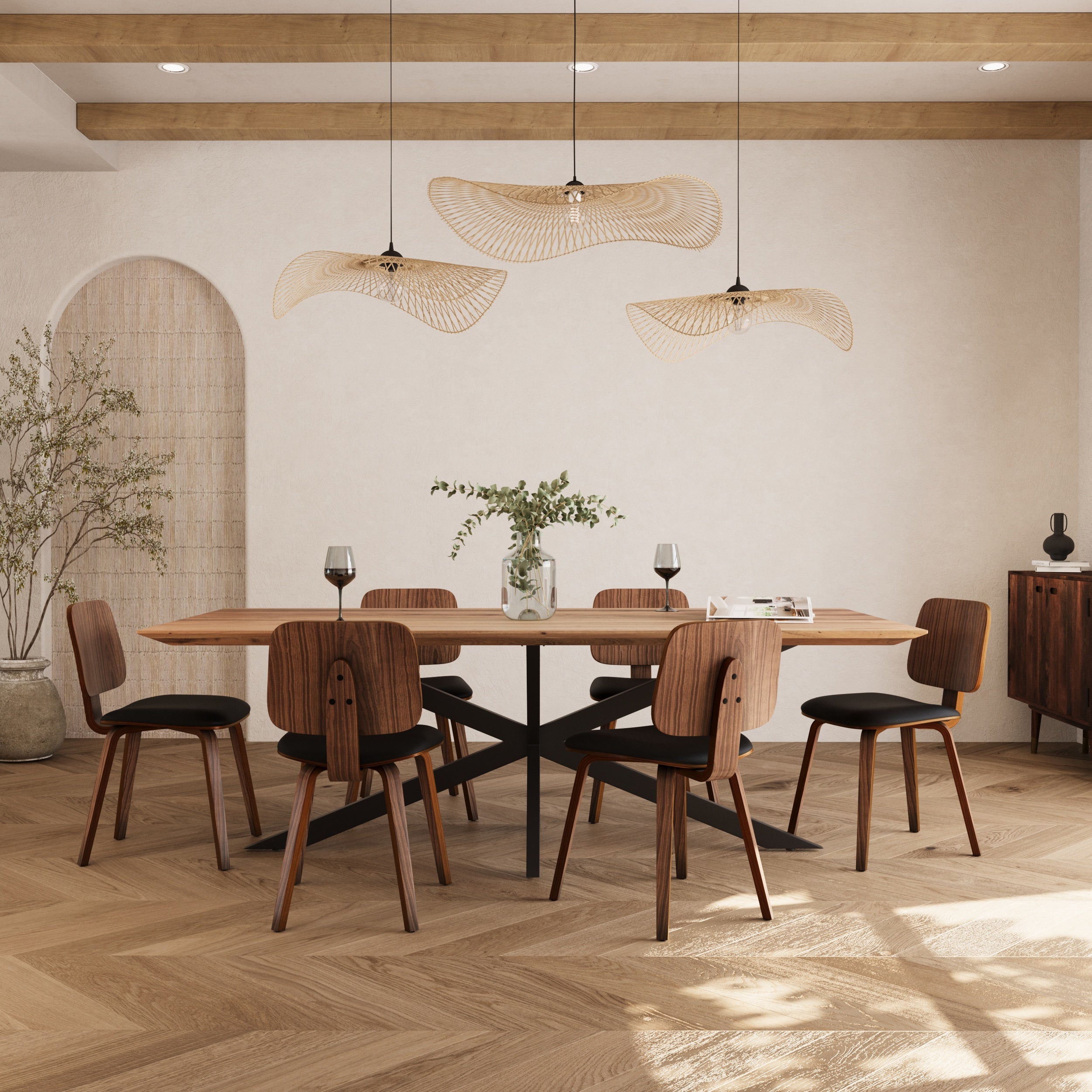Ces chaises, fabriquées avec soin en bois de noyer, allient légèreté et solidité. Le noyer, apprécié pour sa robustesse, assure une facilité de déplacement tout en préservant une stabilité exemplaire. La structure en bois plié multicouche garantit une durabilité qui défie le temps avec grâce.