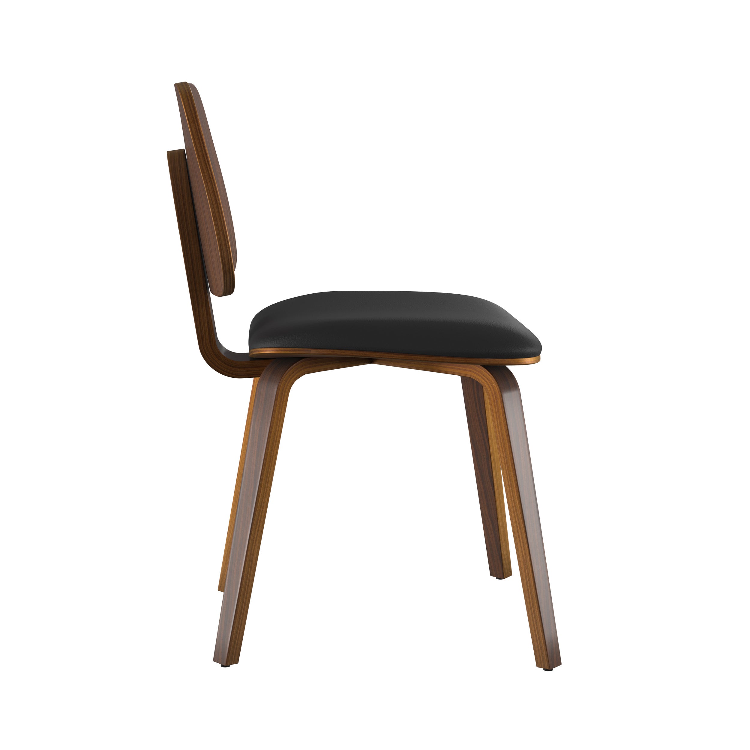 Lot de 2 chaises en bois plaqué noyer et PU noir-Flow