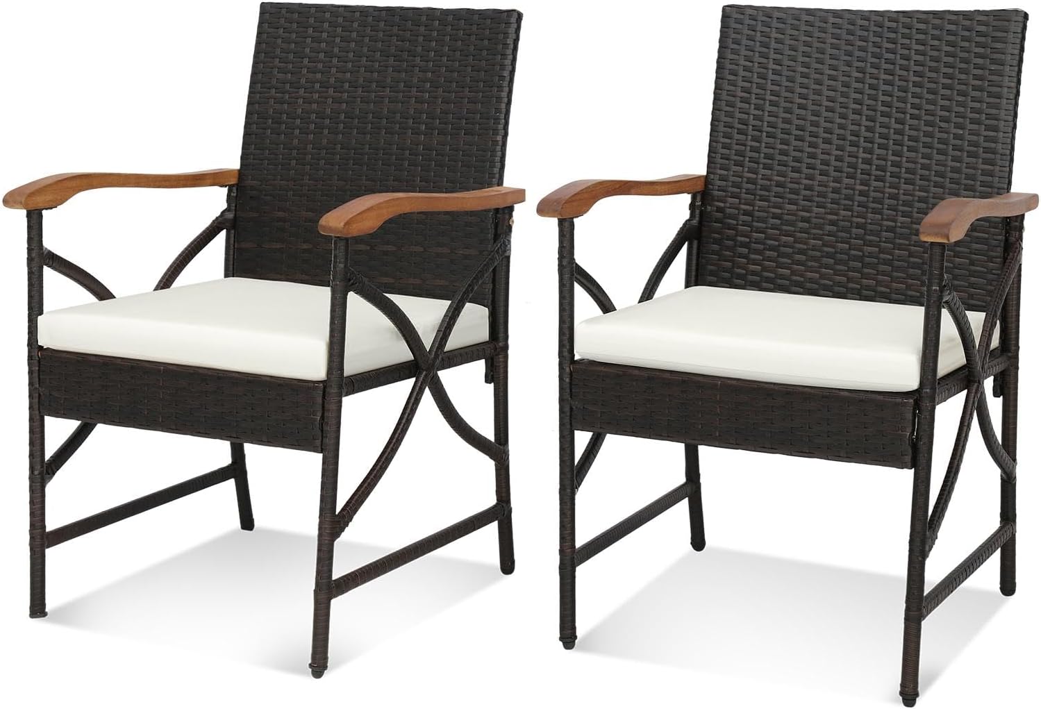 Lot de 2 chaises en rotin pe avec coussins confortables à fermeture éclair, fauteuils d’extérieur
