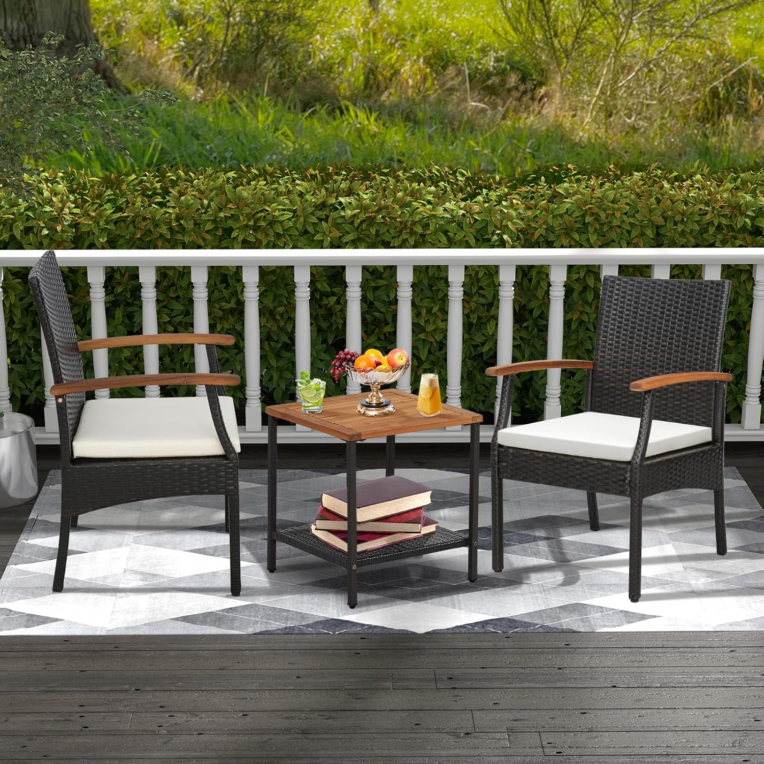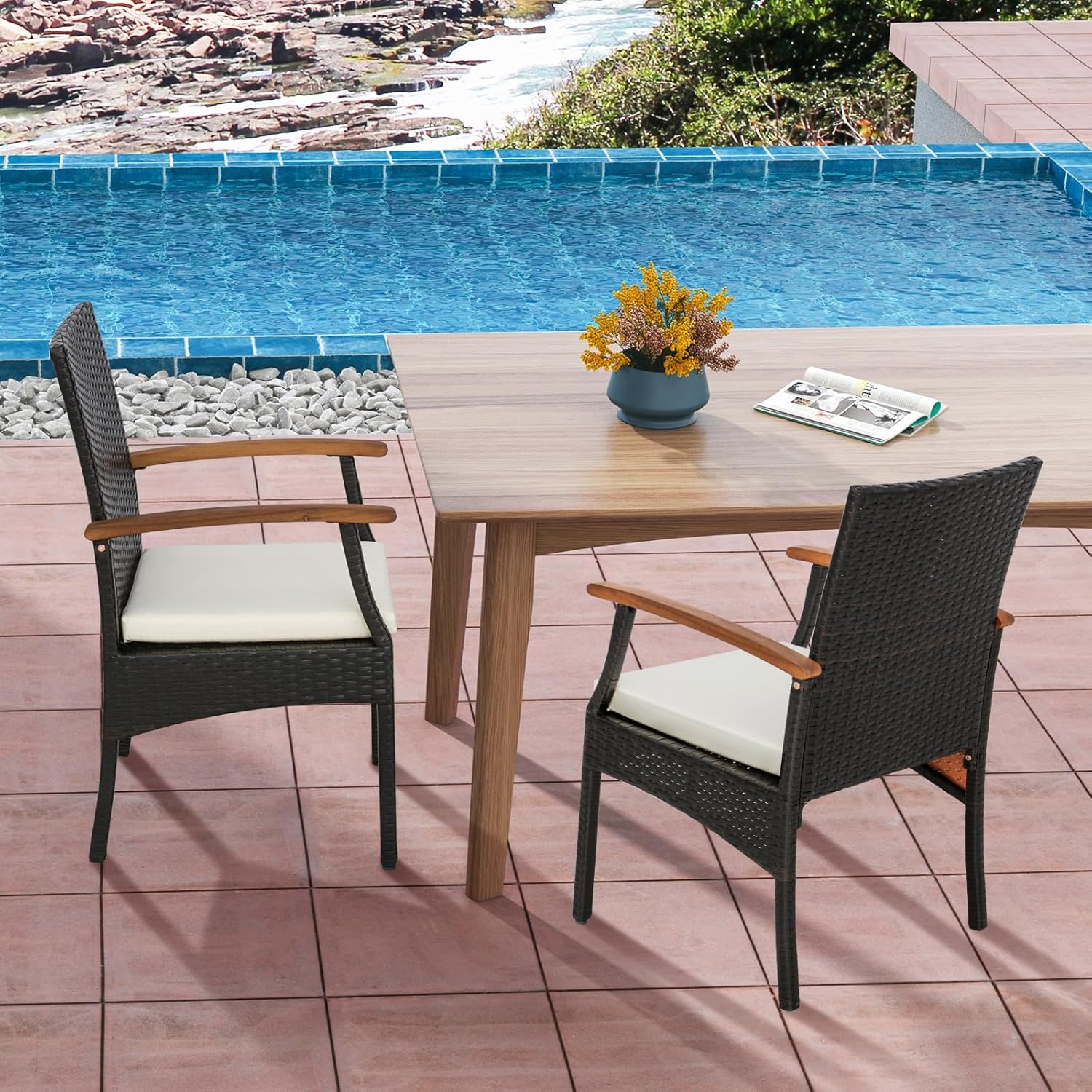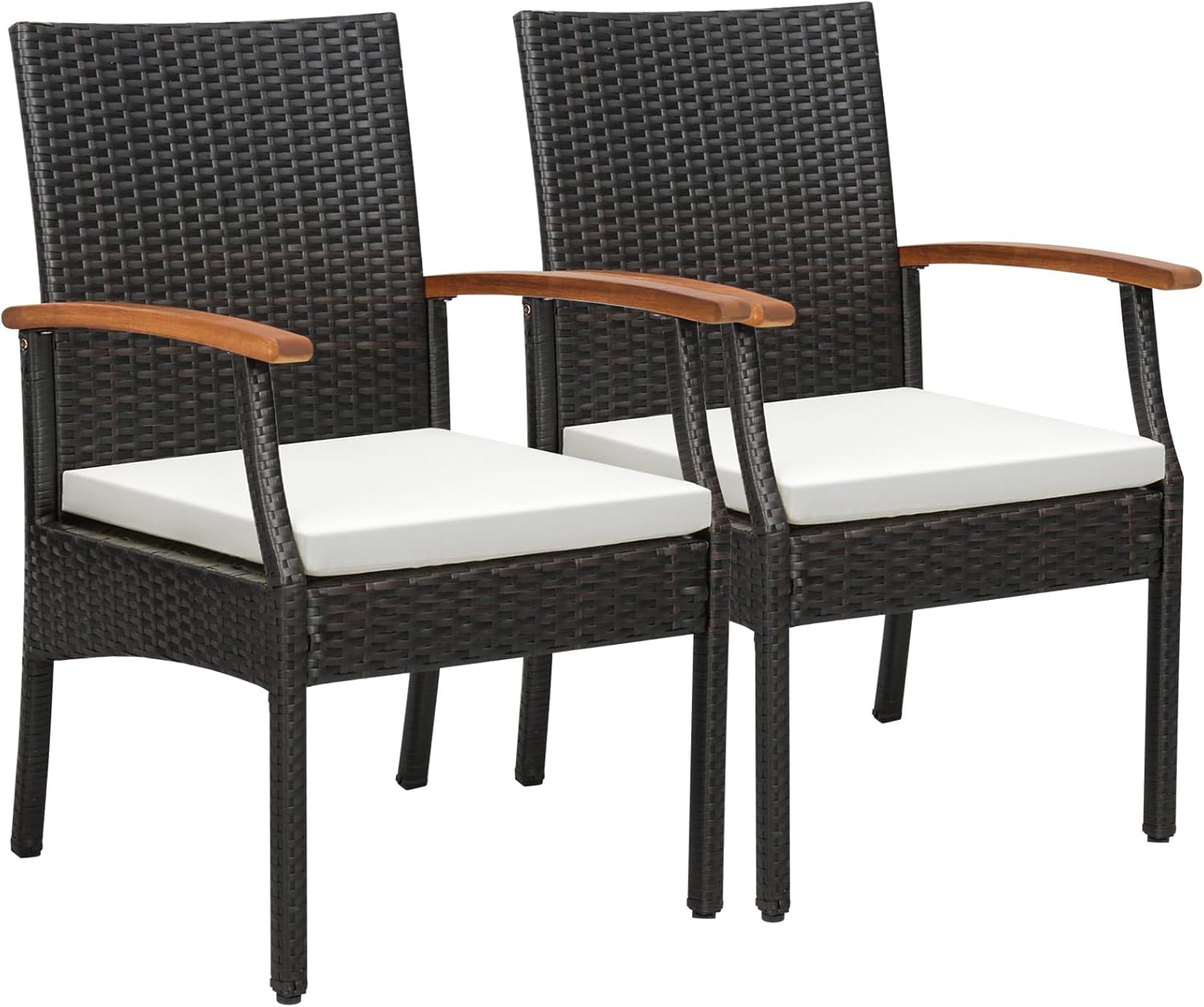 - Rotin PE Durable : Ce lot de 2 chaises est en rotin PE tissé à la main, connu pour sa résistance à la décoloration, à la moisissure, à la corrosion et aux températures élevées. De plus, le rotin PE étanche rend son nettoyage plus facile.