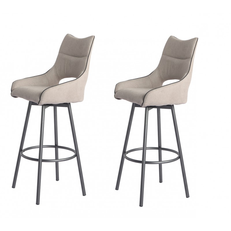 | Libellé | Lot de 2 chaises hautes de bar tissu beige et taupe - ROY |