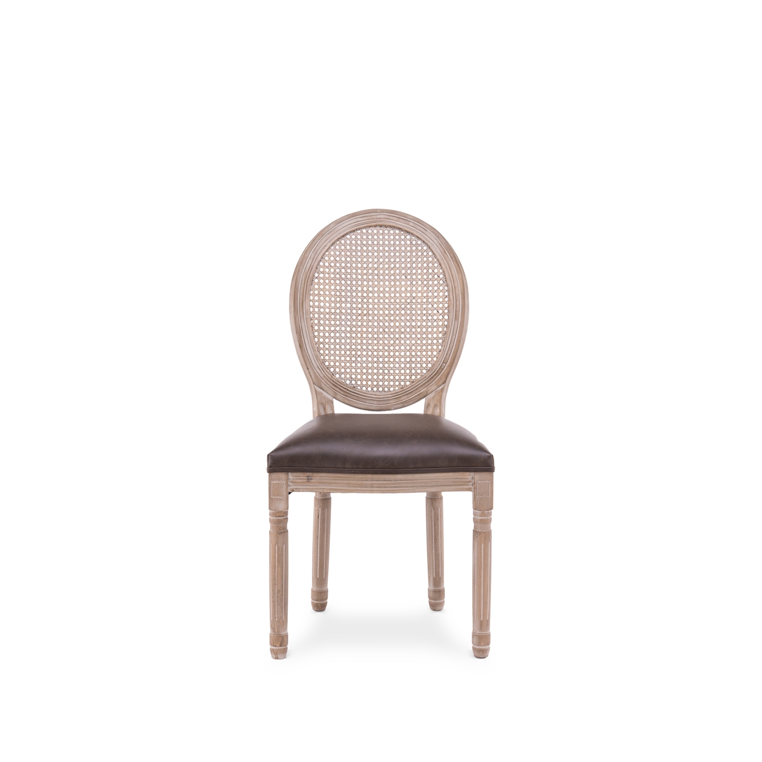 La chaise médaillon Louis XVI avec son cannage en rotin et son assise synthétique marron prendra place tout naturellement dans votre salle à manger ou encore devant votre coiffeuse. Avec son dossier ovale et son assise parfaitement rembourrée, vos convives pourront déguster leur repas en toute tranquillité. Grâce à son alliance de bois patiné et de tissu, votre table de salle à manger sera mise en valeur sans le moindre artifice.