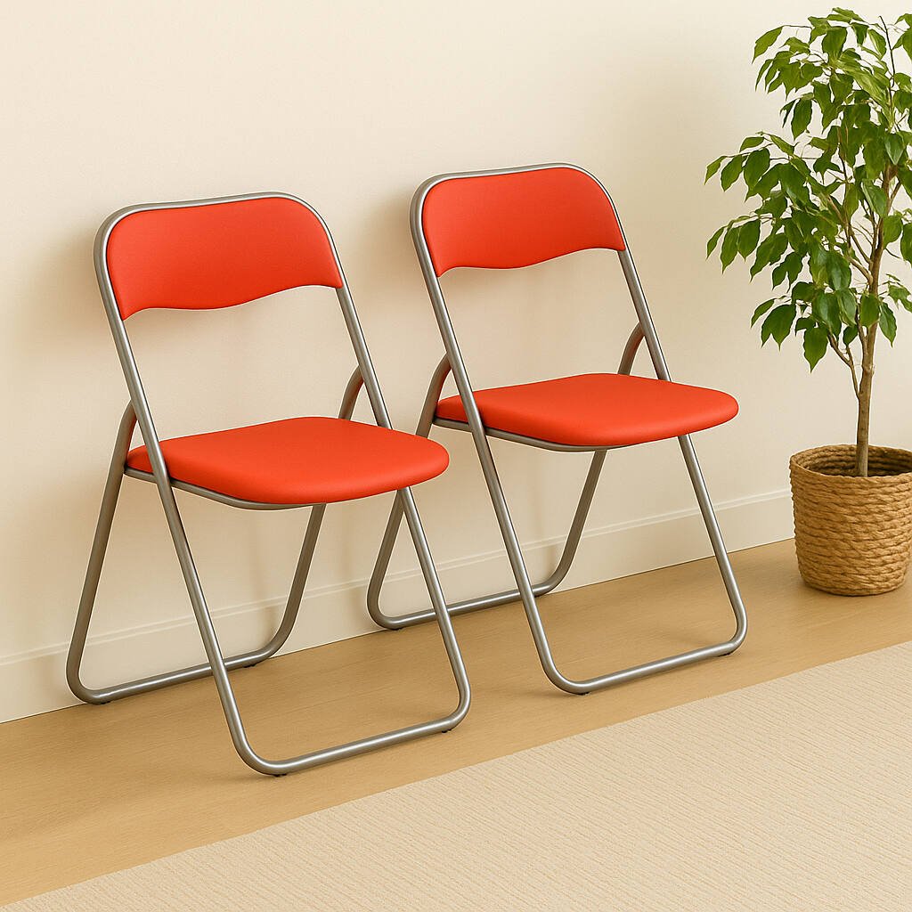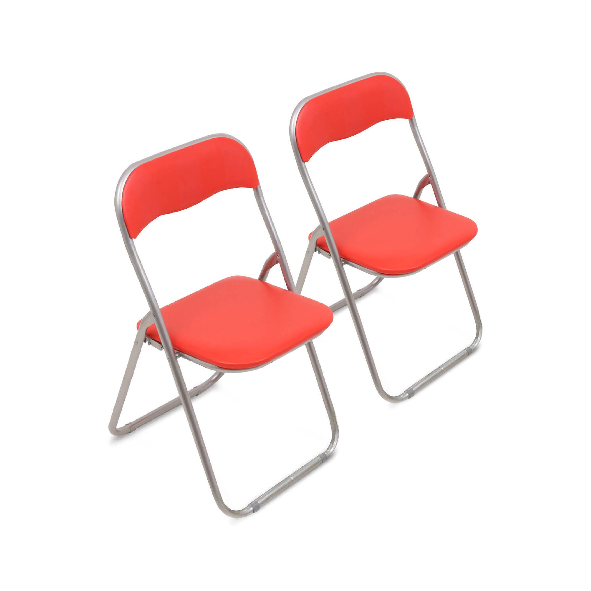 LOT DE 2 CHAISES PLIANTE - Fauteuil gain de place, Chaise invité, Siège de réunion en PU, 43x47h80 cm, Rouge. STRUCTURE ET UTILISATION - Paire de deux chaises avec structure en métal résistant, avec assise et dossiers rembourrés en mousse de polyuréthane enduite PVC - Produit idéal pour une utilisation au bureau lors de réunions, conférences ou réunions d'affaires, ou à la maison pour des invités, amis ou parents en plus de vos sièges dans la salle à manger ou la cuisine - Facilement pliable, idéal pour ranger dans de petits espaces, comme derrière une porte, un placard - Les lignes simples et modernes de ces chaises permettent de les placer dans tout type d'environnement. PRATIQUE ET INNOVANT - Meuble pratique et moderne, parfait pour être placé dans un environnement ou un appartement avec des besoins d'espace - Produit polyvalent, idéal pour tout type de bureau ou salle d'attente. CARACTÉRISTIQUES TECHNIQUES - Entièrement réalisé en polyuréthane expansé sur une structure métallique, il permet de s'asseoir en toute sécurité - L'article est facile à nettoyer grâce au matériau qui le compose - Livré déjà monté. DIMENSIONS EN CM - Chaise pliante: Longueur: 43 Largeur: 47 Hauteur: 79,5 - Hauteur d'assise: 43