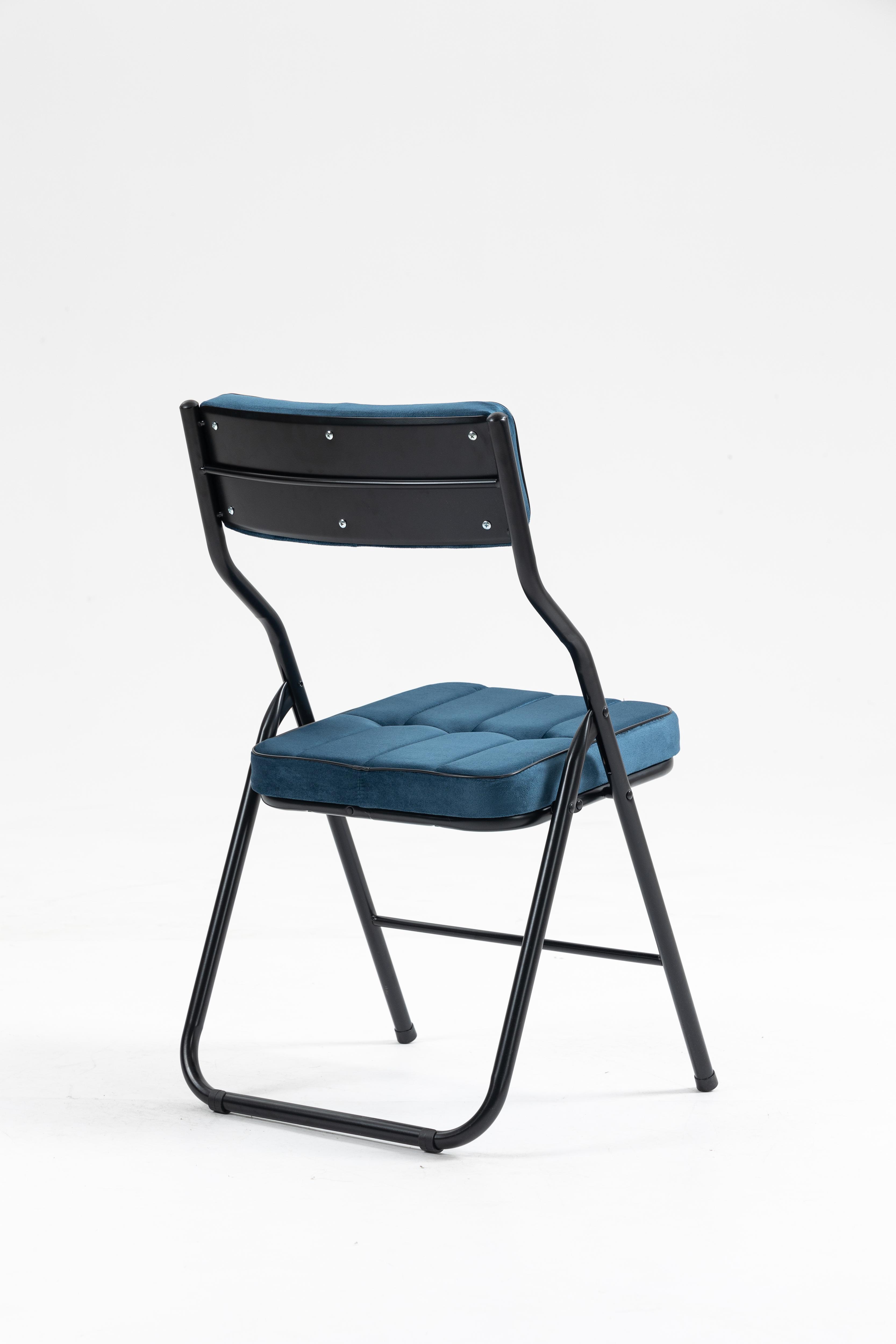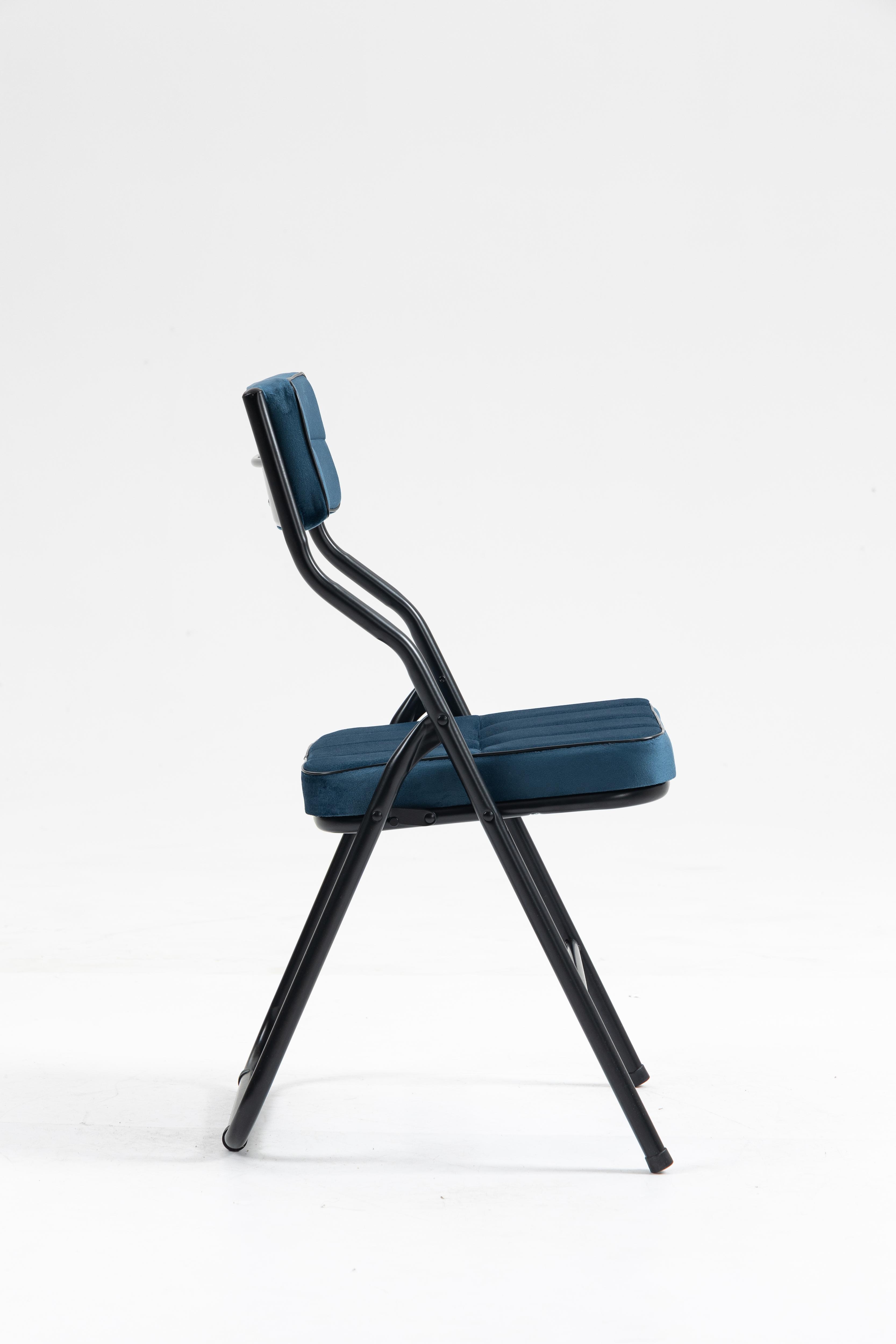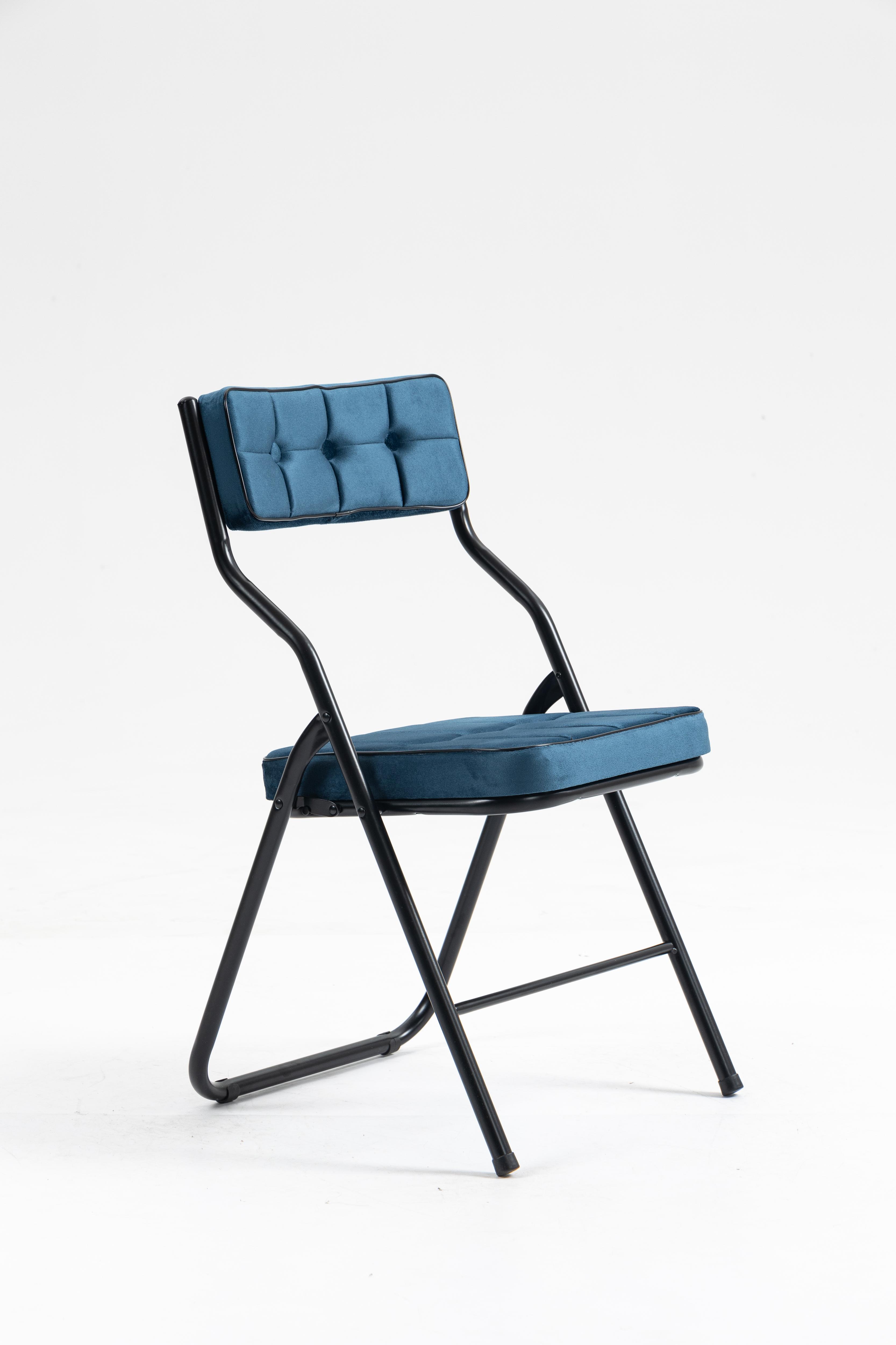 Lot de 2 chaises pliantes en métal, velours bleu, pour salon et salle à manger