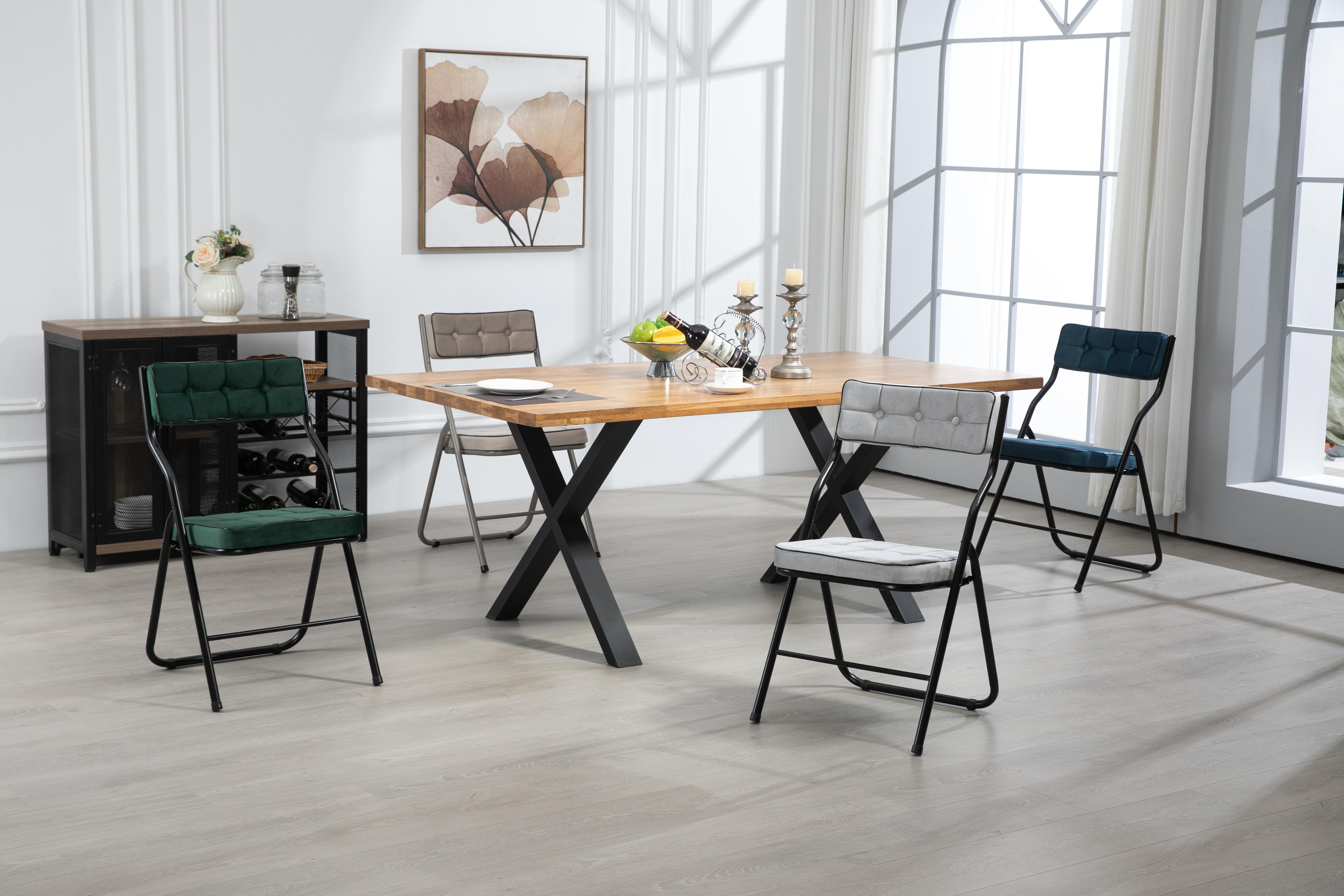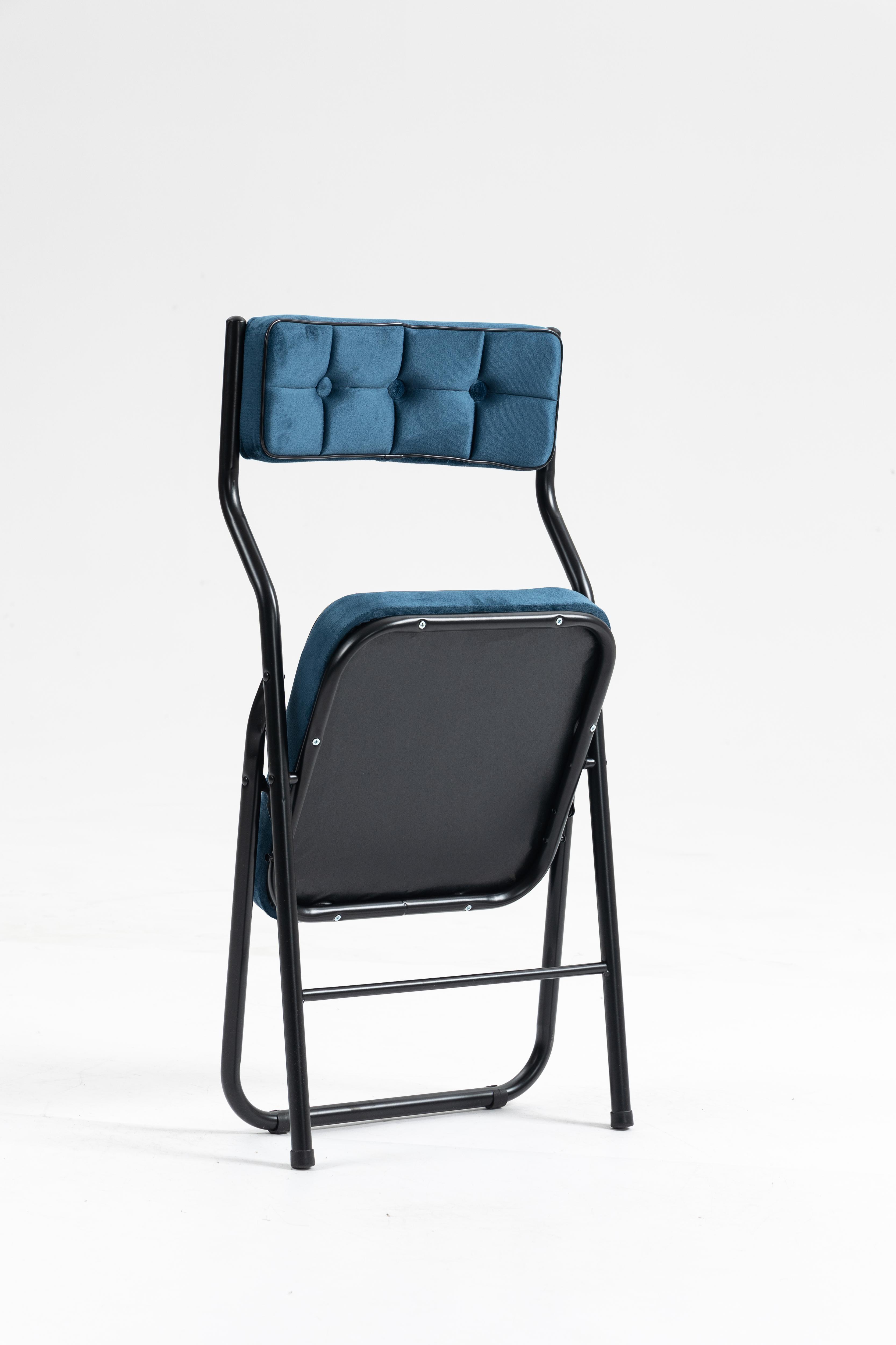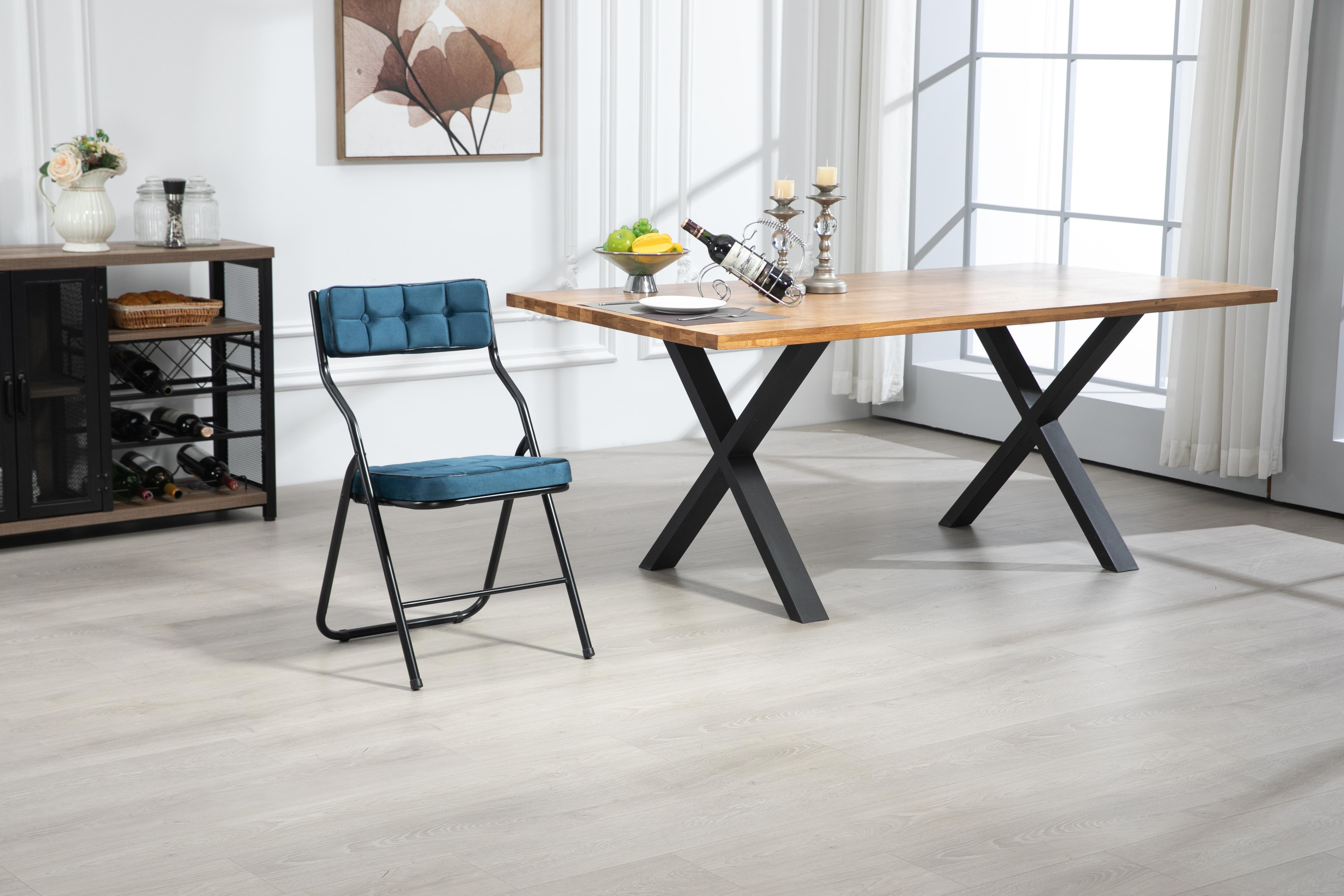 Lot de 2 chaises pliantes en métal, velours bleu, pour salon et salle à manger