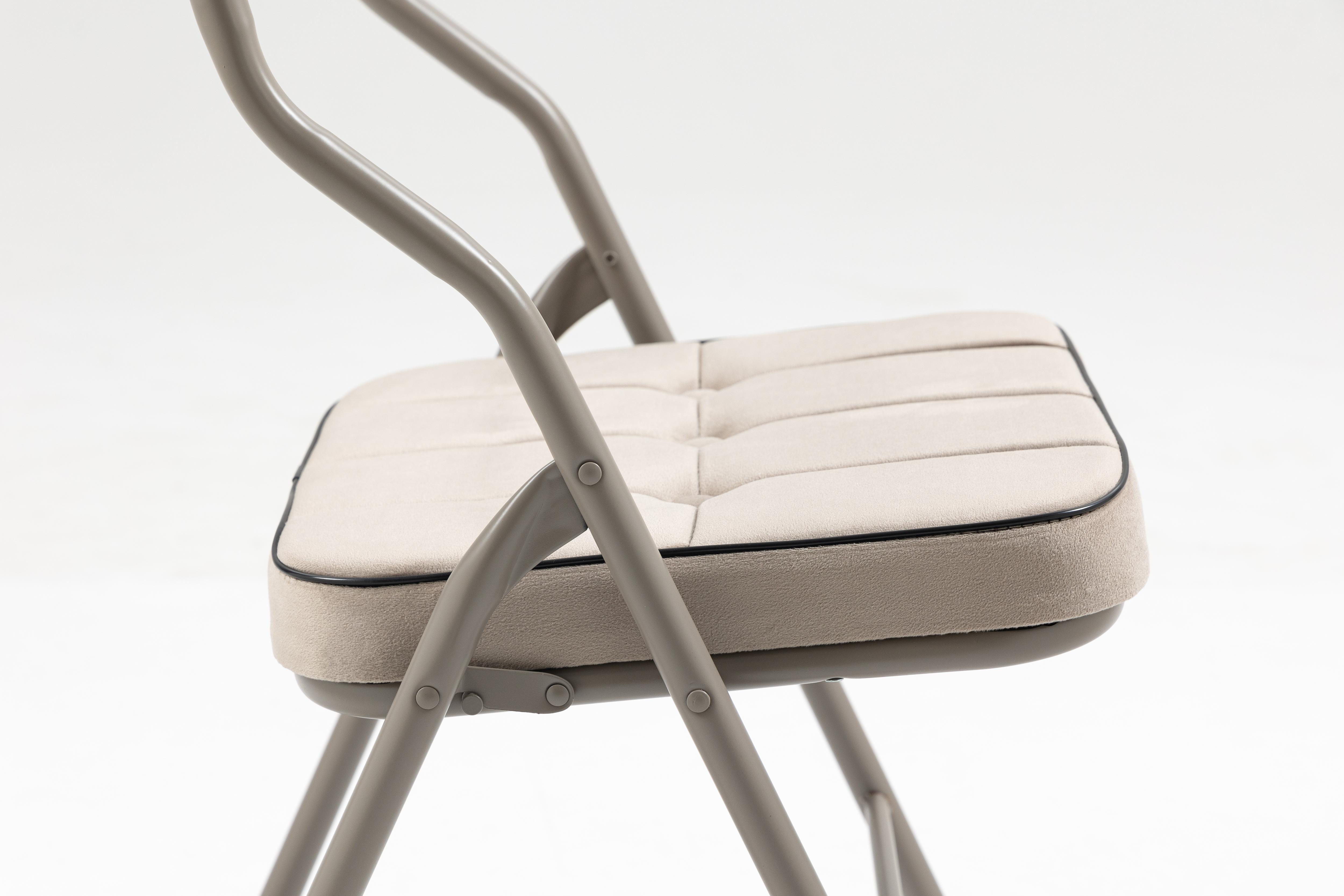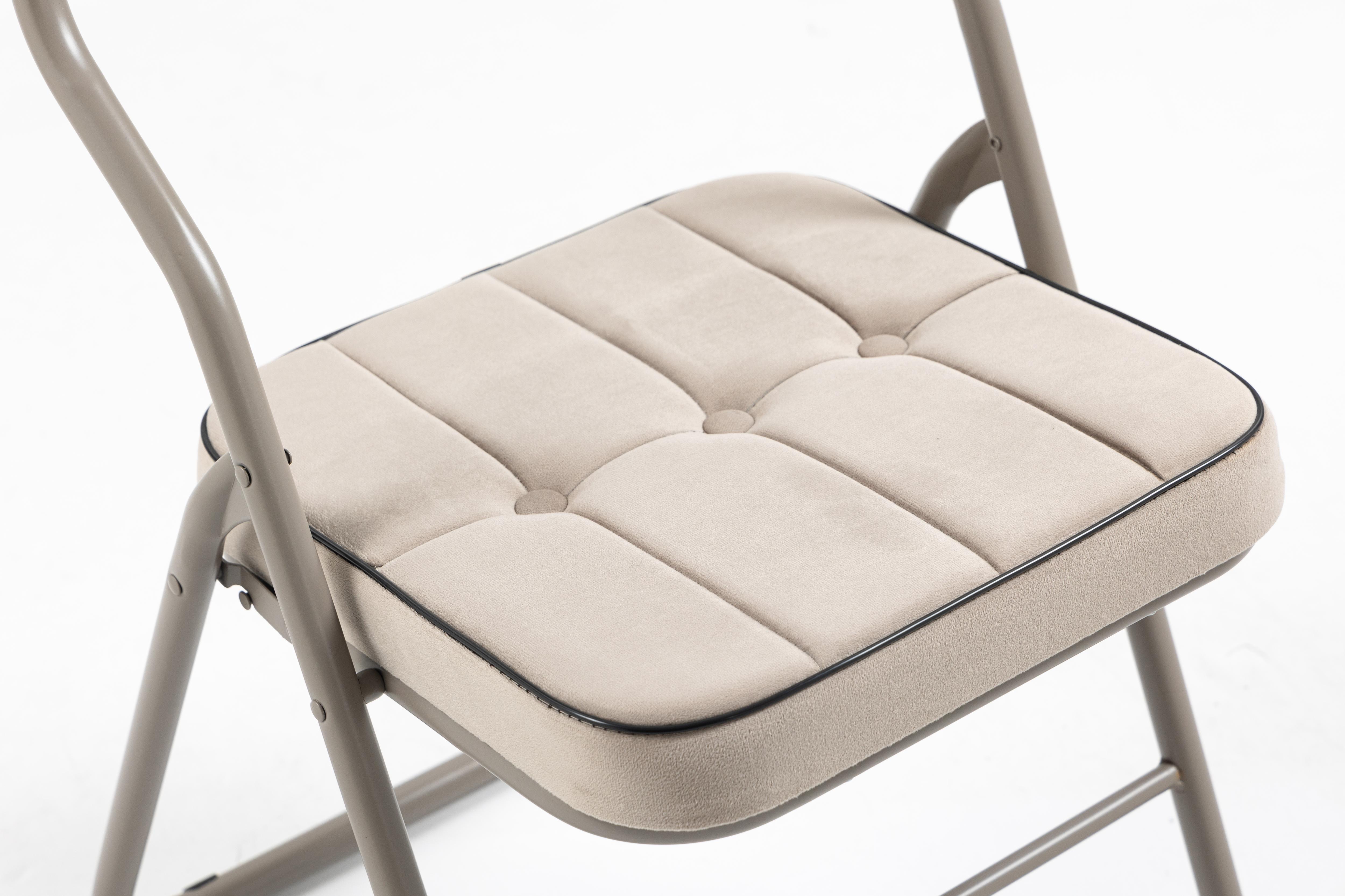 Lot de 2 chaises pliantes avec assise et dossier rembourrés, conçues pour offrir un confort au quotidien. Le coussin et le dossier rembourrés aident à soulager la pression sur les hanches et le dos. Le revêtement en velours est doux, agréable au toucher et respirant.