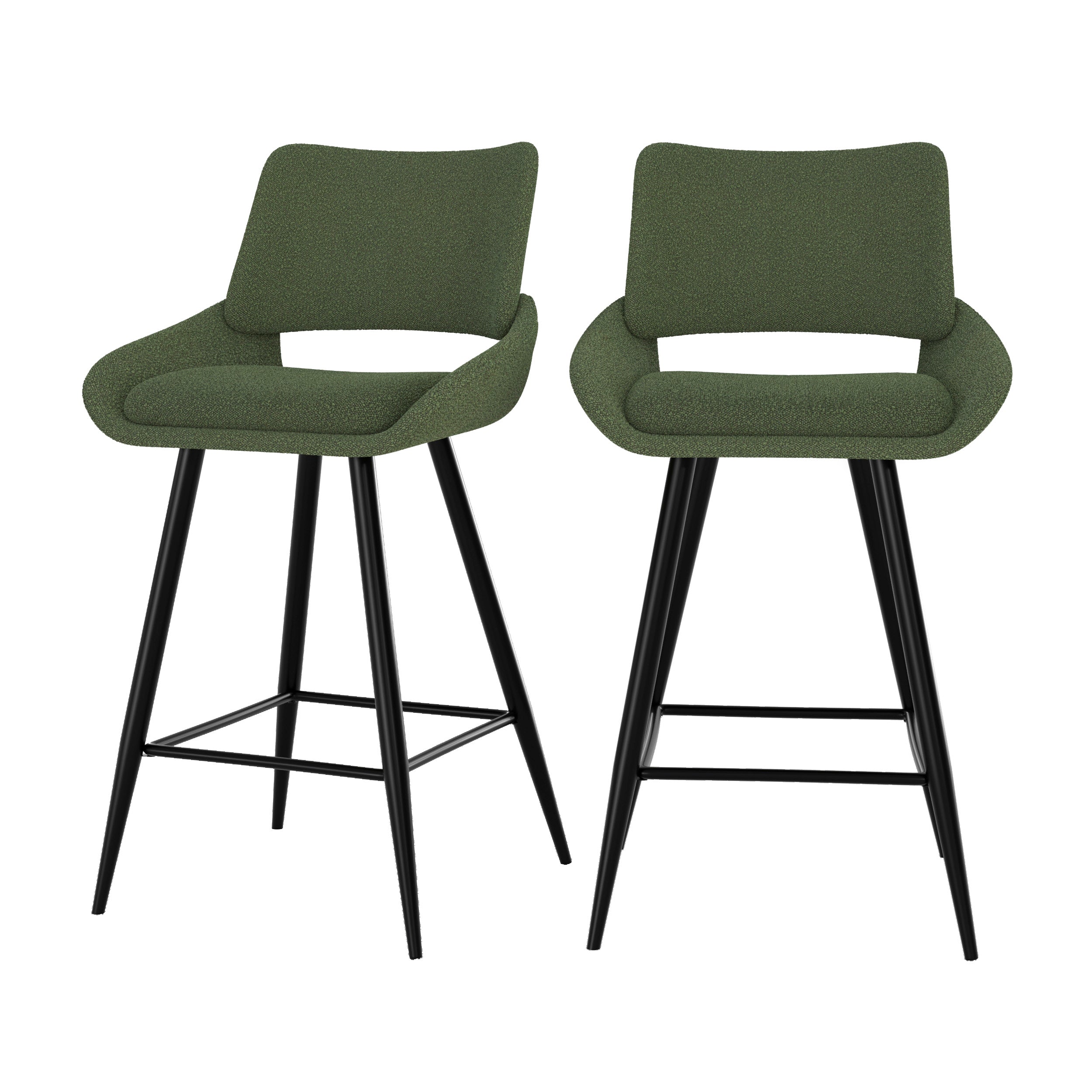 Chaise pour îlot central Alfy en tissu bouclé vert 66 cm (lot de 2) -