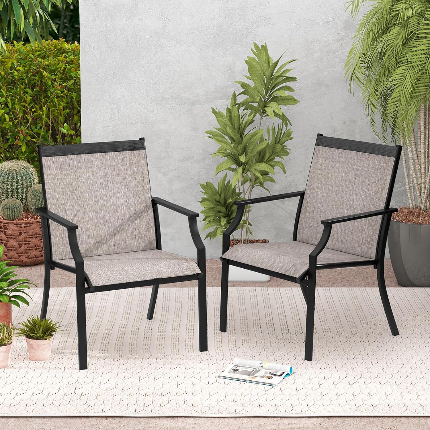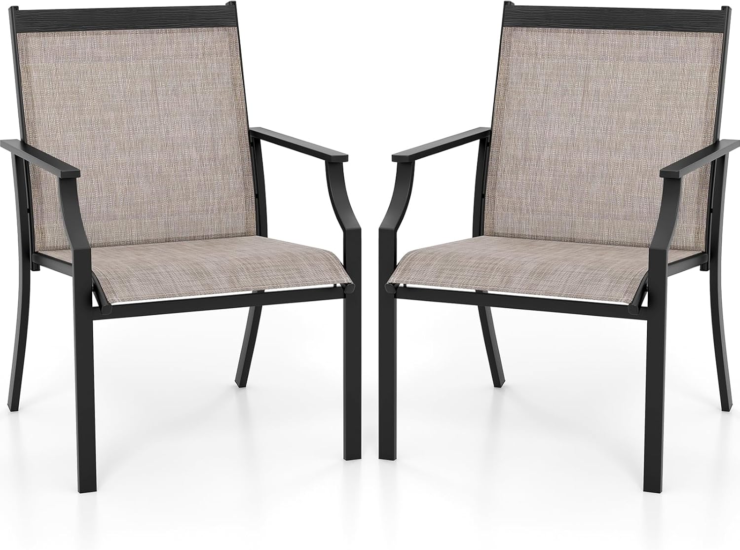 Transformez votre jardin en un espace extérieur confortable avec cet ensemble de 2 chaises de salle à manger toutes saisons. Fabriquées en tissu anti-usure avec une structure en métal robuste, elles vous serviront longtemps. Le tissu respirant et à séchage rapide vous évite d'avoir chaud l’été. Le siège large, le dossier haut ergonomique et les accoudoirs vous offrent un excellent soutien, vous permettant de vous asseoir confortablement. Chaque chaise assure une capacité de charge de 150 kg et vous pouvez simplement les placer dans n'importe quel environnement intérieur ou extérieur !
