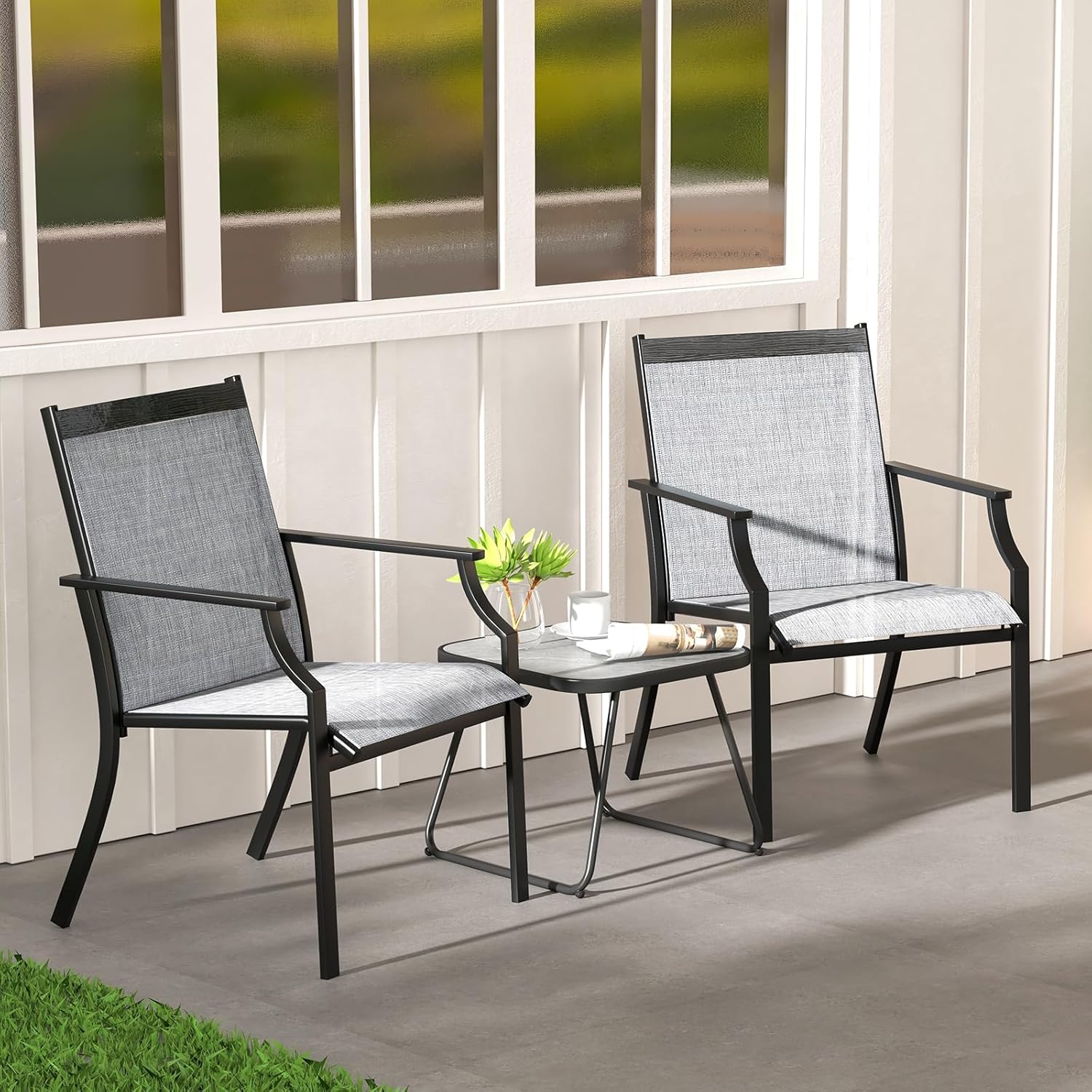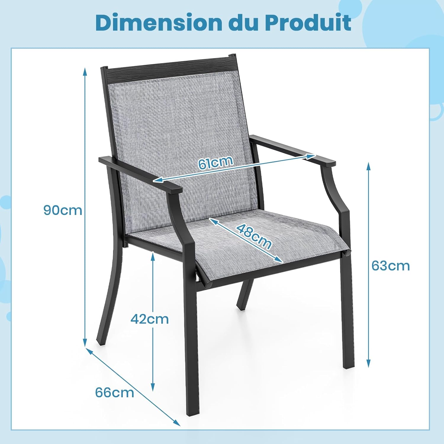 Transformez votre jardin en un espace extérieur confortable avec cet ensemble de 2 chaises de salle à manger toutes saisons. Fabriquées en tissu anti-usure avec une structure en métal robuste, elles vous serviront longtemps. Le tissu respirant et à séchage rapide vous évite d'avoir chaud l’été. Le siège large, le dossier haut ergonomique et les accoudoirs vous offrent un excellent soutien, vous permettant de vous asseoir confortablement. Chaque chaise assure une capacité de charge de 150 kg et vous pouvez simplement les placer dans n'importe quel environnement intérieur ou extérieur !