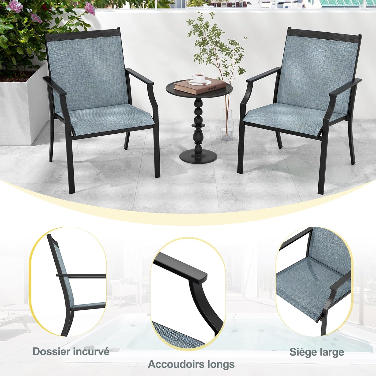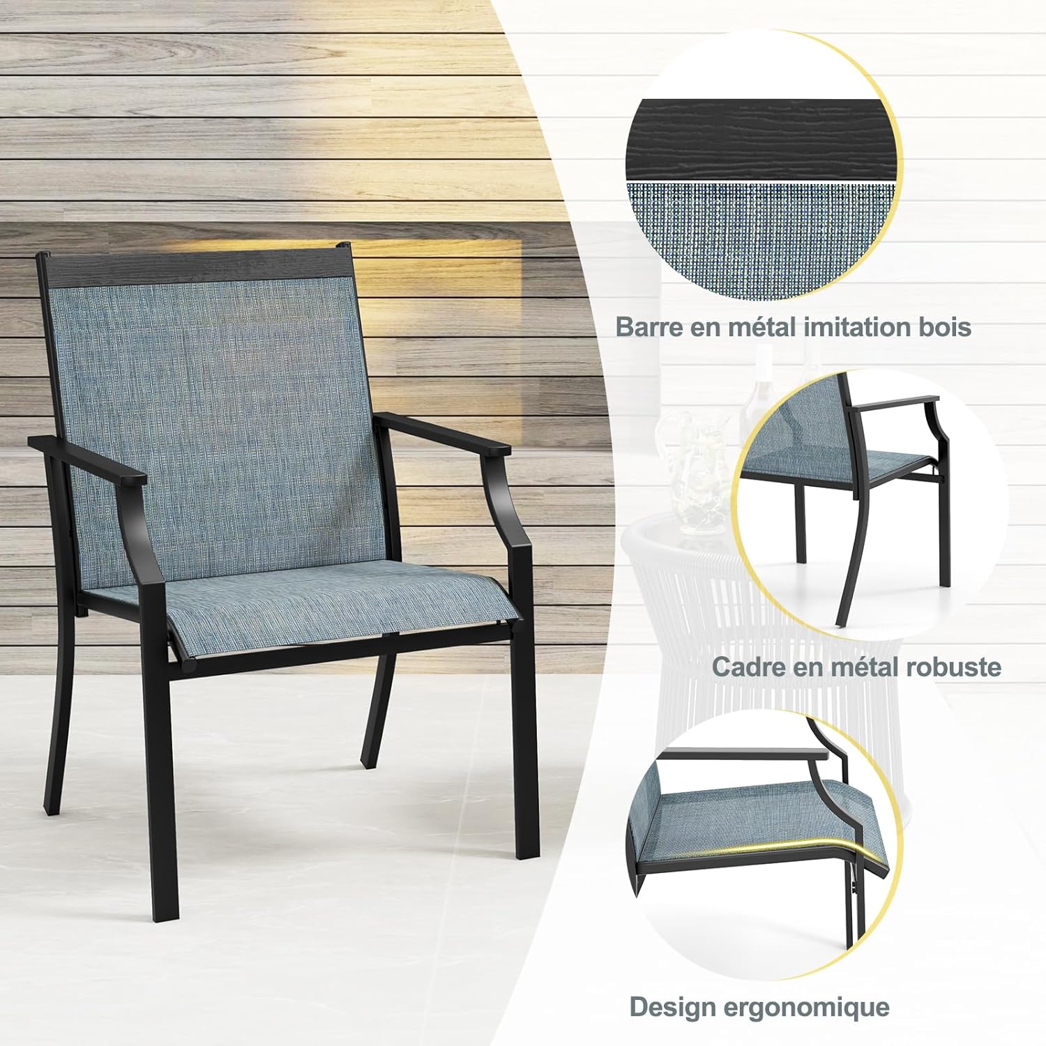| Libellé | Lot de 2 chaises terrasse, chaises de jardins extérieur, fauteuils avec accoudoirs, siège large (bleu) |