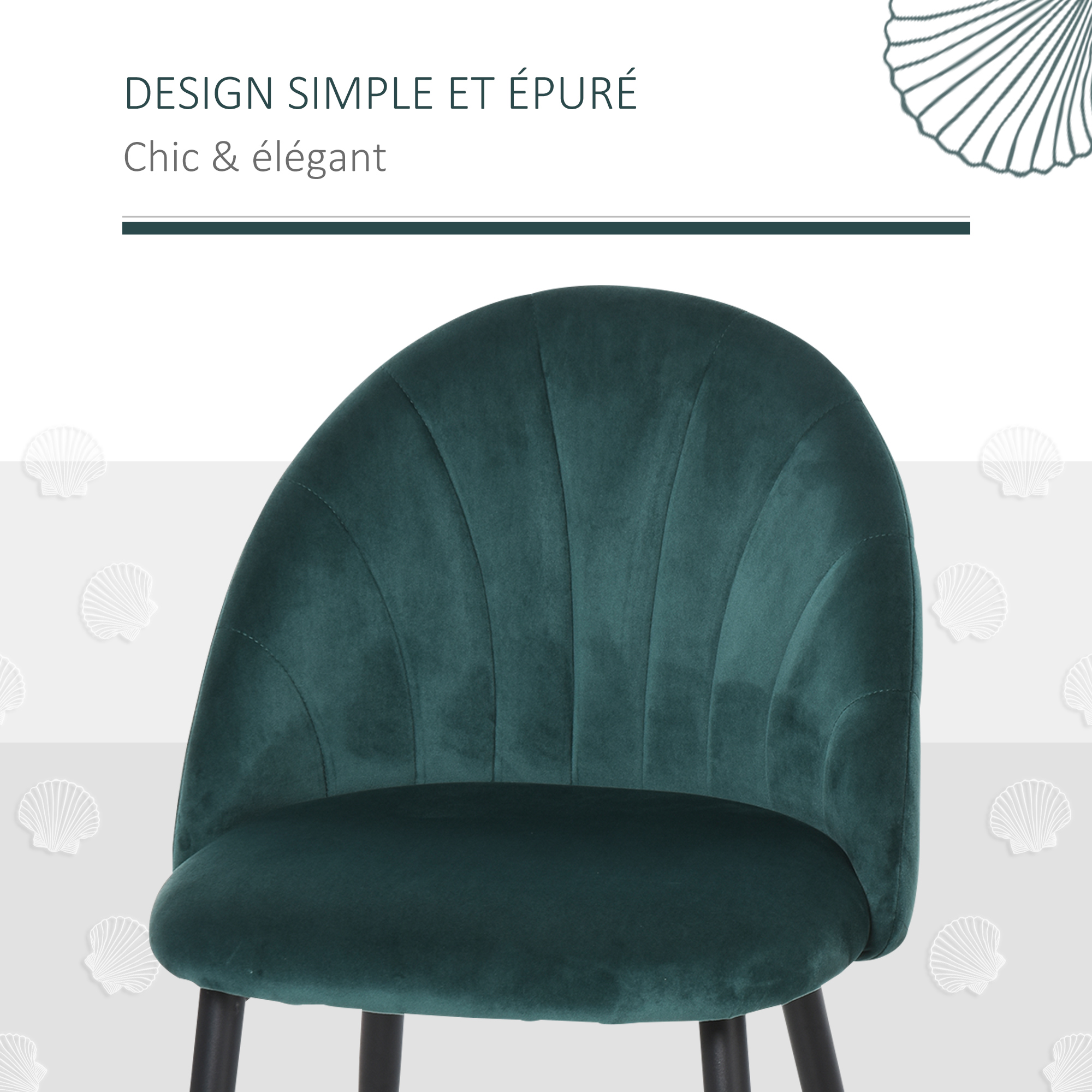 Lot de 2 chaises velours vert pieds métal noir dim. 52L x 54l x 79H cm