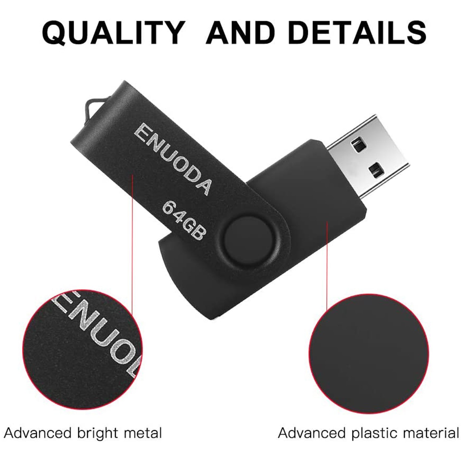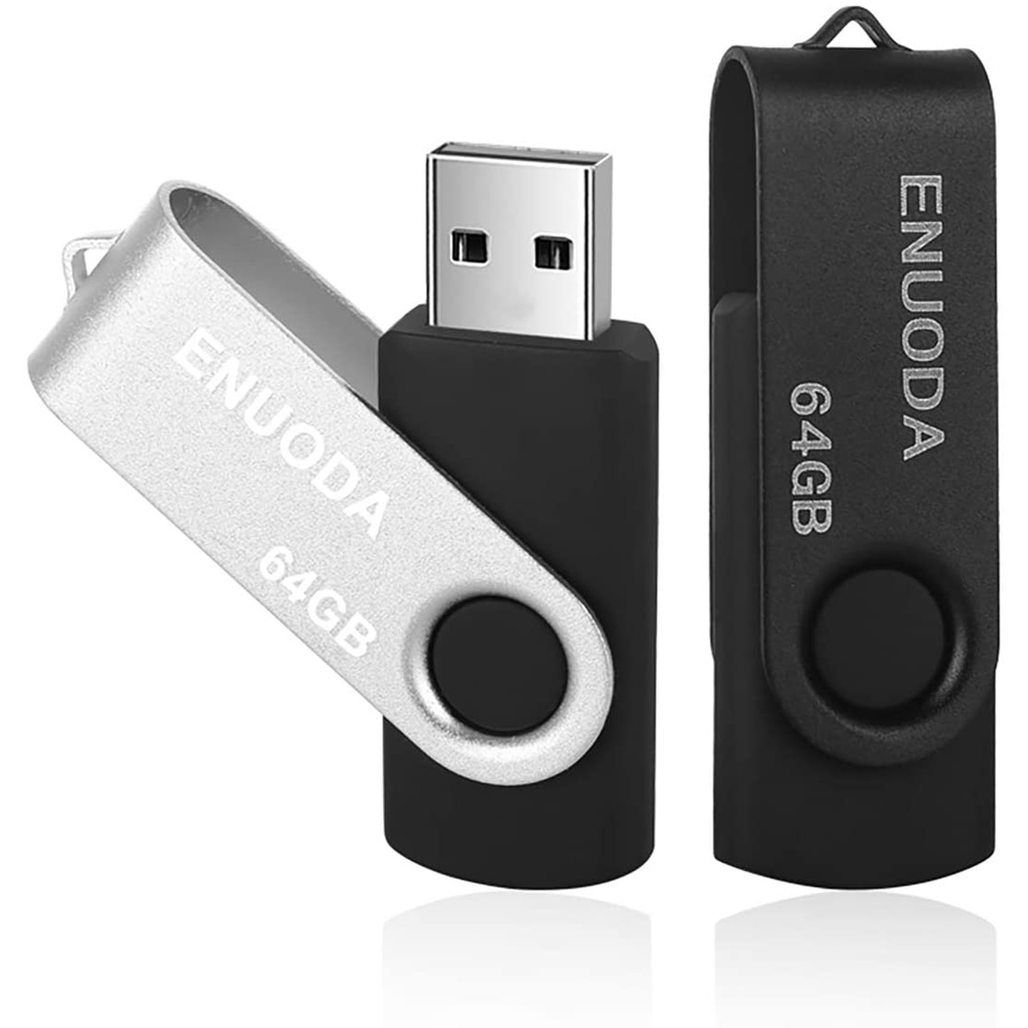 Lot de 2 Clé USB 64 Go ENUODA USB 2.0 Coloris noir & gris