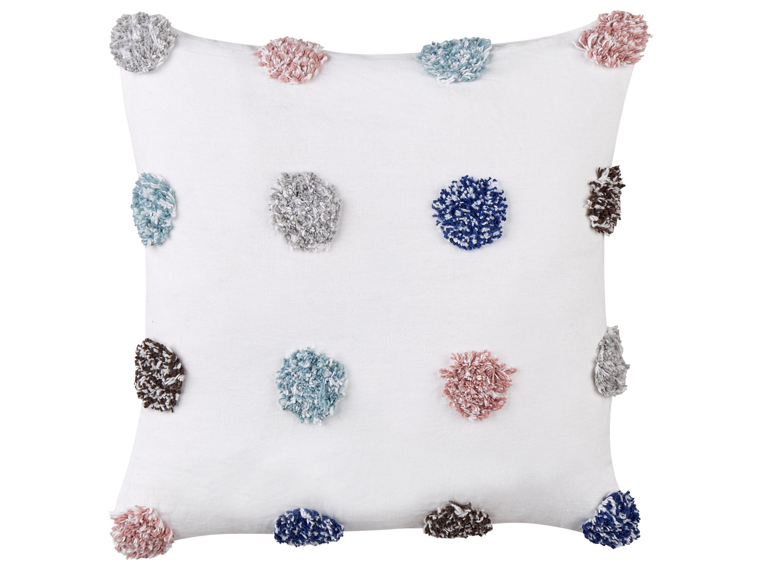 Coussins décoratifs modernes. Cet ensemble de coussins décoratifs donnera un coup de neuf à votre espace quotidien ou à la chambre de vos enfants. Fabriqués à la main en coton blanc, avec des pompons multicolores, ces coussins attirent l'attention dans n'importe quelle pièce. Grâce au matériau utilisé, ils sont très résistants et agréables au toucher, tout en étant faciles à nettoyer grâce aux housses amovibles.