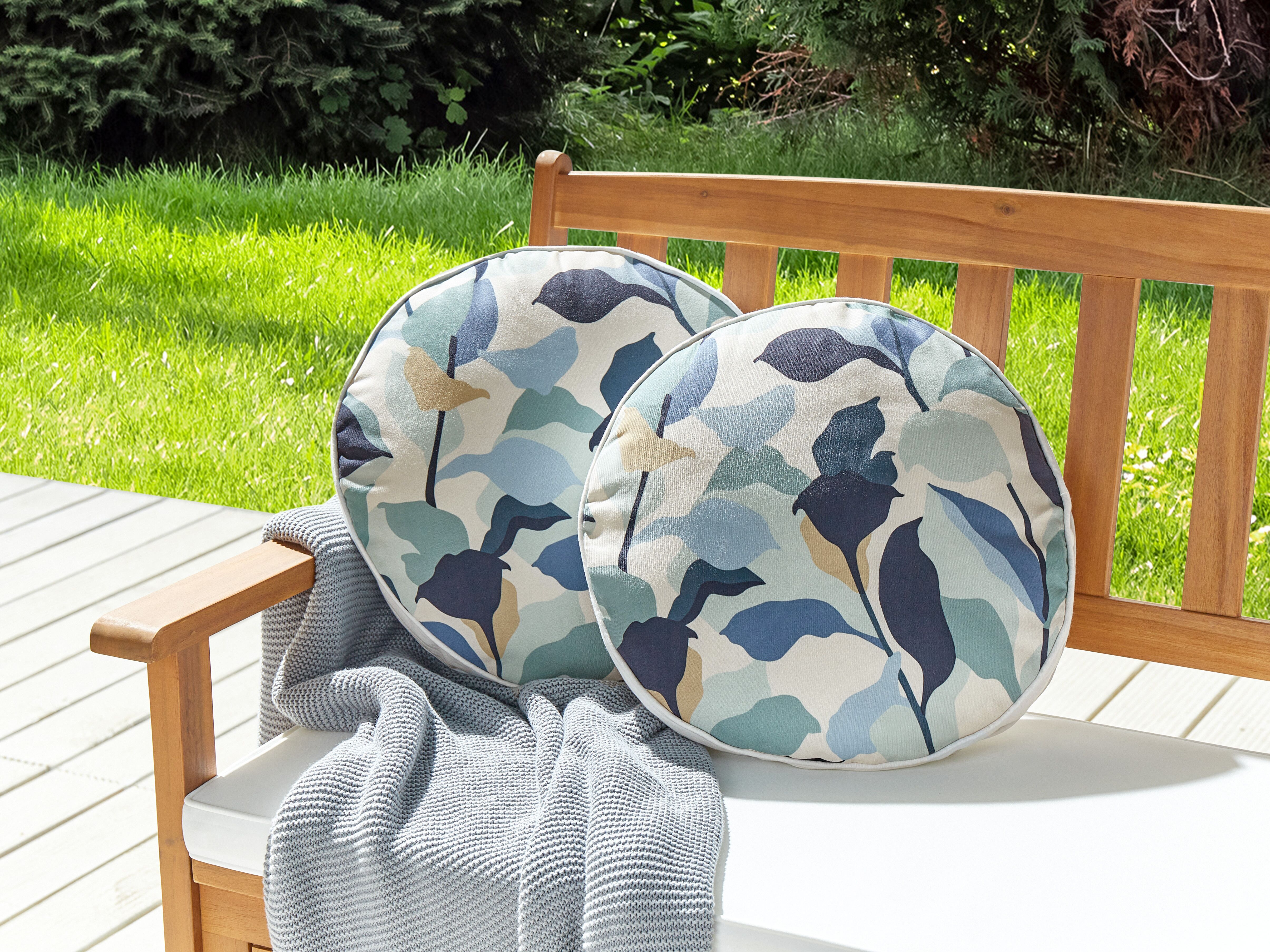 Set de 2 coussins d'extérieur. Transformez votre espace extérieur avec cet ensemble de deux coussins d'extérieur au motif de feuilles envoûtant. Ils ajouteront une touche naturelle et élégante à votre mobilier de jardin. Leurs housses amovibles sont pratiques et permettent de relooker facilement la déco de votre jardin, terrasse ou patio.