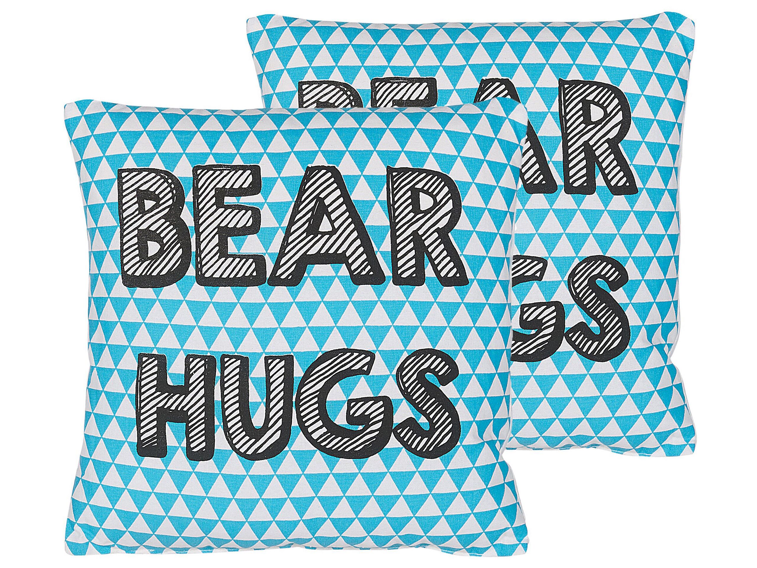Lot de 2 coussins décoratifs bleus avec texte 40 x 40 cm RADZKOT