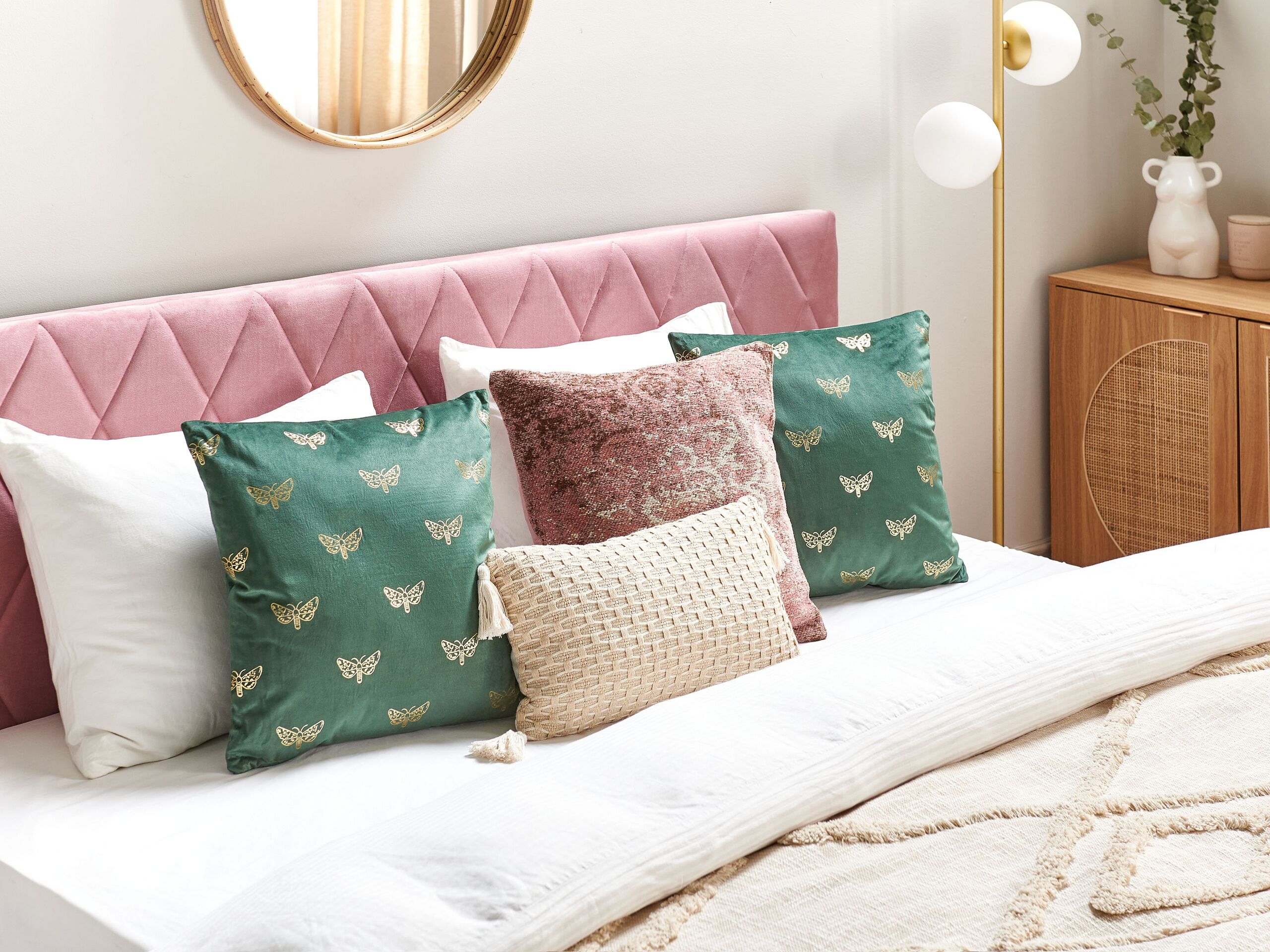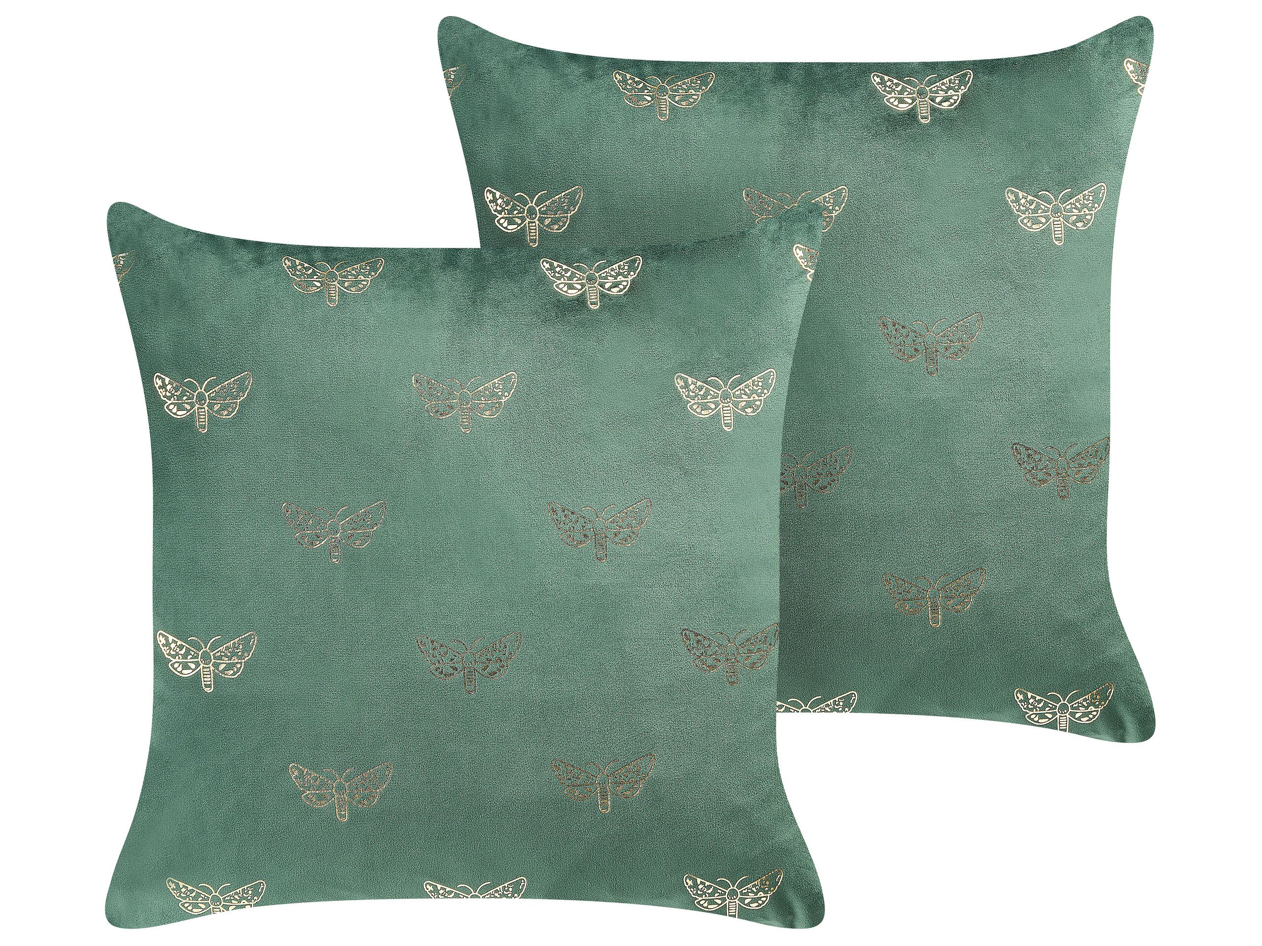 Coussins à motif de papillons. Ce lot de deux coussins confère à votre intérieur un aspect élégant et confortable. Fabriquée en velours et agrémentée d'un imprimé en feuille d'aluminium, chaque housse est dotée d'un rembourrage moelleux et d'une fermeture à glissière. Grâce au magnifique motif papillon, le set de coussins ajoutera du charme à tout intérieur moderne ou traditionnel.