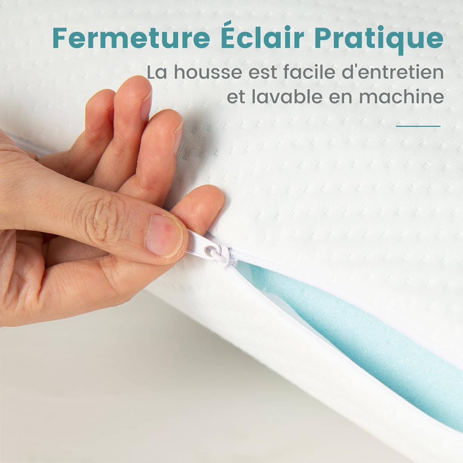 Coussin avec design ergonomique pour différentes positions de sommeil.