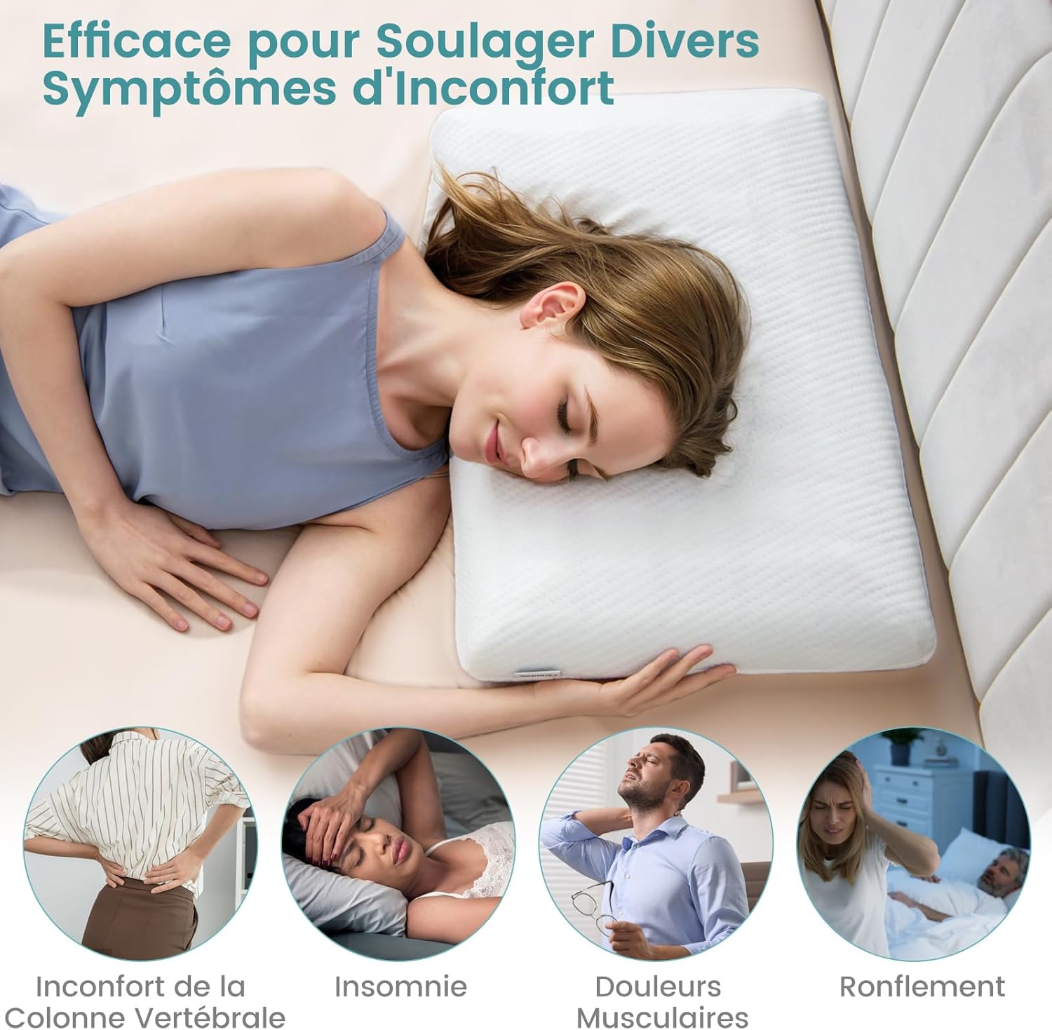 Notre coussin peut soulager les désagréments spinaux, les douleurs musculaires, les ronflements et l'insomnie