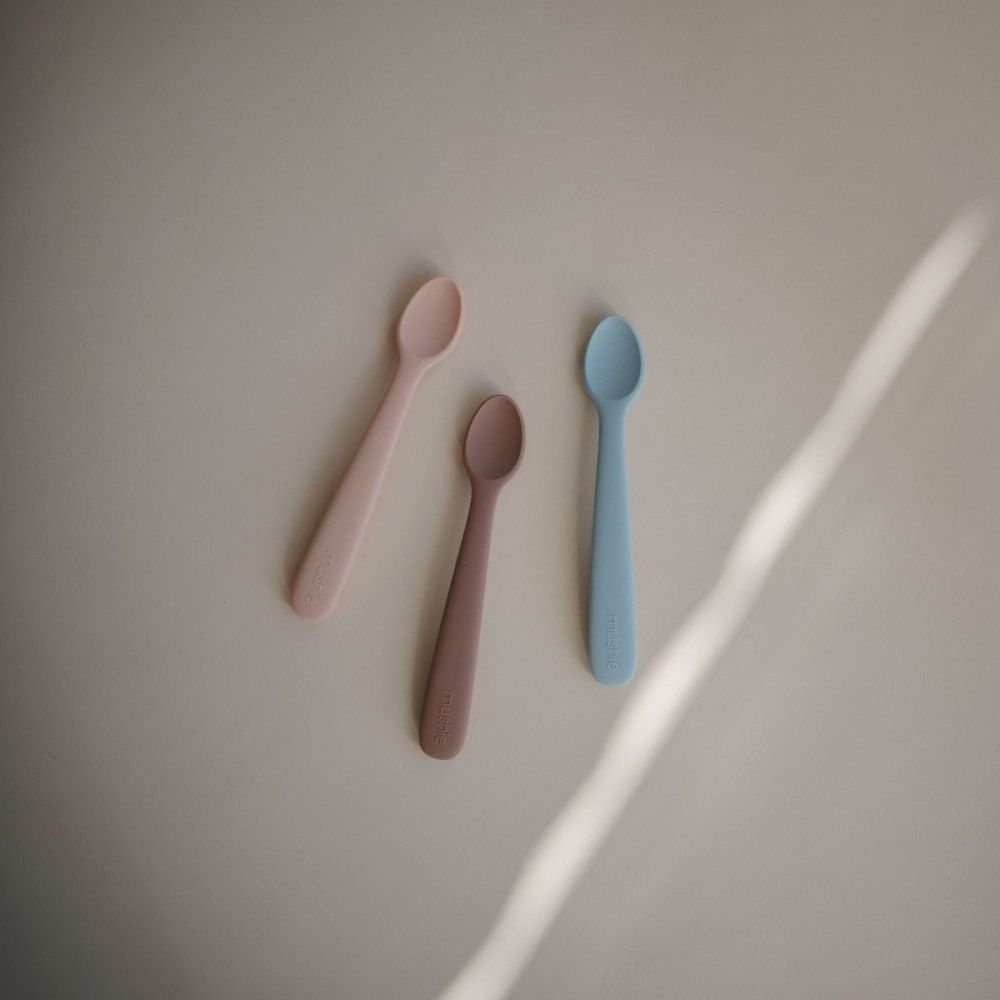 Lot de 2 cuillères bébé silicone Mauve / Gris