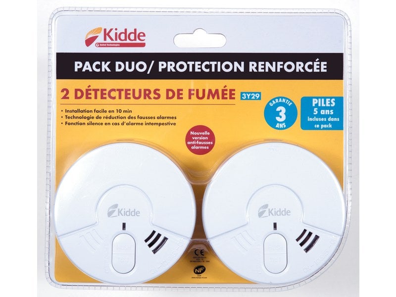 | Libellé | Lot de 2 détecteurs de fumée 3Y29 pile A - Kidde |