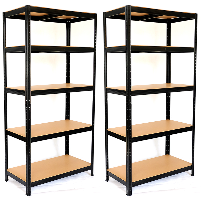 Lot de 2 étagères de rayonnage modulables en métal noir, 5 étages, 175kg/par étagère