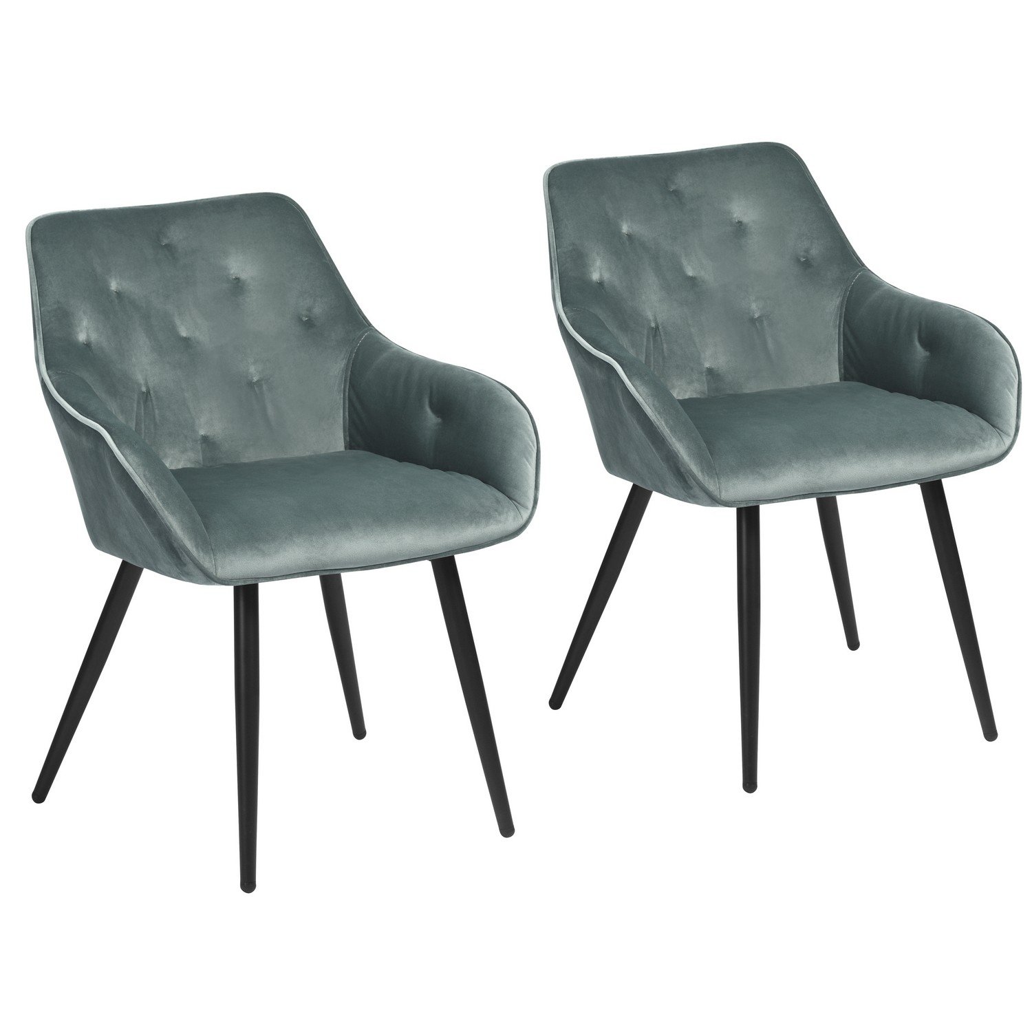 Lot de 2 Fauteuils Chaises avec accoudoirs - Style scandinave -Velours vert et Pieds Métal Noir