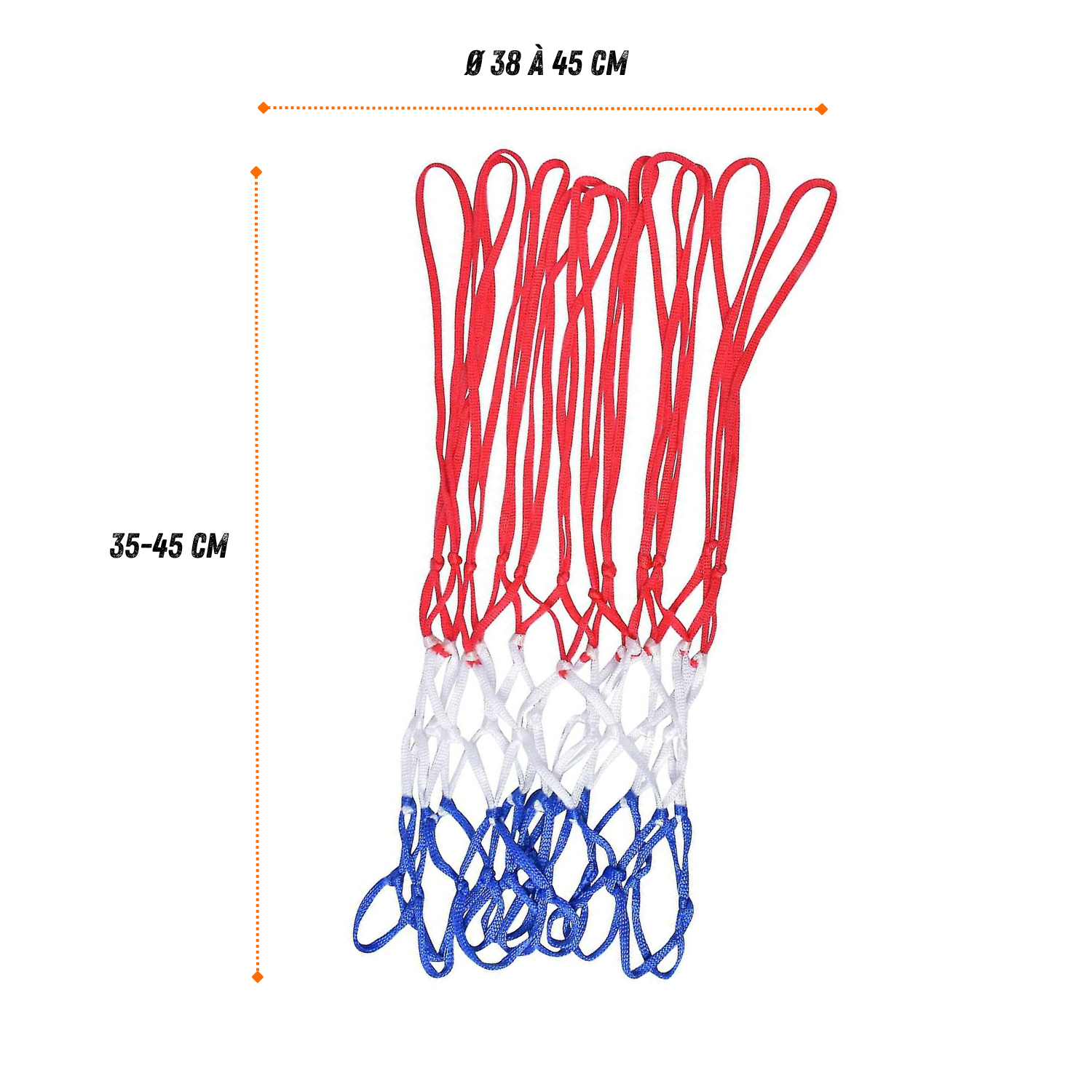 | Libellé | Lot de 2 filets de panier de basket-ball - Rouge, blanc, bleu |
