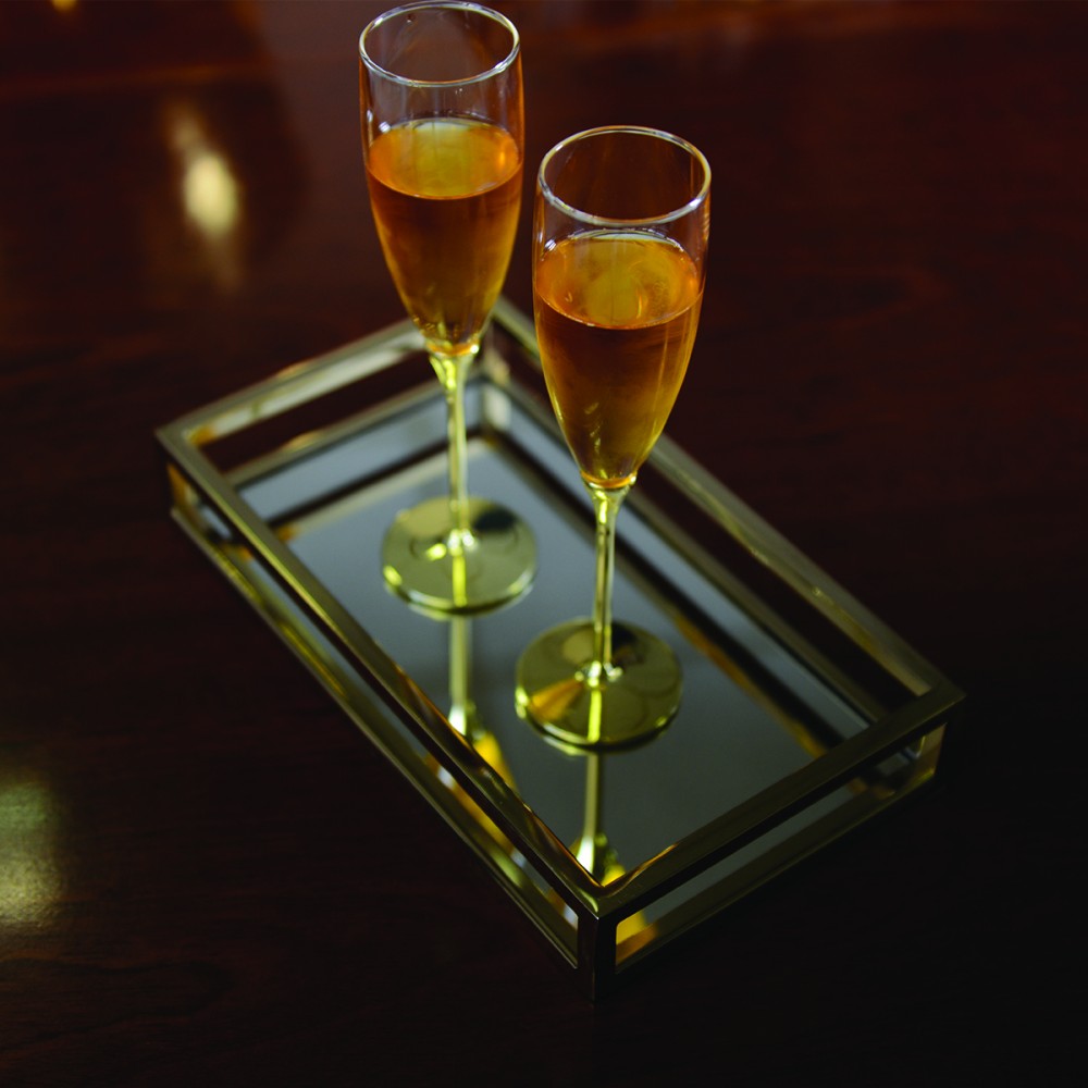 | Libellé | Lot de 2 flûtes à champagne en verre sur pied en métal doré |